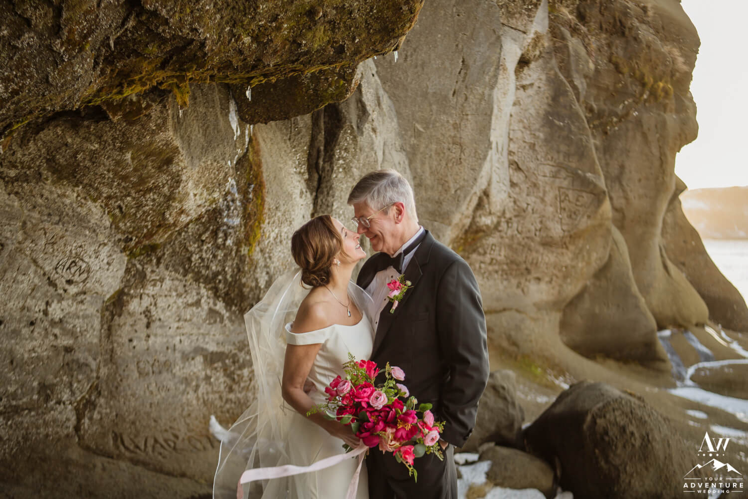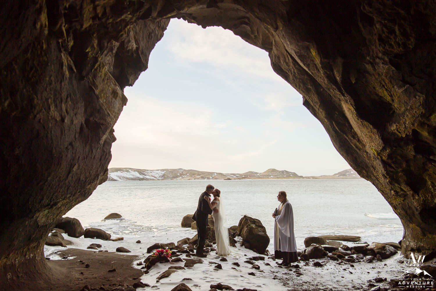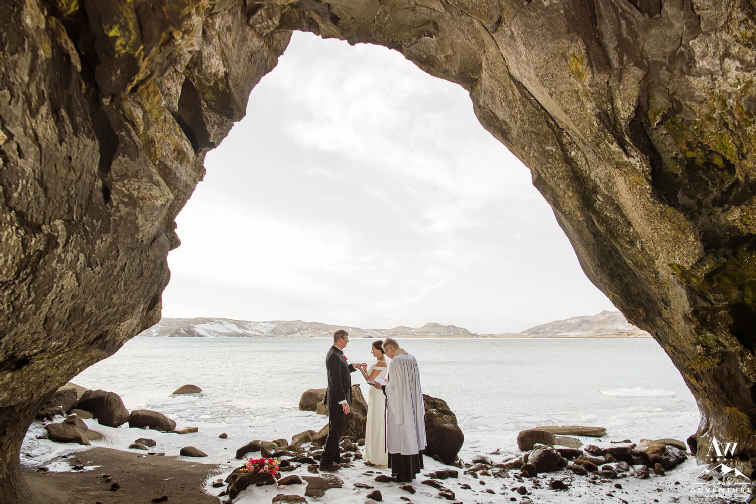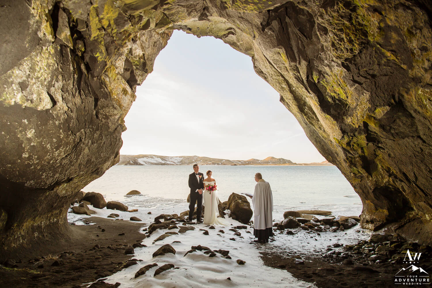 Sometimes having an Iceland cave wedding ceremony is a smart decision regardless of the weather. In fact, in Mark and Janine’s case they just wanted to ensure they would be sheltered from the wind regardless of what the weather was doing. Further, they also wanted to be able to be relaxed while they experienced their Iceland winter wedding ceremony. Next, after their cave elopement, they explored the area inside and out with their talented local wedding photographer.