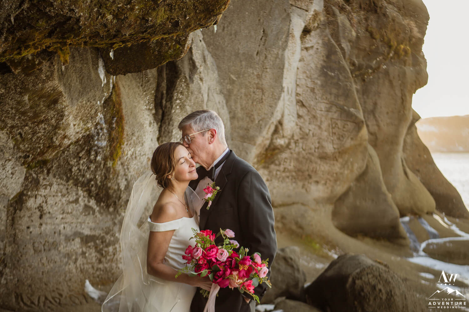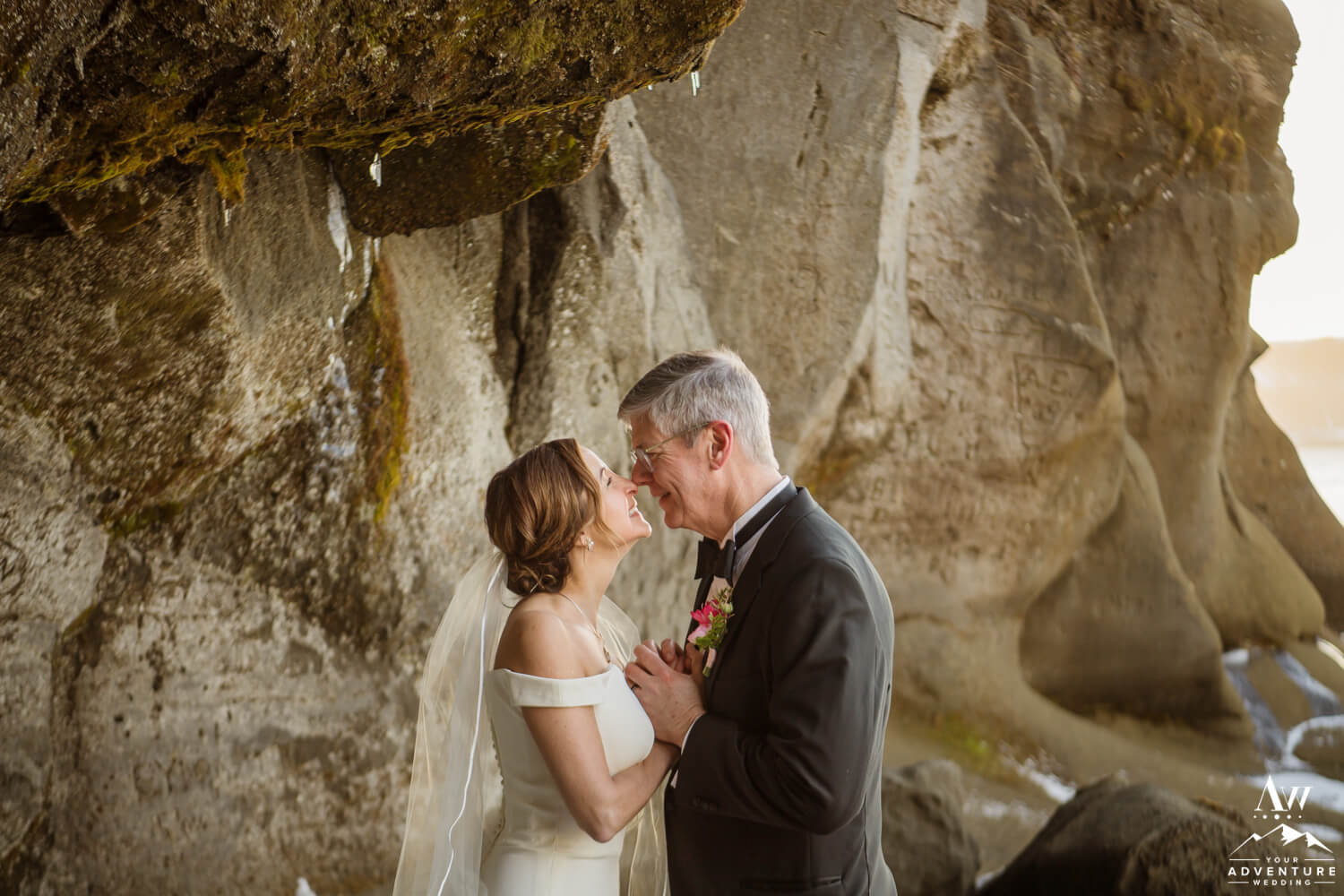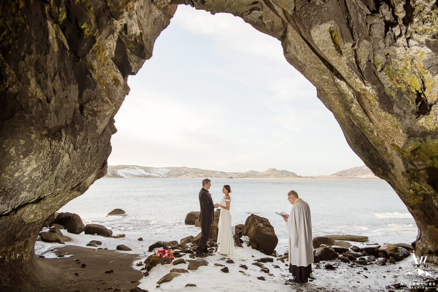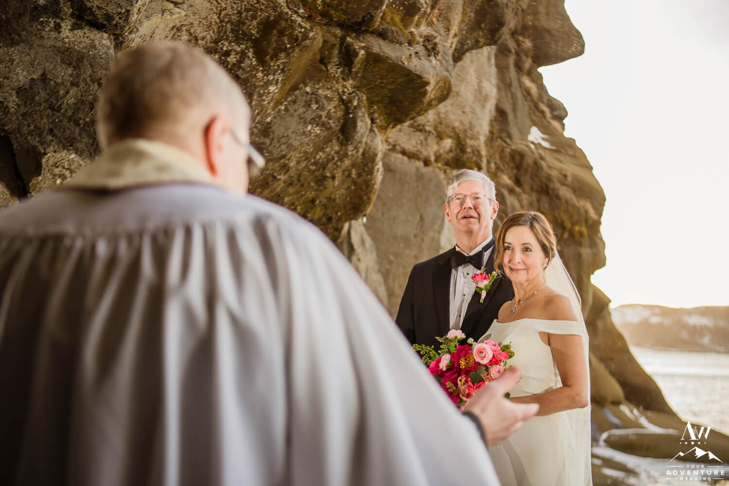 Sometimes having an Iceland cave wedding ceremony is a smart decision regardless of the weather. In fact, in Mark and Janine’s case they just wanted to ensure they would be sheltered from the wind regardless of what the weather was doing. Further, they also wanted to be able to be relaxed while they experienced their Iceland winter wedding ceremony. Next, after their cave elopement, they explored the area inside and out with their talented local wedding photographer.