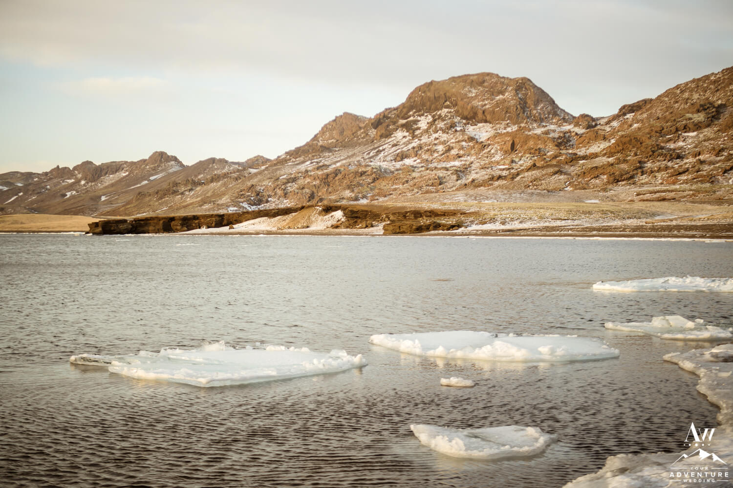 Did you know Iceland has over 20 fresh water lakes to discover? To illustrate, most of the them are beside crazy cool rock formations! On that same note, during the month of February it is likely the lake could be frozen or having floating bits in it adding to the texture of the landscape.