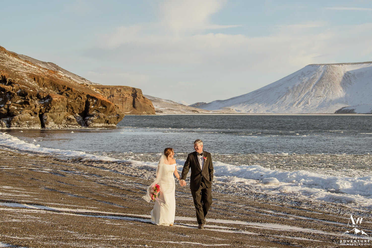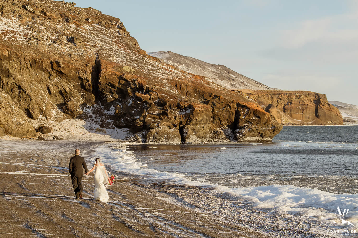 Depending on where you are in Iceland, it could be a 50 / 50 chance that there is snow on the ground during winter. So planning a winter Iceland wedding can be challenging if snow is a “must have.” Which could mean that you “plan b” your location days before or you plan to go to areas of Iceland that will for sure have snow during December-March. For example, the West and East fjords and Northern Iceland. However, if you are not partial to snow for your Iceland winter elopement, then we invite you to South Iceland to get married!