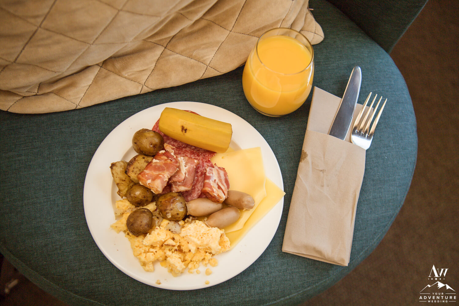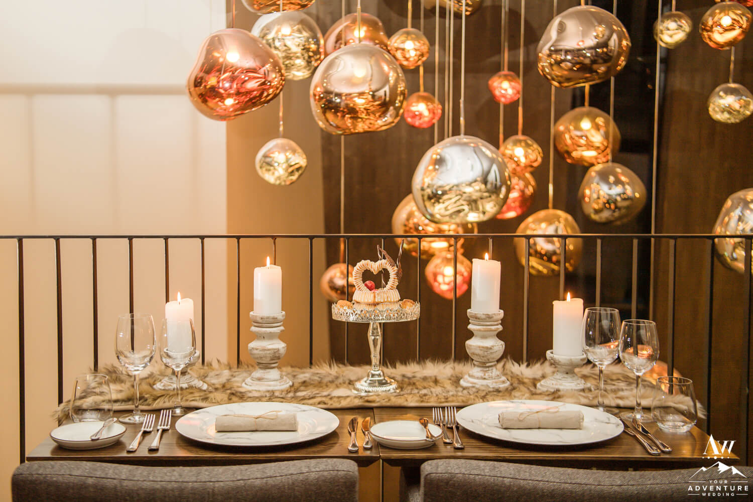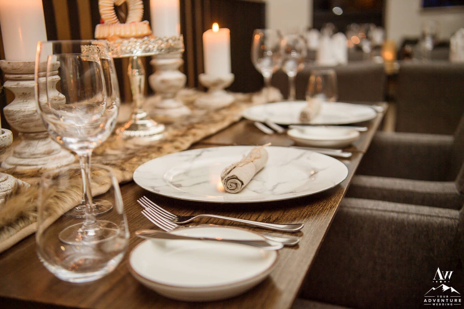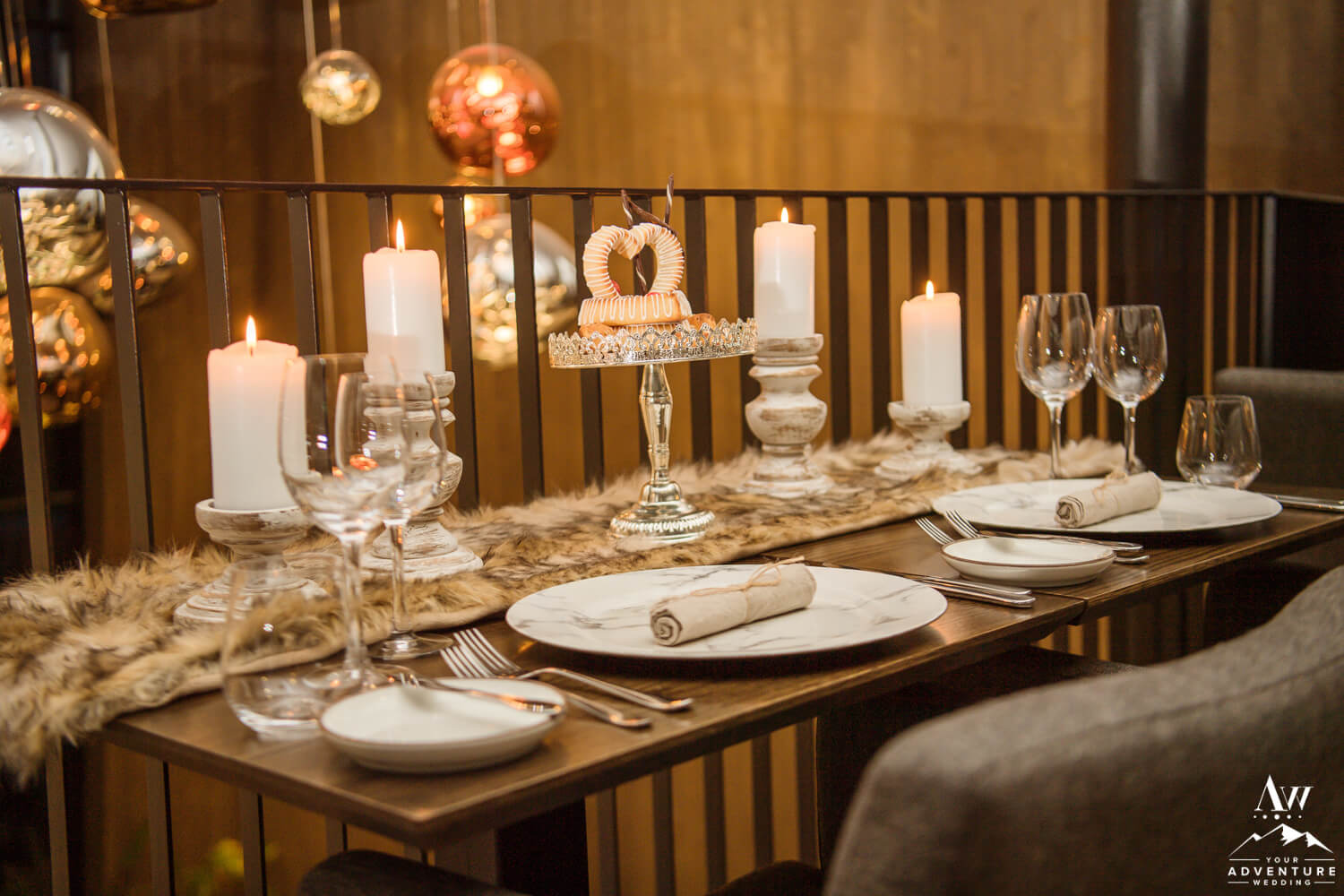 What could be better than a cozy warm dinner after a adventurous day hiking in Iceland? Well, we think having a styled dinner table after your frozen glacier lake ice cave elopement could top it! Likely, Kristina and Ben would agree. A delicious and traditional Iceland wedding cake for two adorned their sweetheart table too! Believe it or not, their night ended with experiencing the Northern Lights (no shame in not having photos and staying bundled up!)!