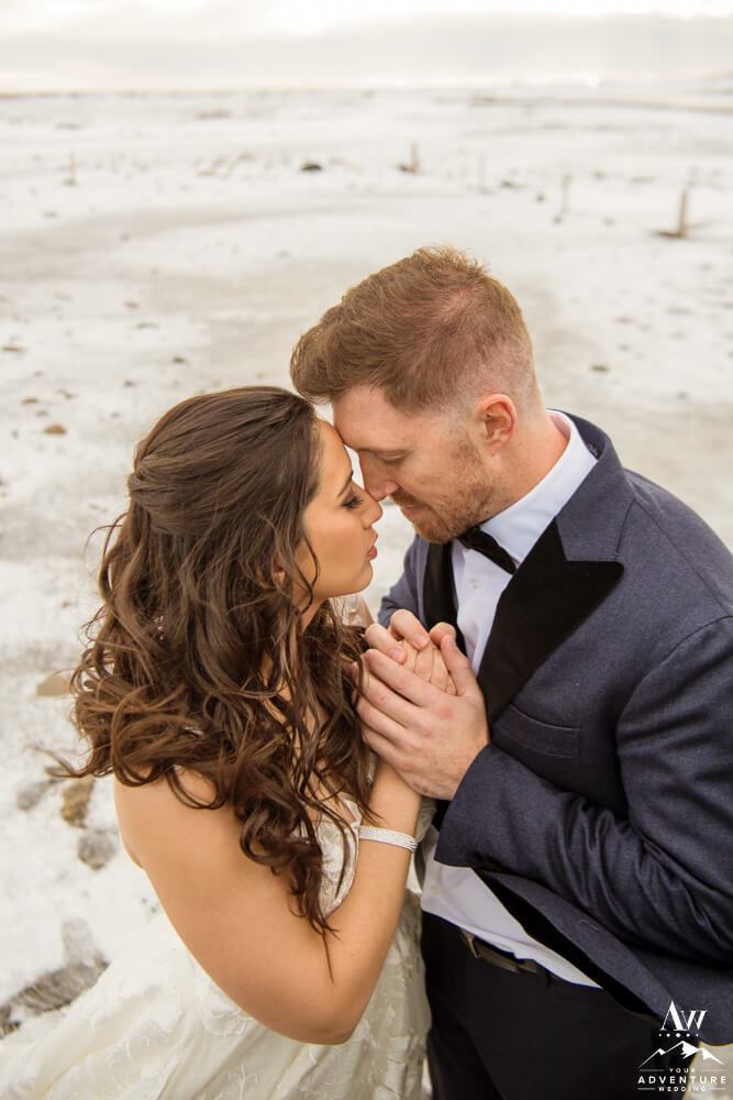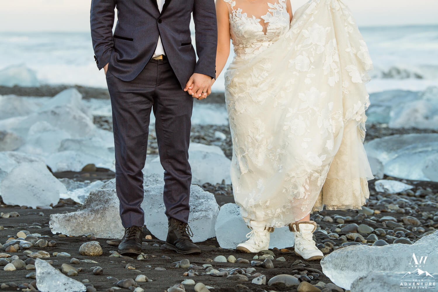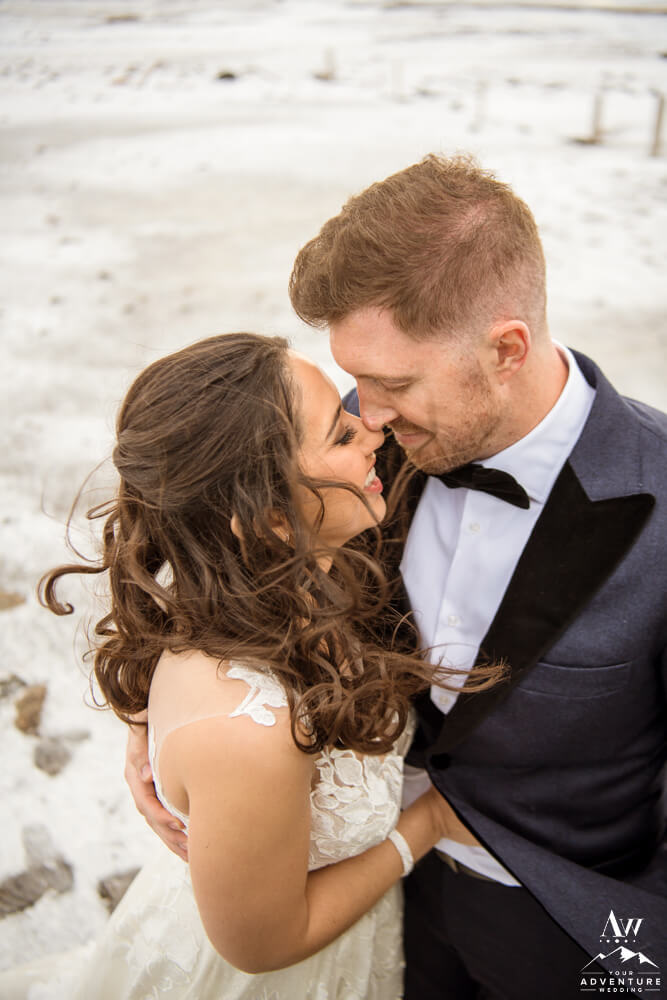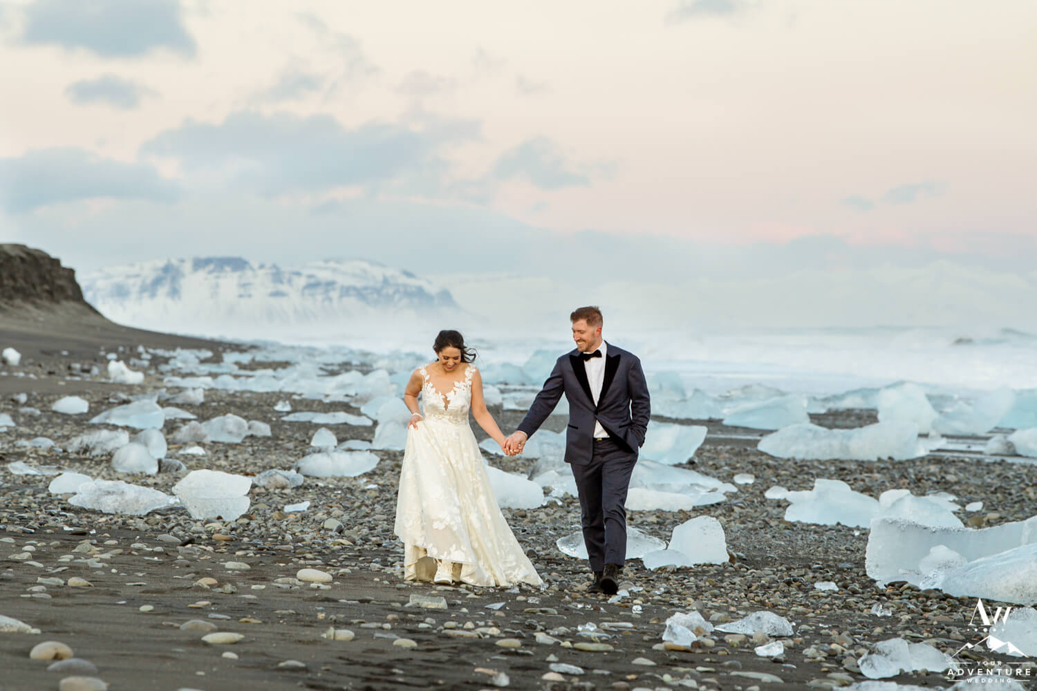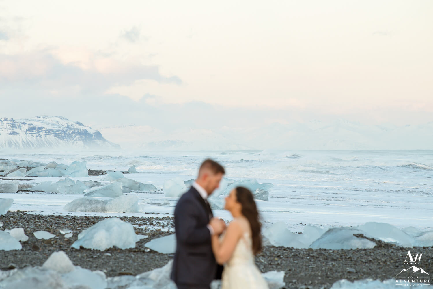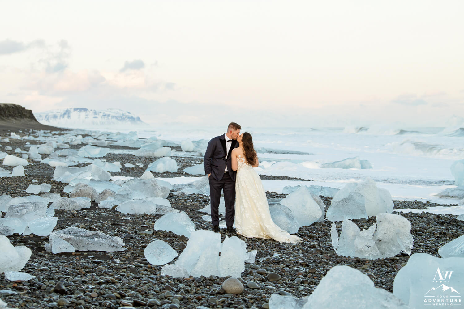 Although Diamond Beach (across the street from Jökulsárlón Glacial Lagoon) is not a location our team frequents because it is heavily populated with visitors we made an exception for these two! Therefore, from the first moment Kristina and Ben reached out to us, it was on their “must do” list for their frozen glacier lake elopement adventure.