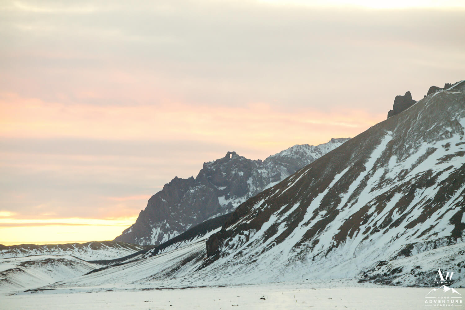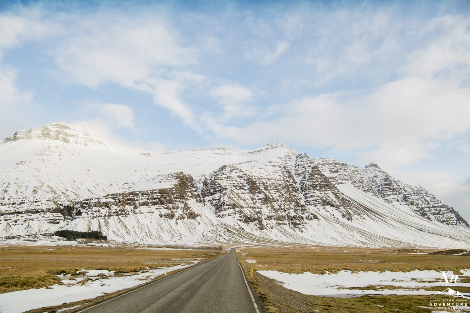 You’ve heard us say this before, but winter weather in Iceland can be unforgiving and brutal in every way possible. To illustrate, on February 19th, the day before Kristina and Ben were set to elope in Iceland, there was a crazy storm that closed all of the roads in the south. For real, like from Seljalandsfoss Waterfall to Hofn. But, the storm was going to subside around 10pm and the roads were anticipated to open then.