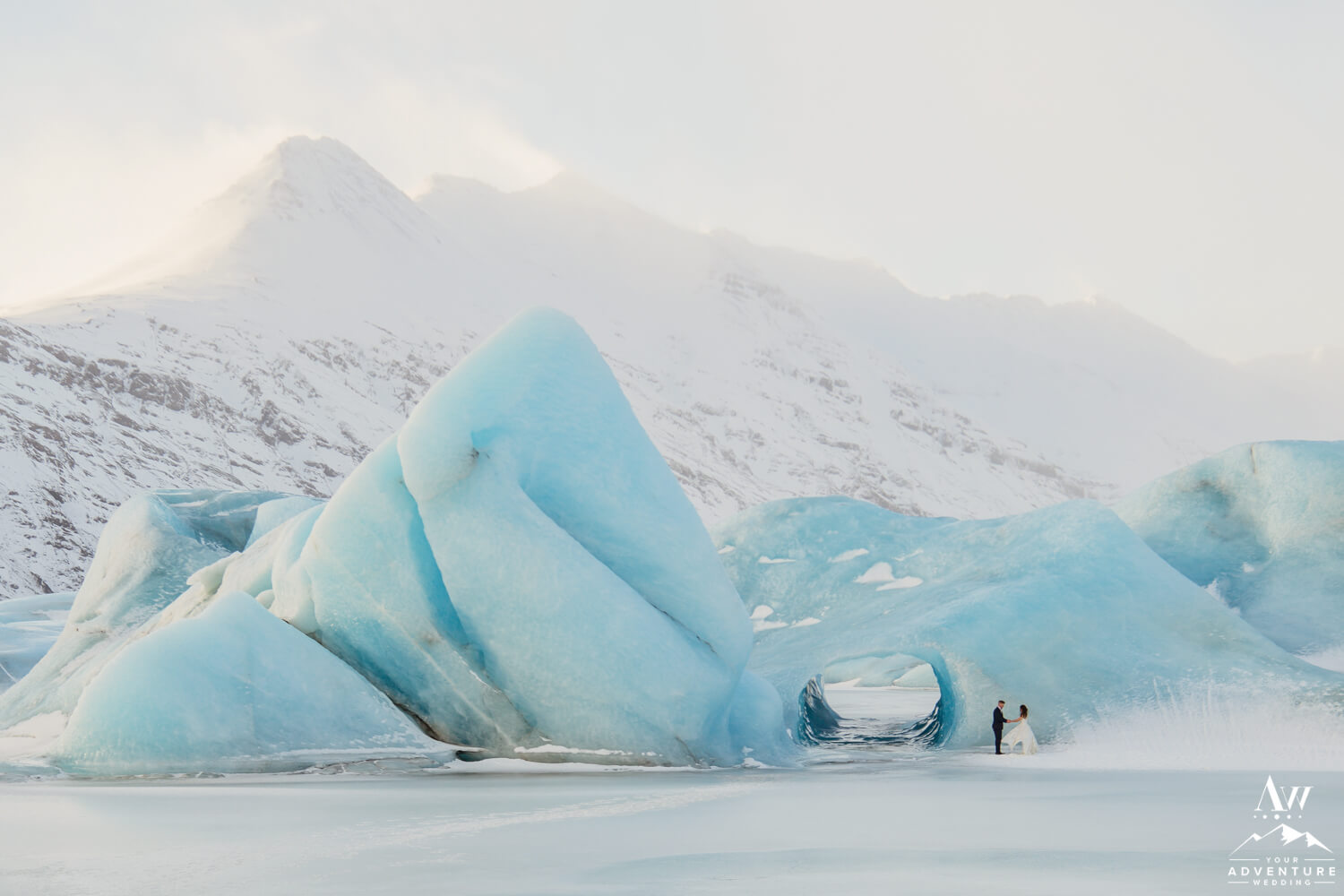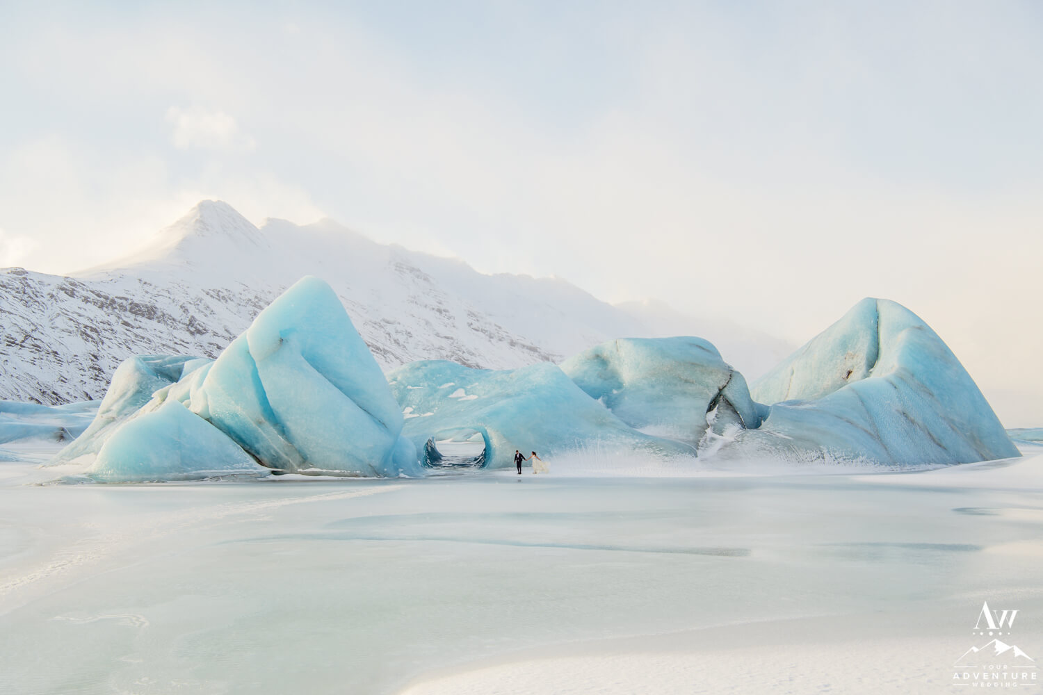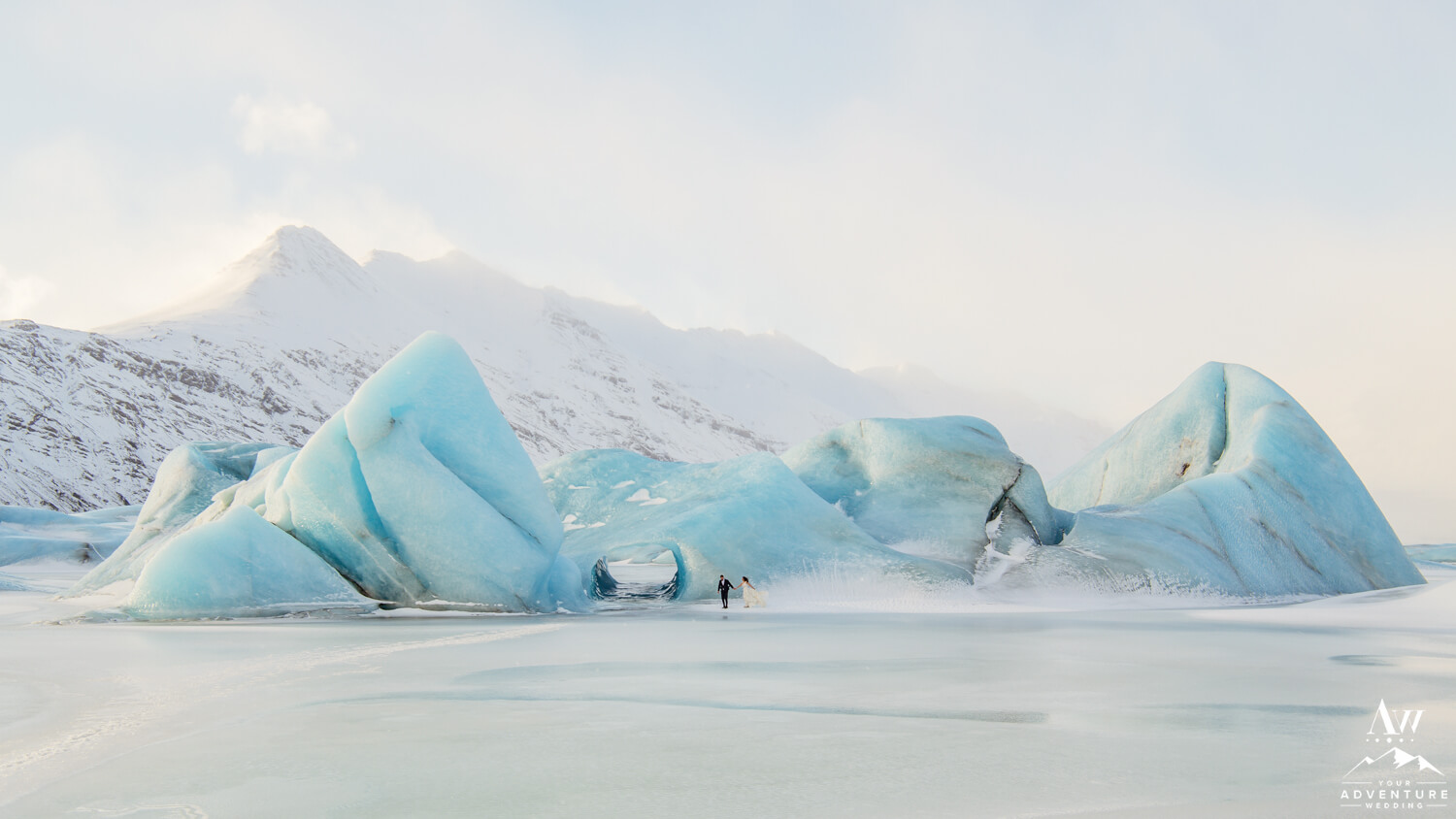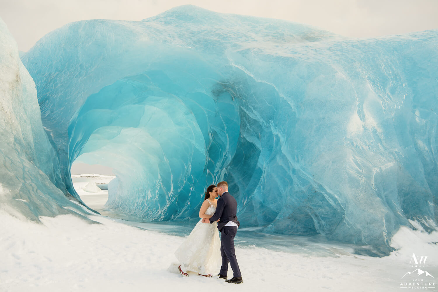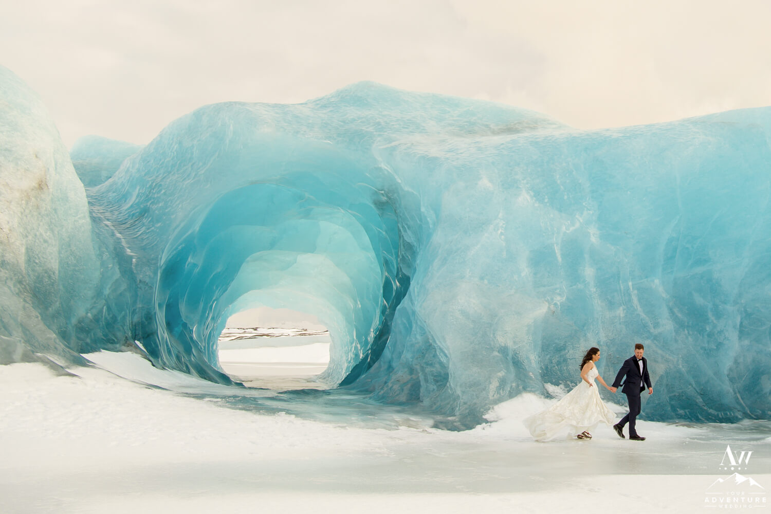 Therefore, Iceland was the answer for the variety of landscapes, textures, and tones. Furthermore, seeing that our Iceland Wedding Planner team are experts in planning and photographing ice cave elopements, they had to contact us. Specifically, they loved the idea of being married inside of a crystal blue ice cave. The best chance is planning a February elopement in Iceland so that is exactly what they did and here is their frozen glacier lake elopement story…