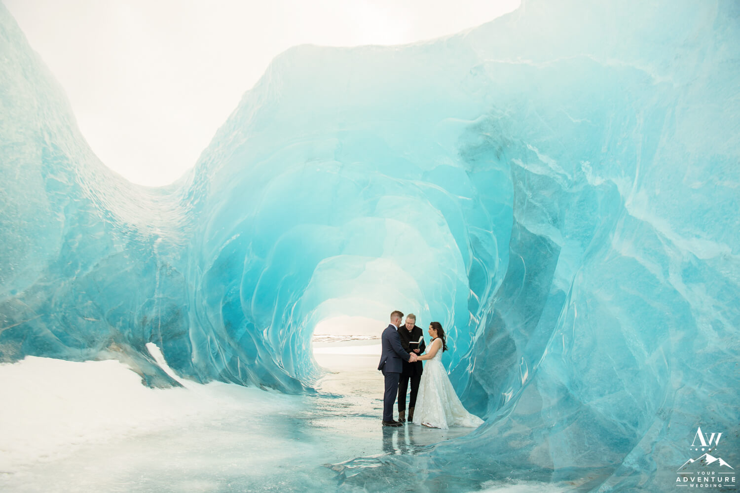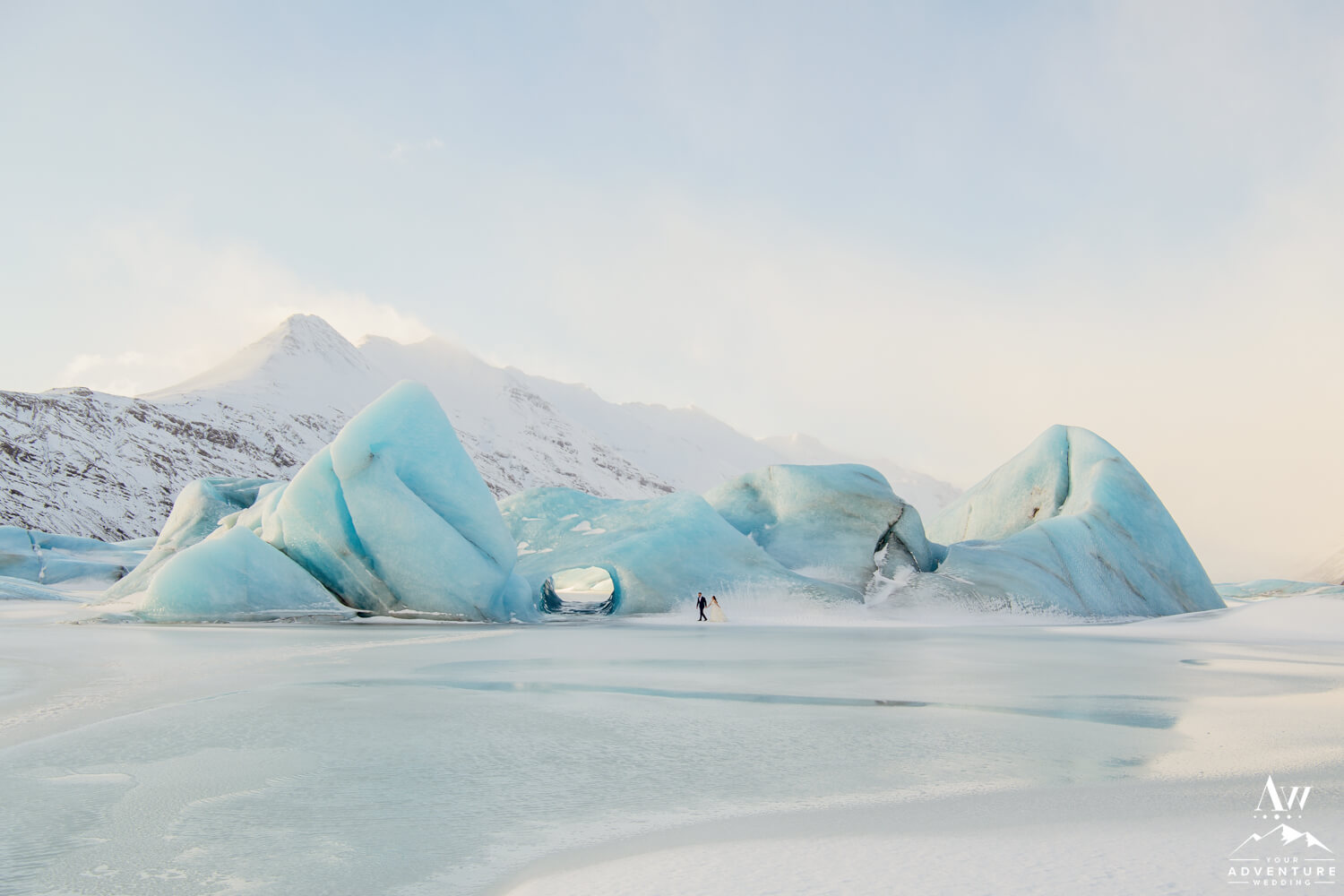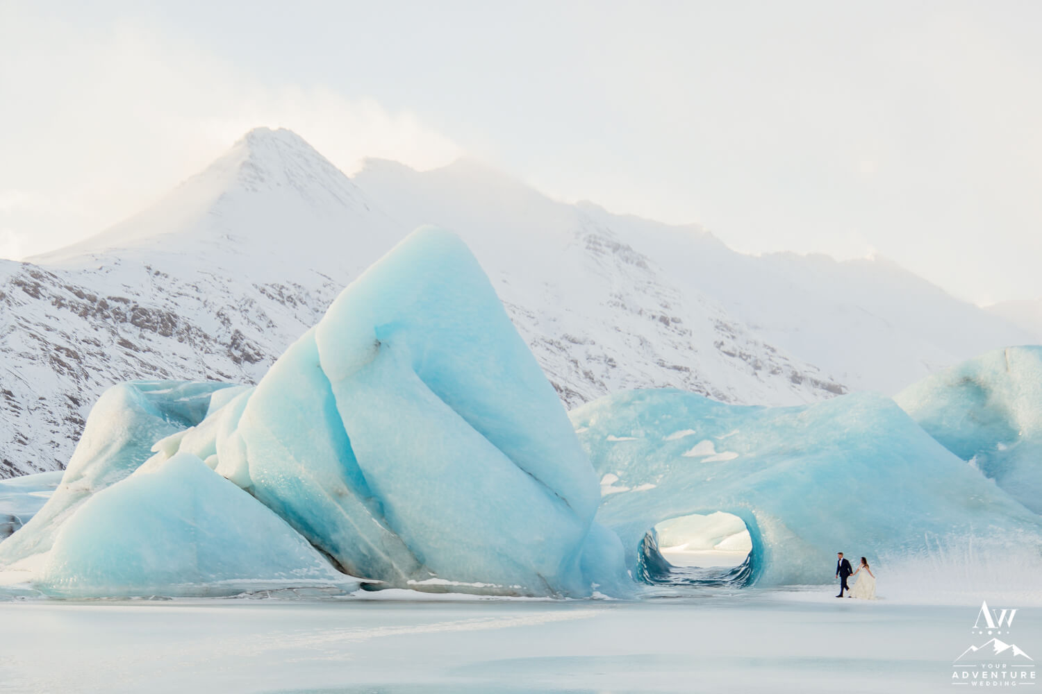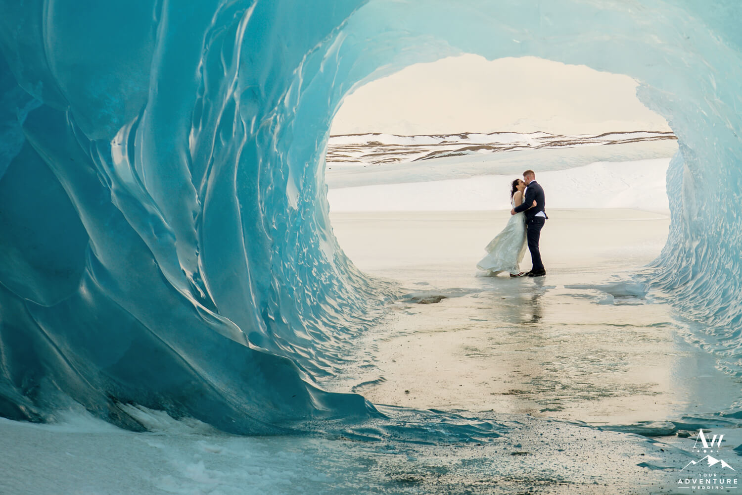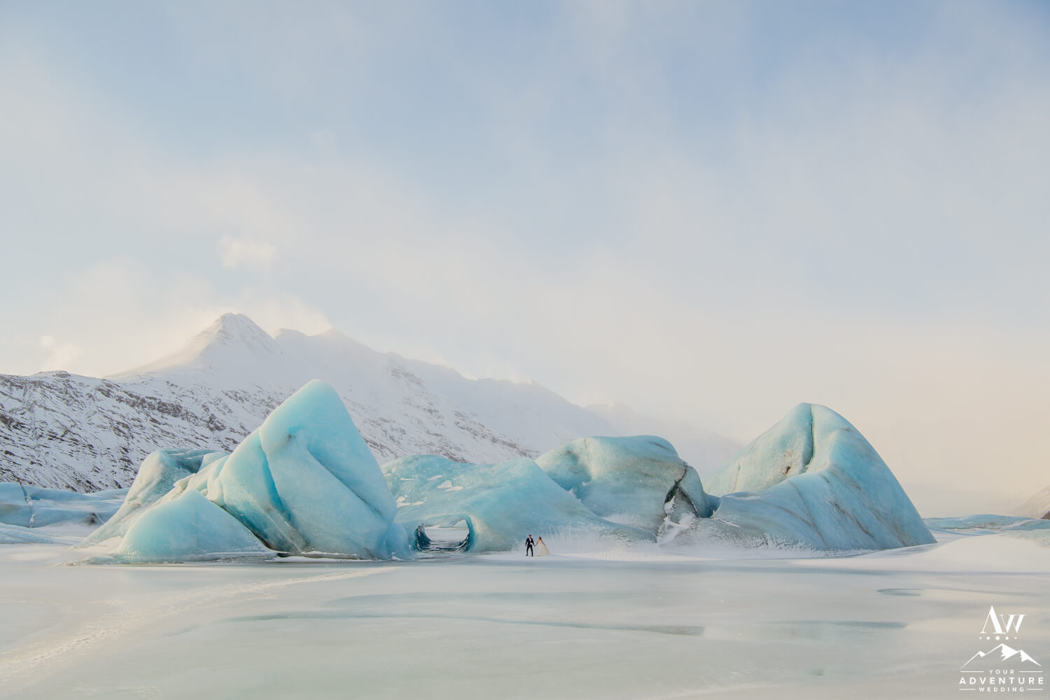 Therefore, Iceland was the answer for the variety of landscapes, textures, and tones. Furthermore, seeing that our Iceland Wedding Planner team are experts in planning and photographing ice cave elopements, they had to contact us. Specifically, they loved the idea of being married inside of a crystal blue ice cave. The best chance is planning a February elopement in Iceland so that is exactly what they did and here is their frozen glacier lake elopement story…