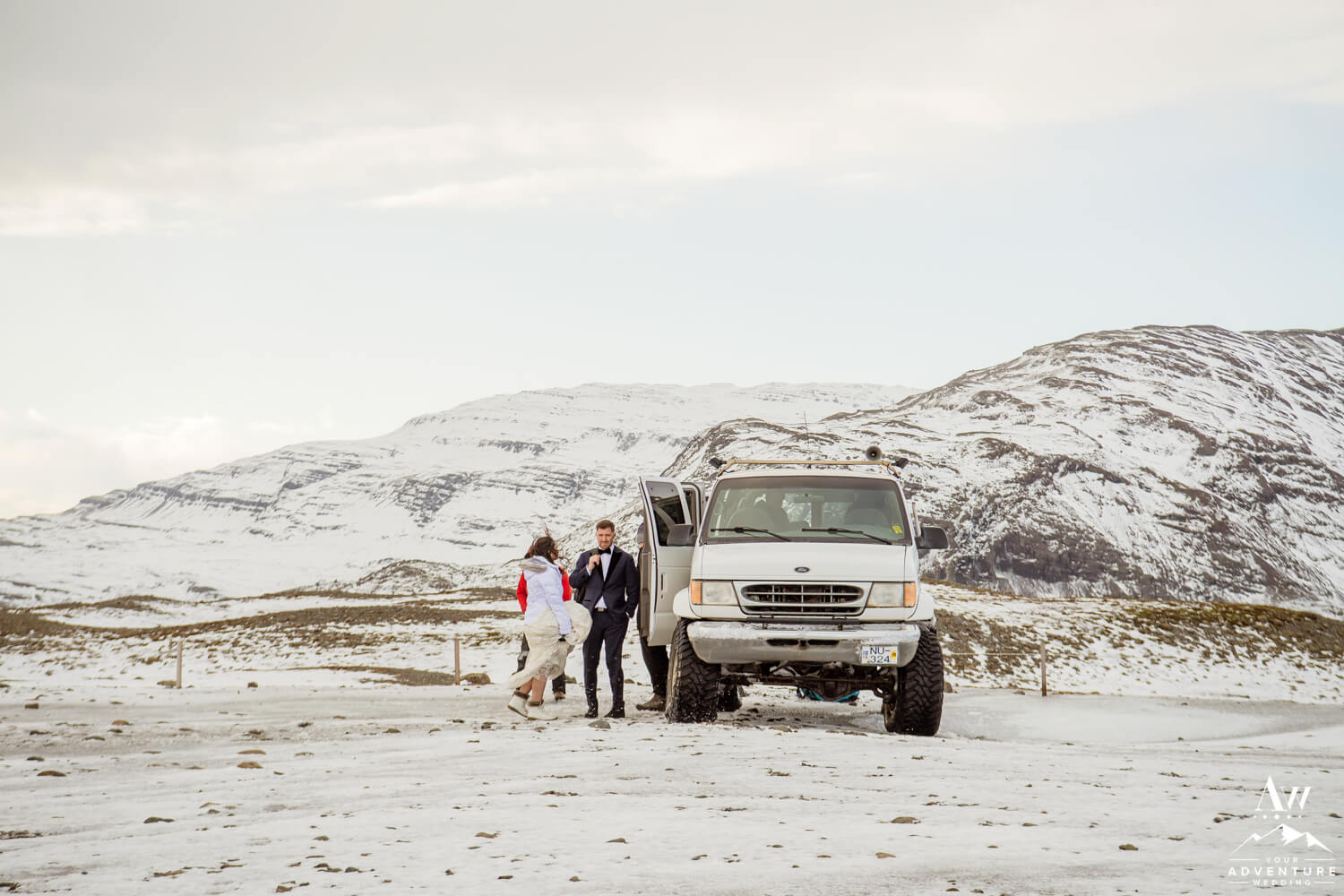 Upon arriving to the Fosshotel Glacier Lagoon around 1:30am, everyone high fived and laughed at surviving the storm!! Eloping during winter in Iceland as we said can be challenging, but the morning of February 20th 2020 was BEAUTIFUL, only wind needed to be battled 😉 All aspects of our team were hard at work making magic happen before loading into the super jeep for the day.