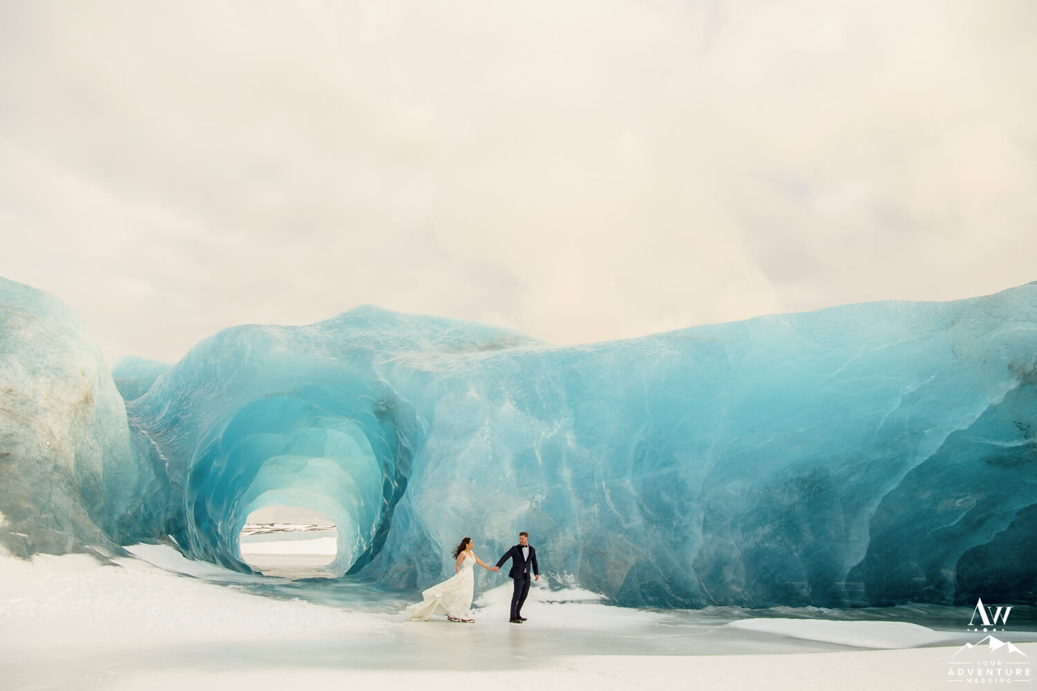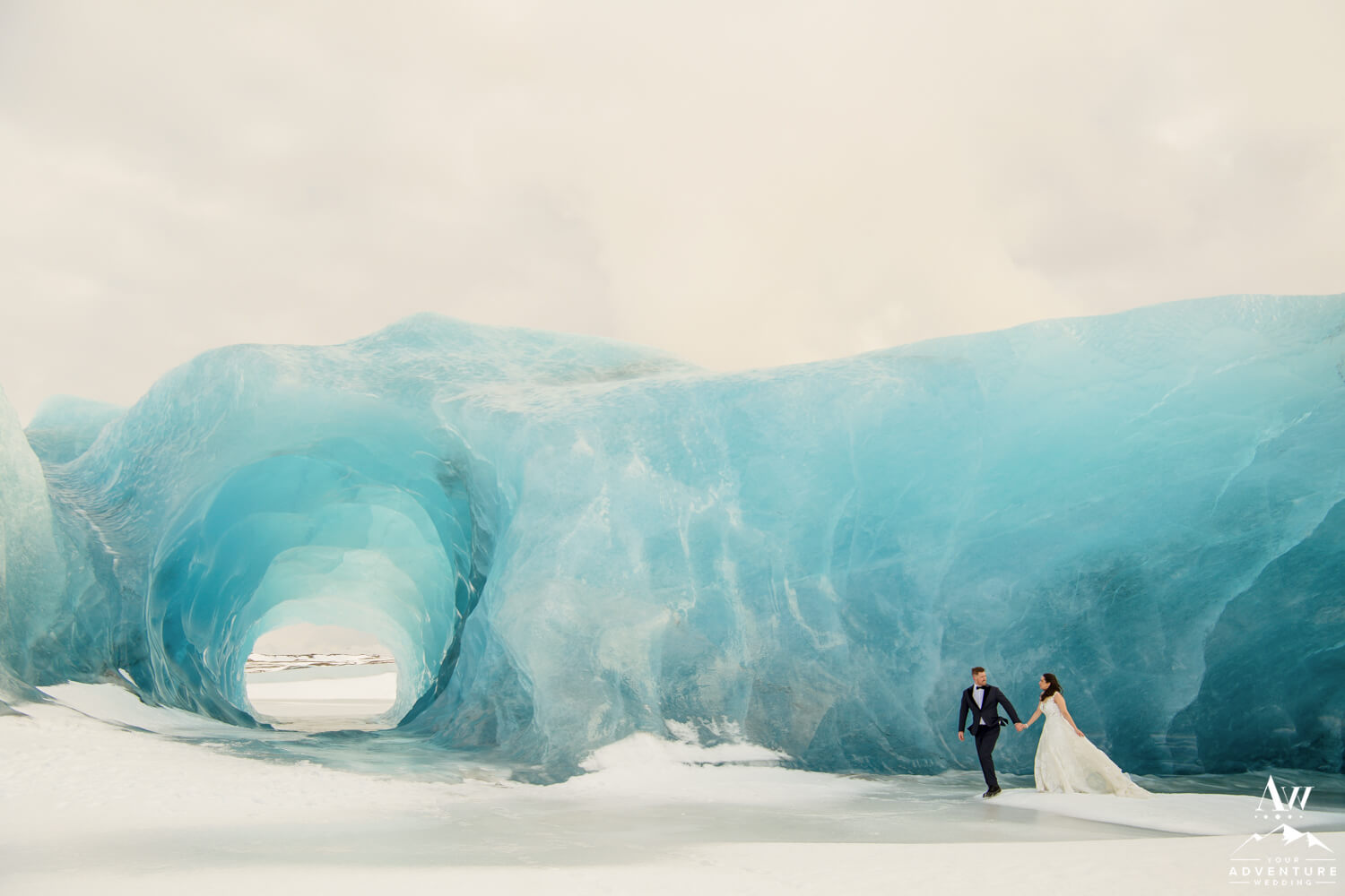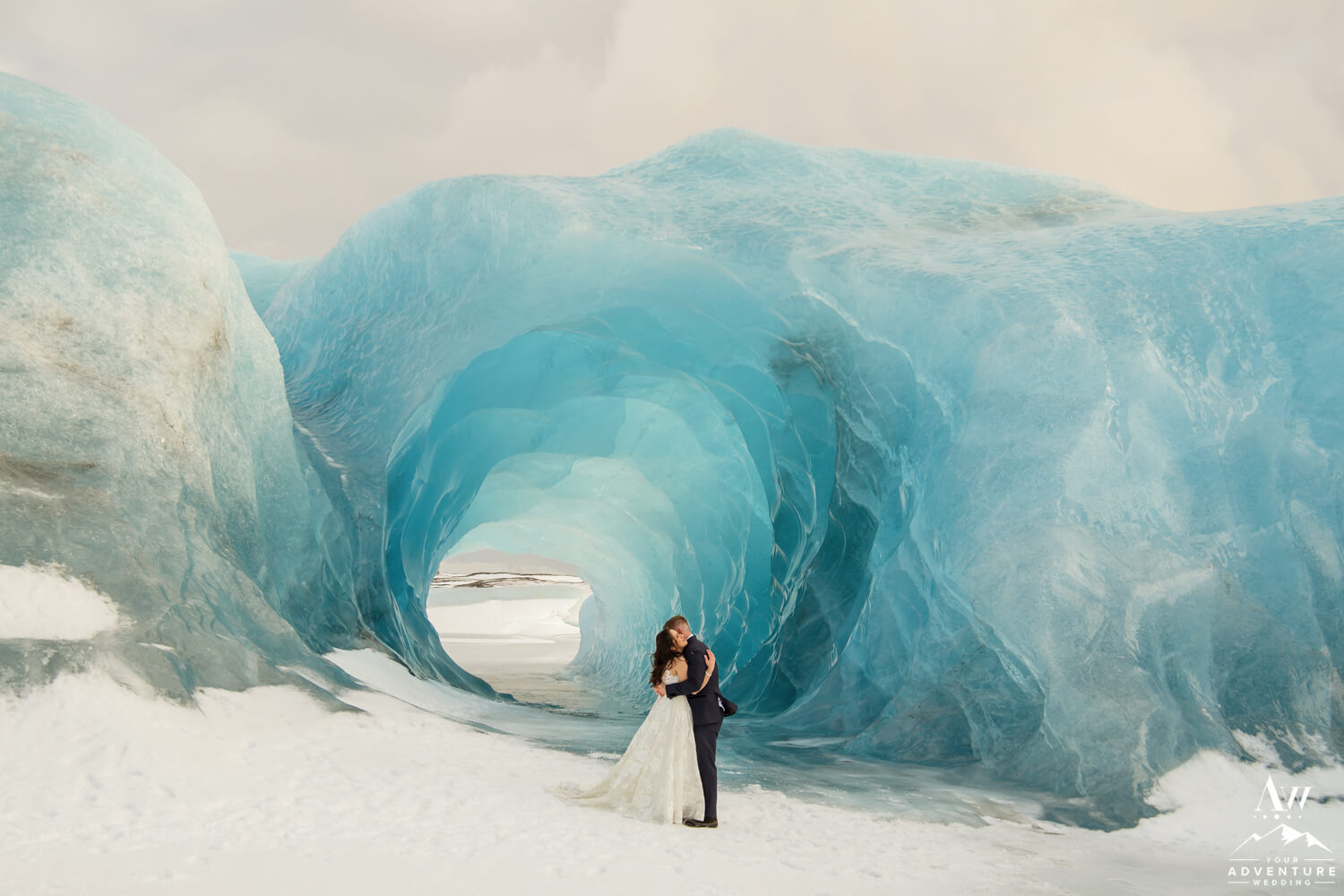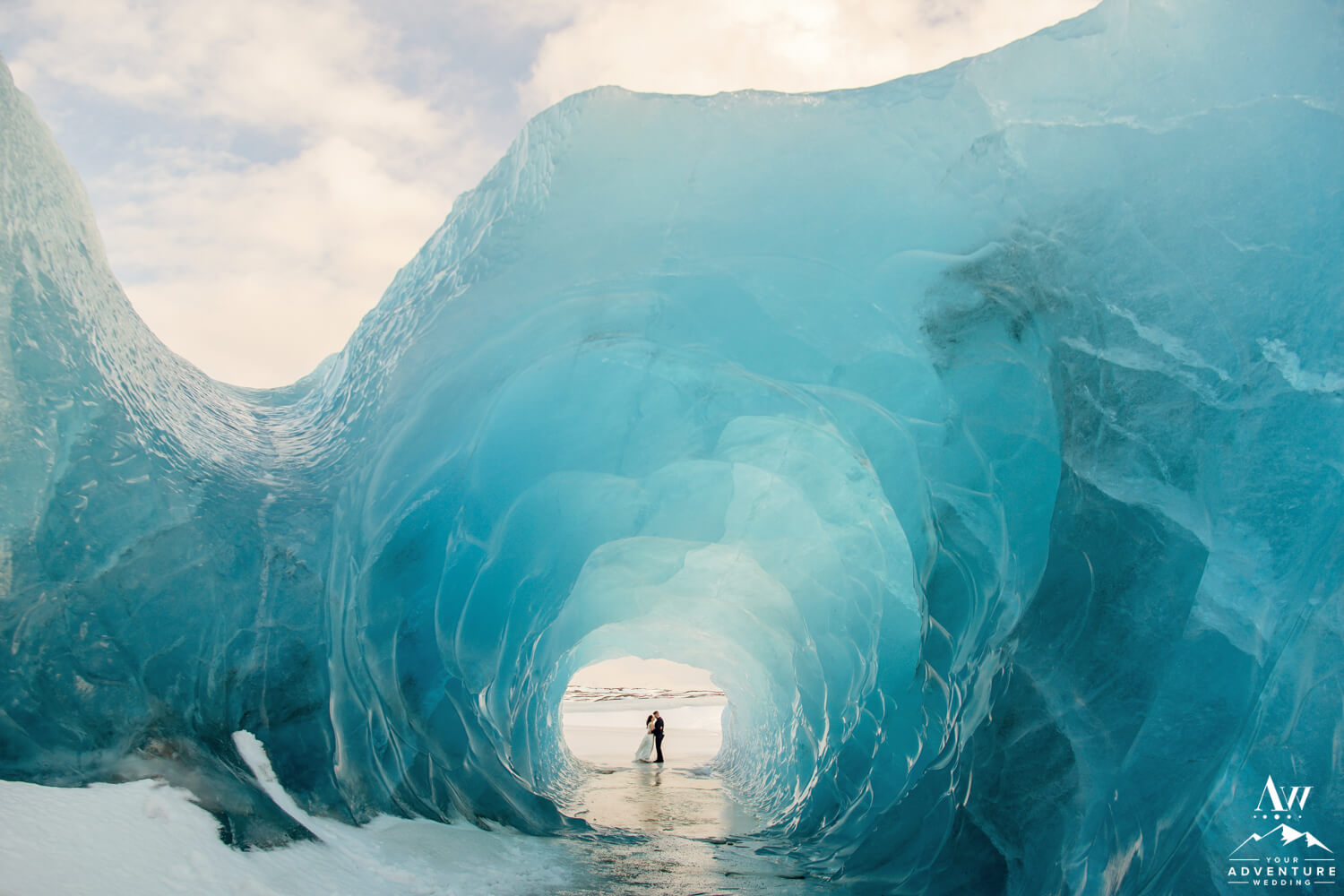 True love transcends time, space, and leaves you with an endless flow of moments that make you smile. In fact, some may even compare true love as a living fairytale! Likely when you begin dreaming of wedding locations it could be difficult to find a place that is as life changing as your love. Maybe eloping on another planet could do it justice? For Kristina and Ben, having a frozen glacier lake elopement inside of a floating iceberg felt like their very own ice planet!
