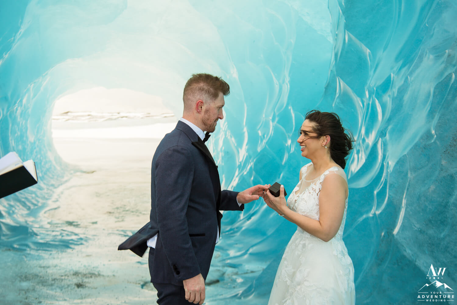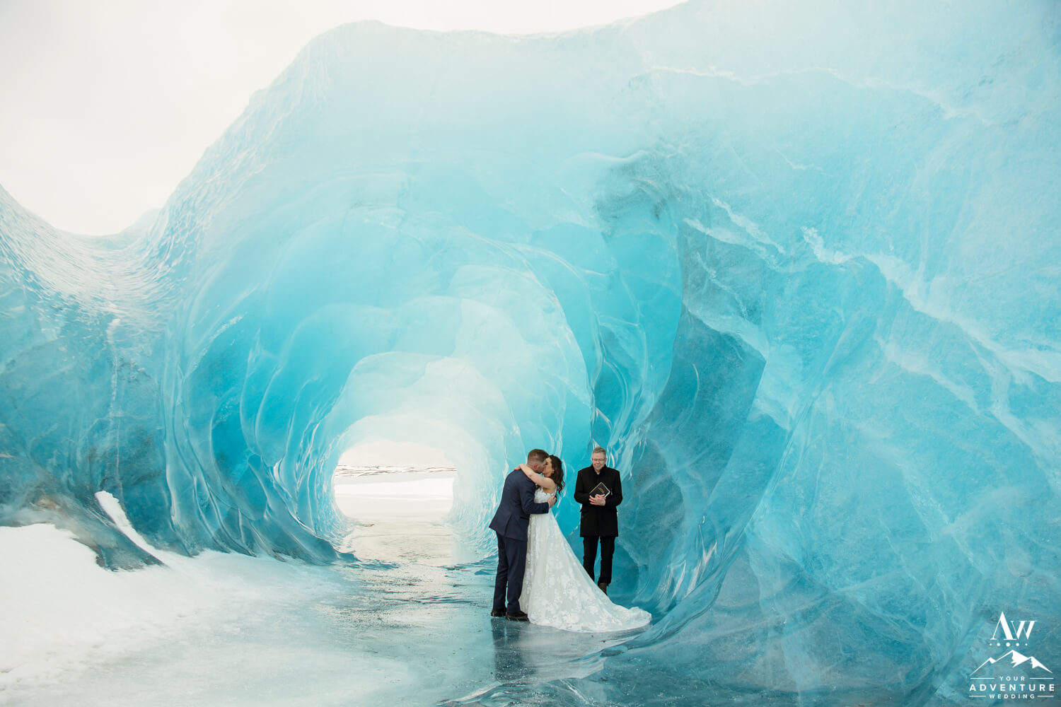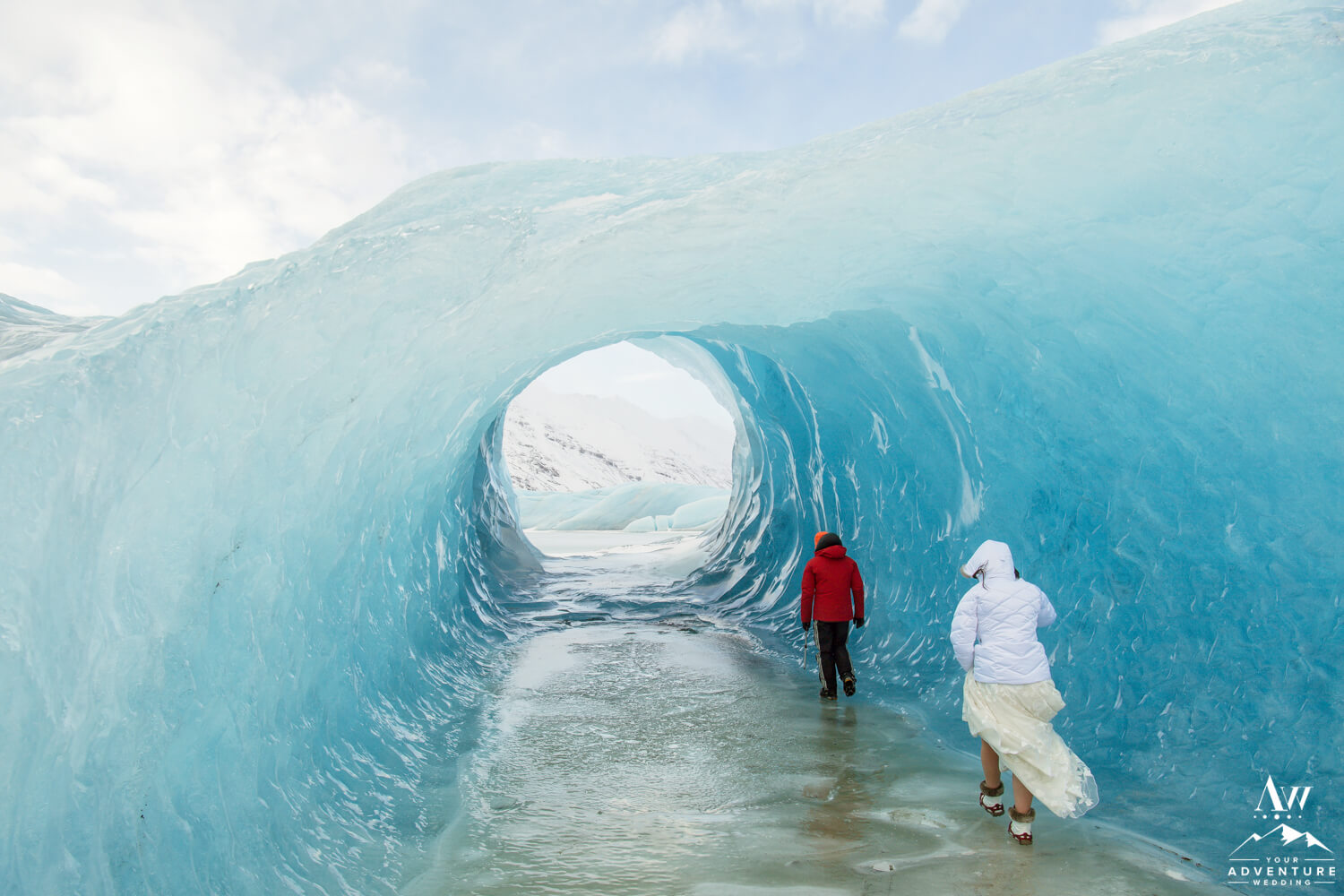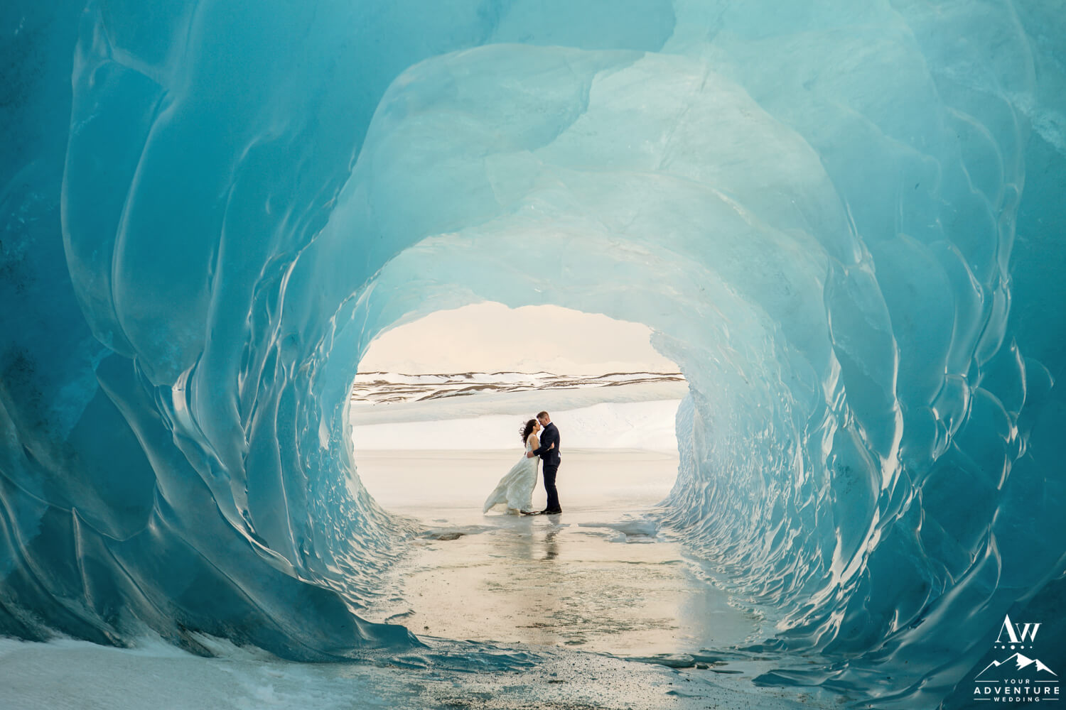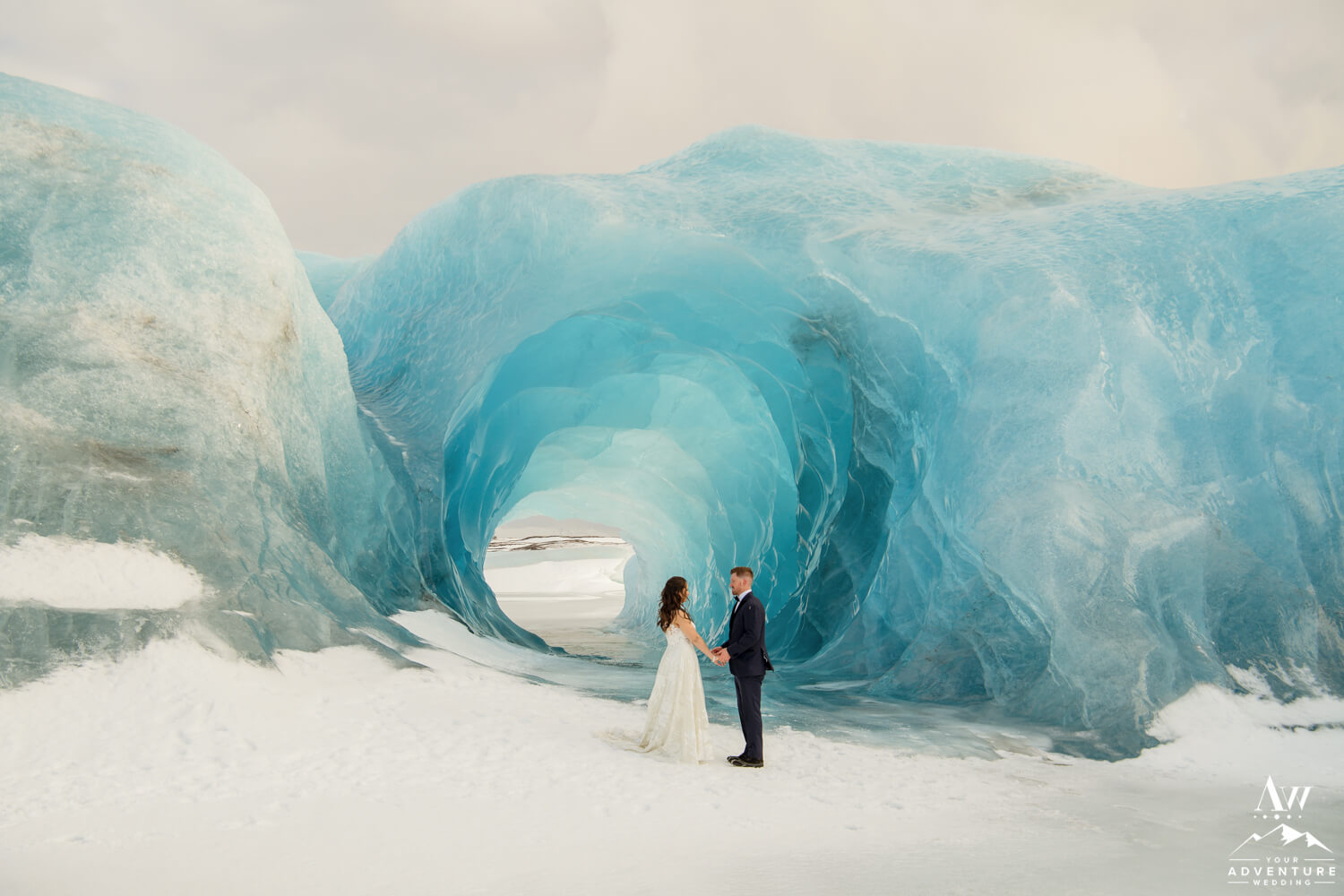 True love transcends time, space, and leaves you with an endless flow of moments that make you smile. In fact, some may even compare true love as a living fairytale! Likely when you begin dreaming of wedding locations it could be difficult to find a place that is as life changing as your love. Maybe eloping on another planet could do it justice? For Kristina and Ben, having a frozen glacier lake elopement inside of a floating iceberg felt like their very own ice planet!