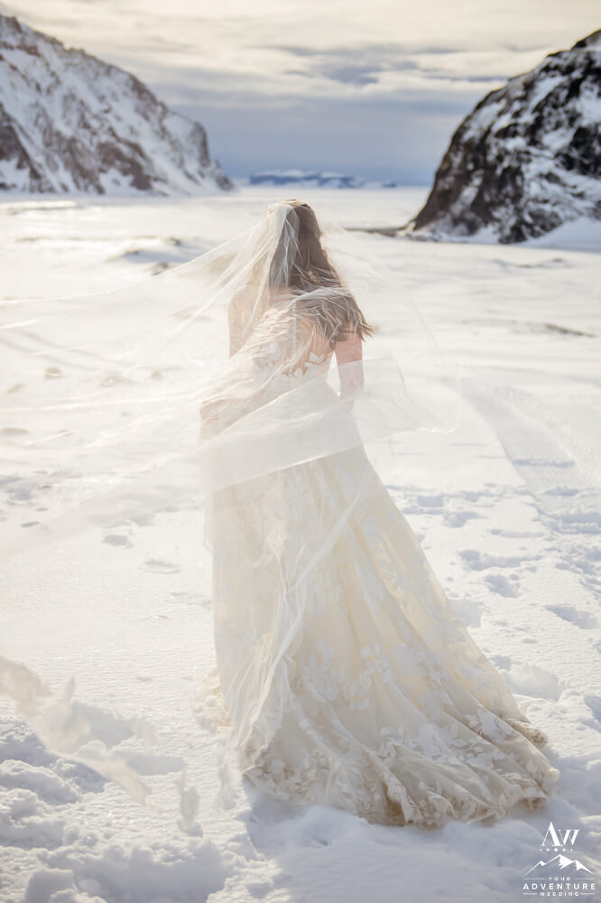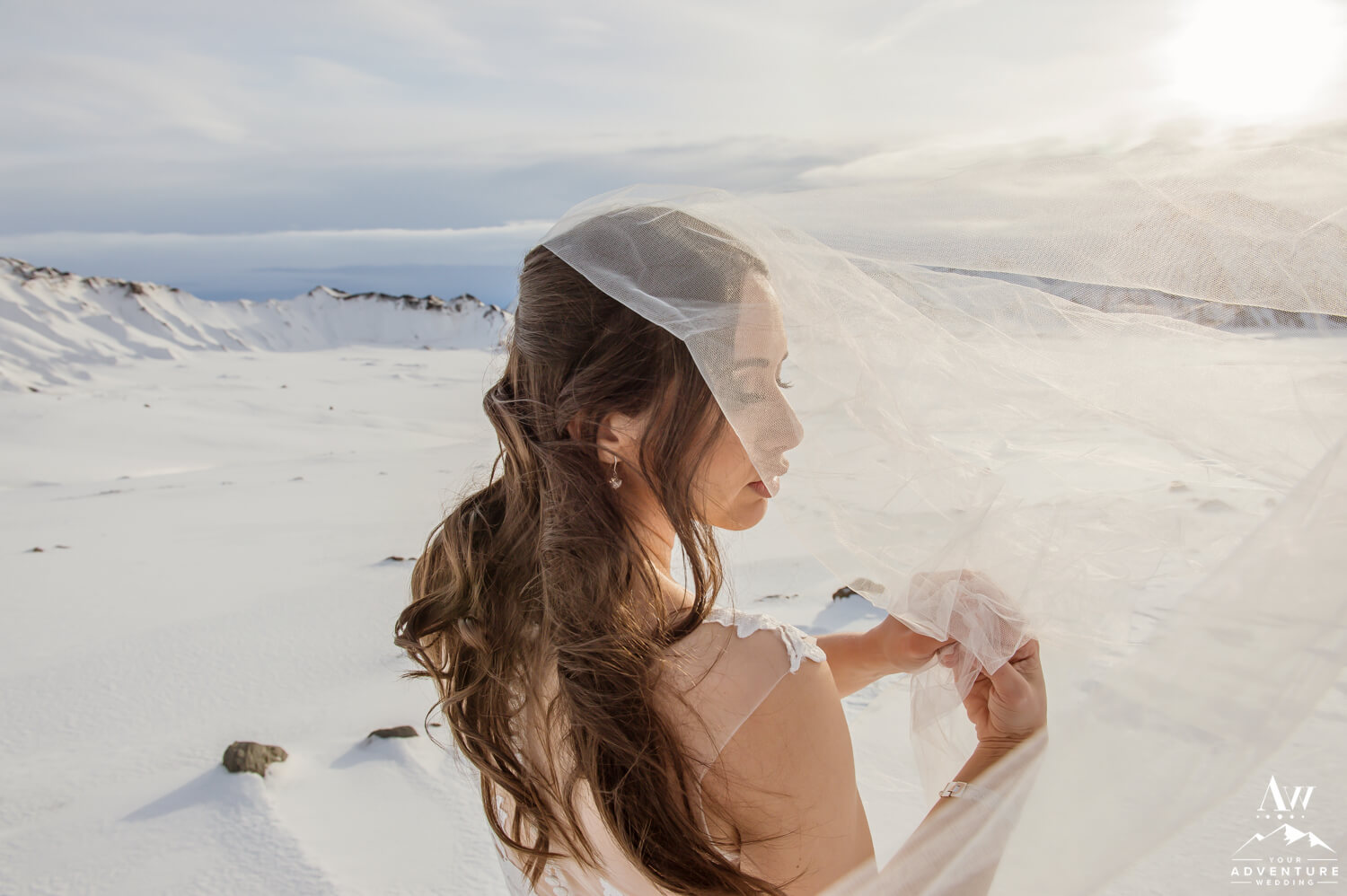 Fresh snow, crazy shaped mountains, and sunrise during February in Iceland really set the scene for the most magical Iceland honeymoon adventure photos! Iceland Elopement Photographer Tip: Bringing along a veil can be good fun at the right moment! For example, Ben and Kristina basked in every single romantic moment and savored it!
