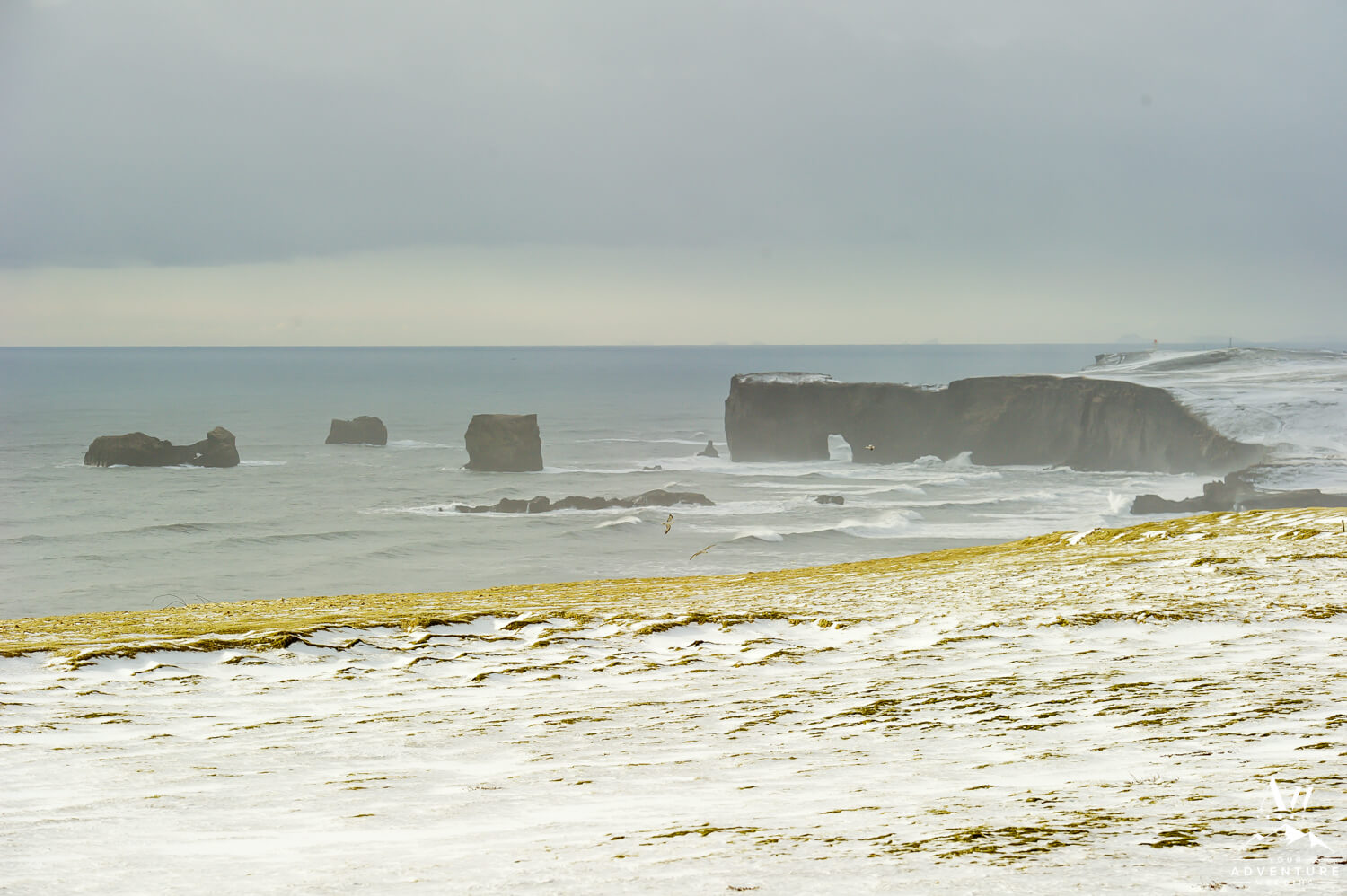 Feeling on top of the world is exactly how you want to feel on your Iceland honeymoon adventure, right?! To illustrate, Ben and Kristina were marveled over discovering the cliffside 360 degree views! Firstly, 1 side of the mountain showcases the town of Vik (try to find the hilltop church for reference!). Secondly, you witness Reynisdrangar basalt sea stacks from a totally different vantage point! Thirdly, you’ll experience Dyrhólaey Sea Arch from a distance. Fourth, have views of Mýrdalsjökull Glacier (Iceland’s 4th largest) from a top if a clear day!!