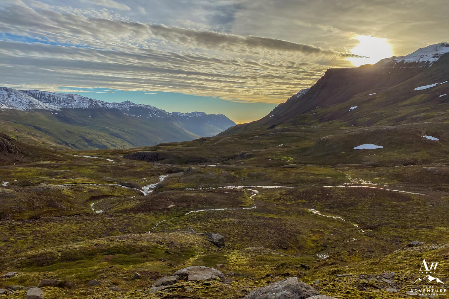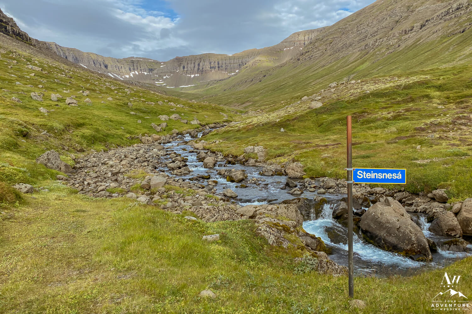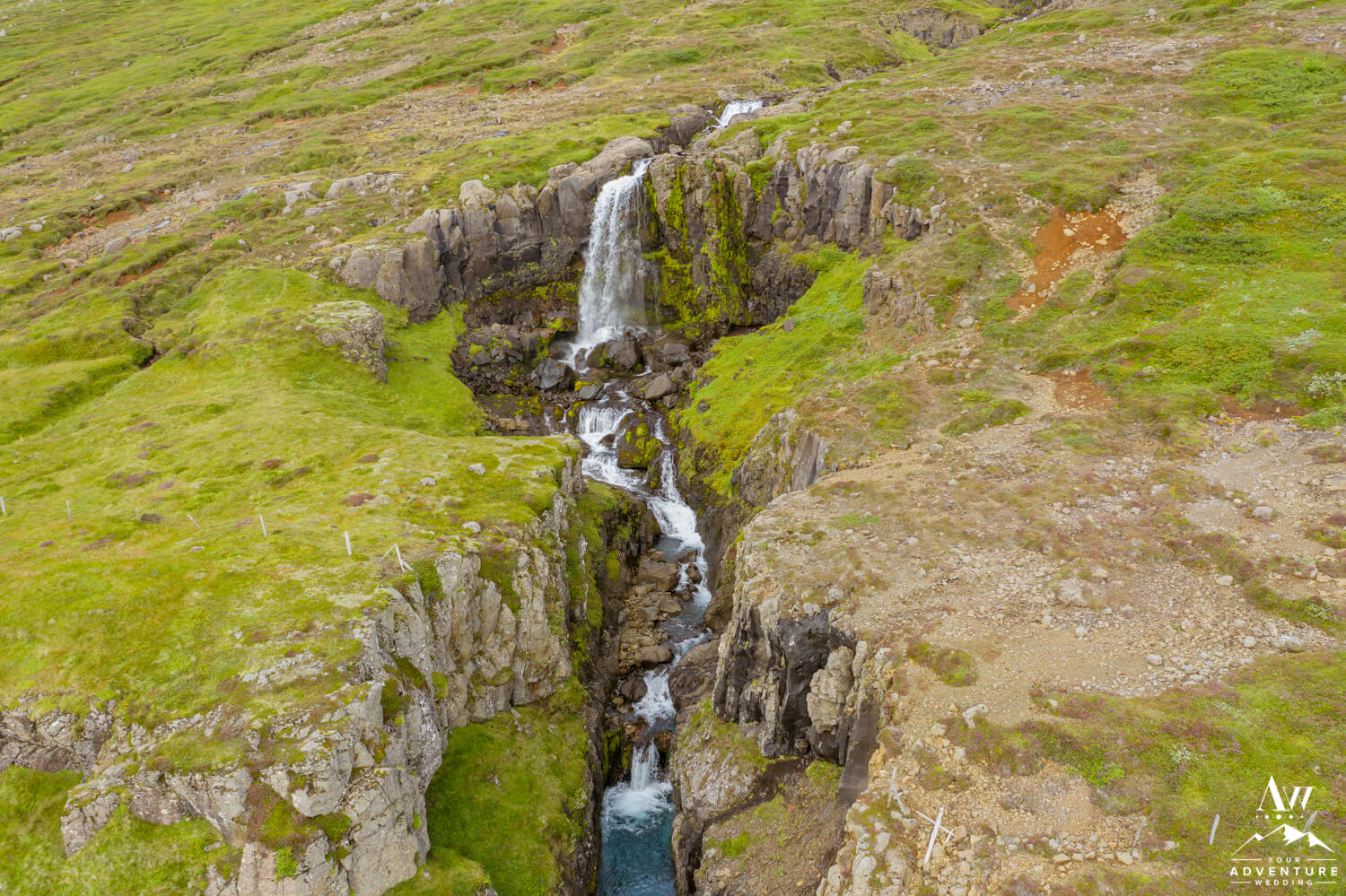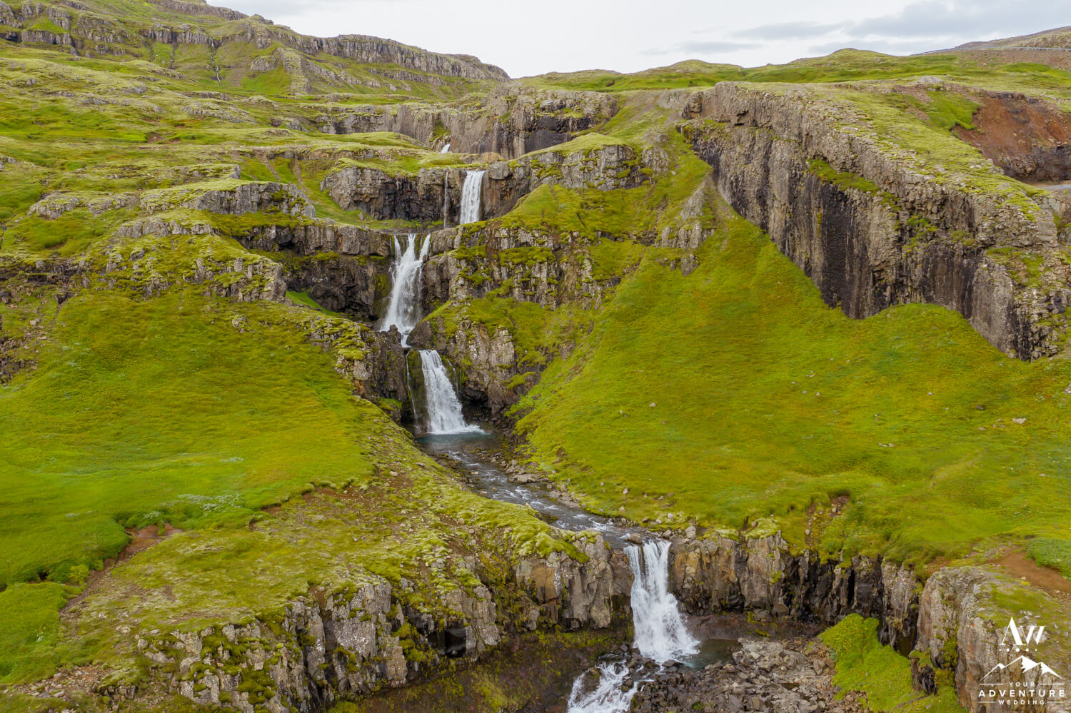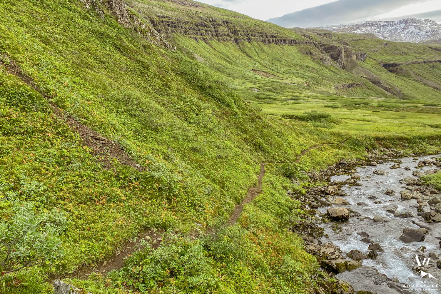One of the most stunning waterfalls is the first thing you come to when you come down from the mountain pass coming into the fjord. Firstly there is small parking lot you can pull into. Next, you’ll follow the sign and clear path over a small river and continue to follow the path back. As you’ll see it’s an easy 5 minute walk back. If you have time, you can take your time hiking to the different levels of the Klifbrekkufossar Waterfall. Note: Proper hiking boots are needed if you wish to go to all of the levels (and they help stabilize you when it’s muddy too).