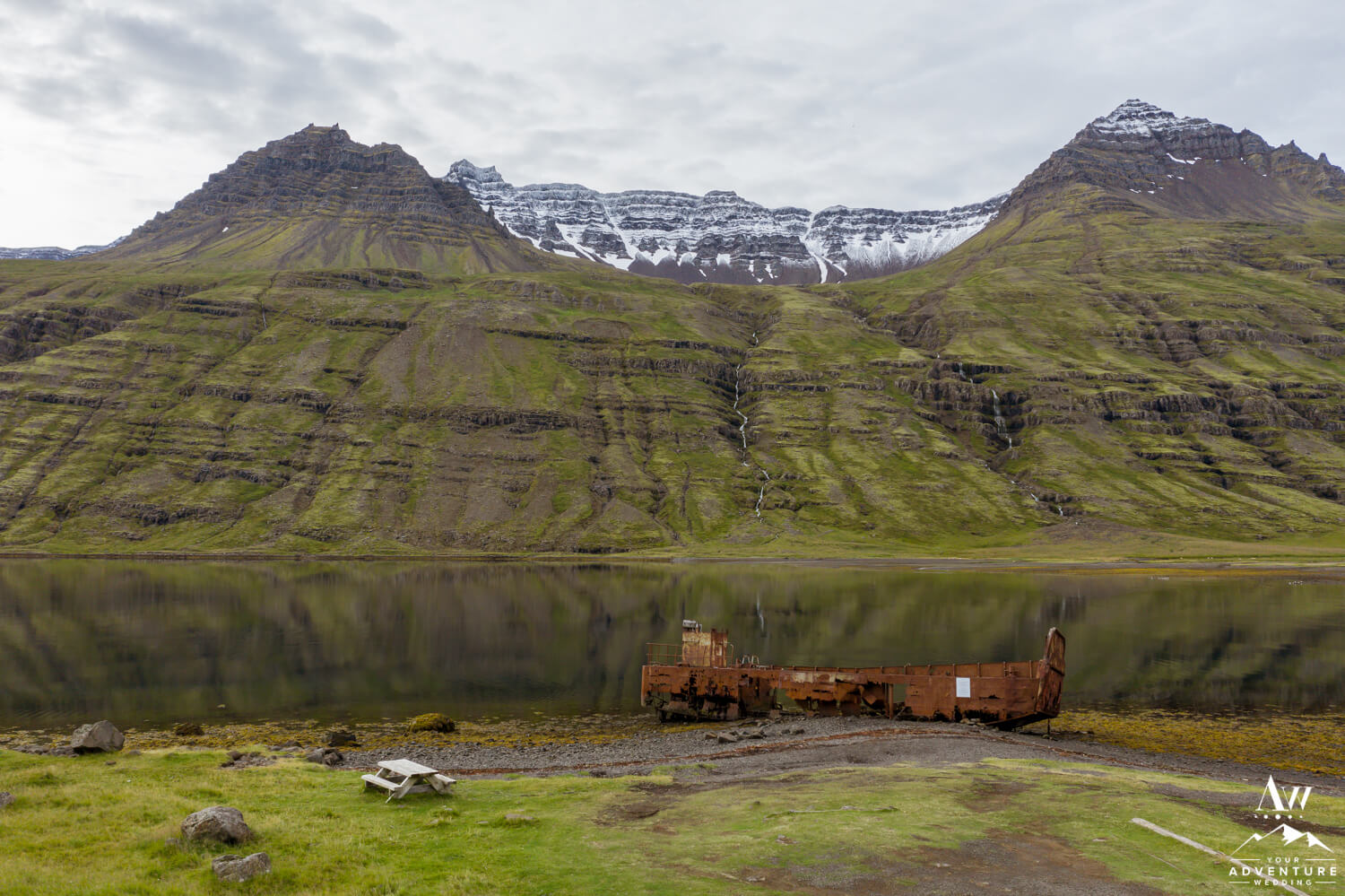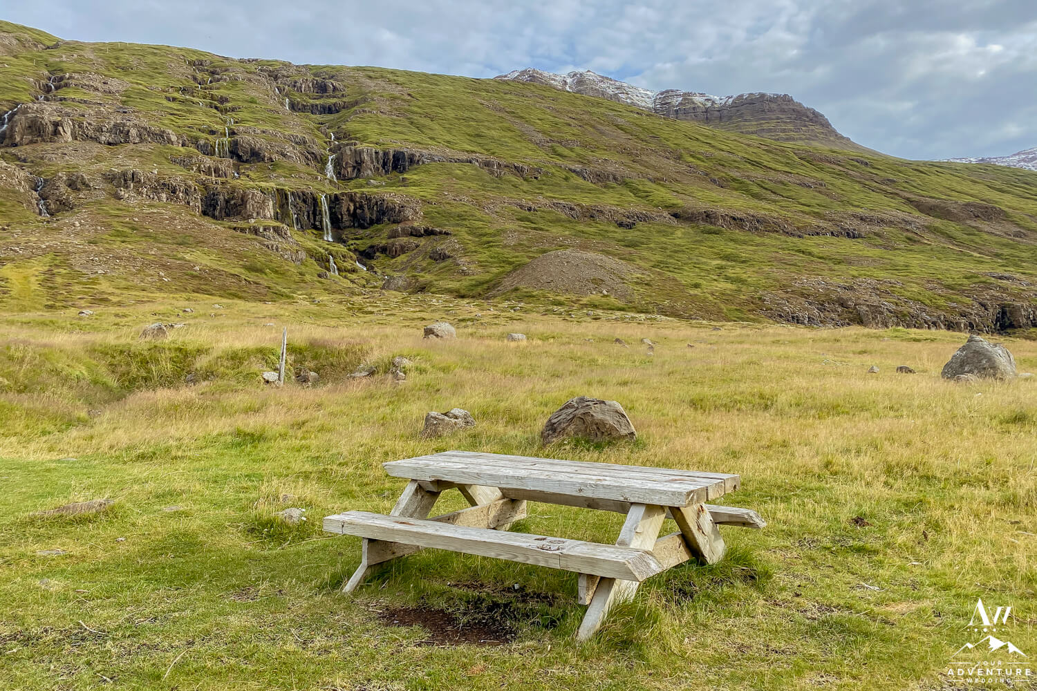 Throughout the Mjóifjörður countryside, you’ll stumble upon many picnic tables or primo spots to have a picnic! For instance, near to the shipwreck there is a table with a waterfall view just waiting for you. Truly a perfect town to bring along lunch and have your own picnic as you’ll only find 360 views and solitude. Remember, there are no stores or restaurants here so make sure you bring your own food (and take your trash with you!).