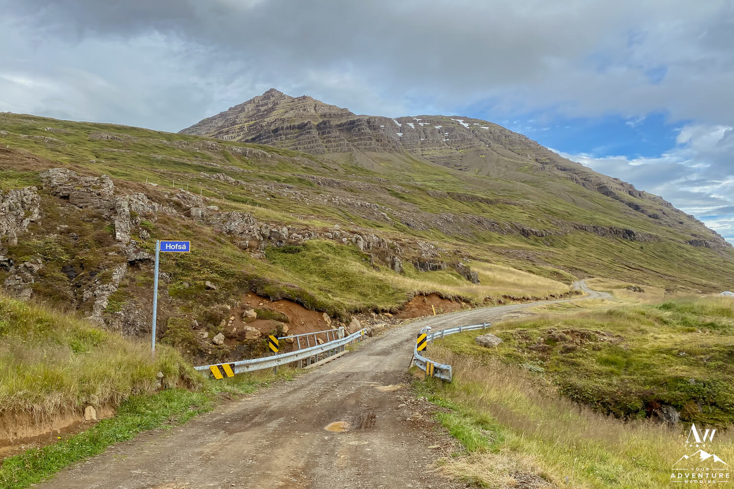 Are you a fan of waterfalls? Good news! There is another “must see” waterfall in Mjóifjörður named, Hofsafoss Waterfall. While on the way to Dalatangi Lighthouse, you’ll cross a bridge and see the waterfall while on the bridge. A few feet away, you’ll find a small parking lot and marked hiking trail to hike up to it should you desire.
