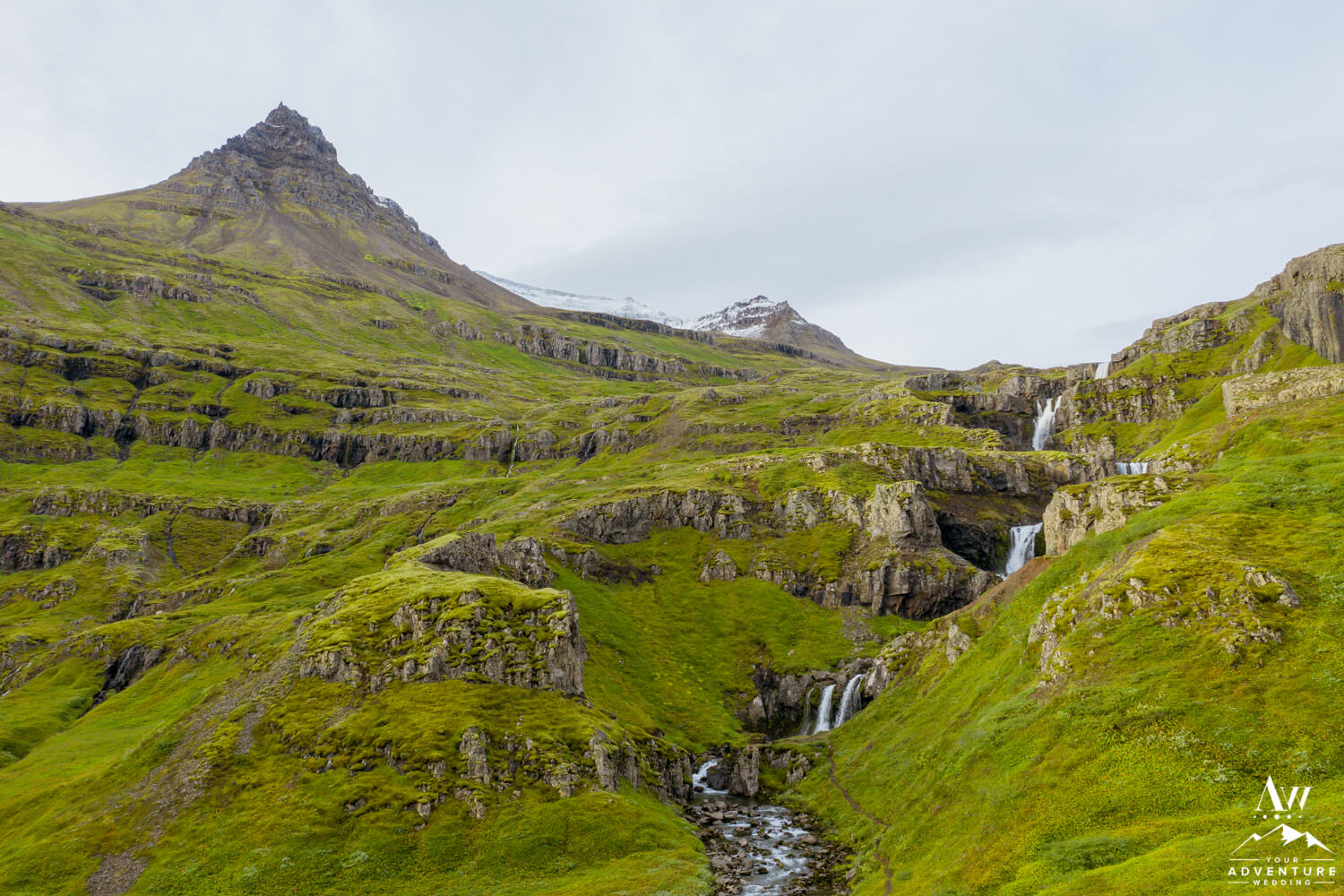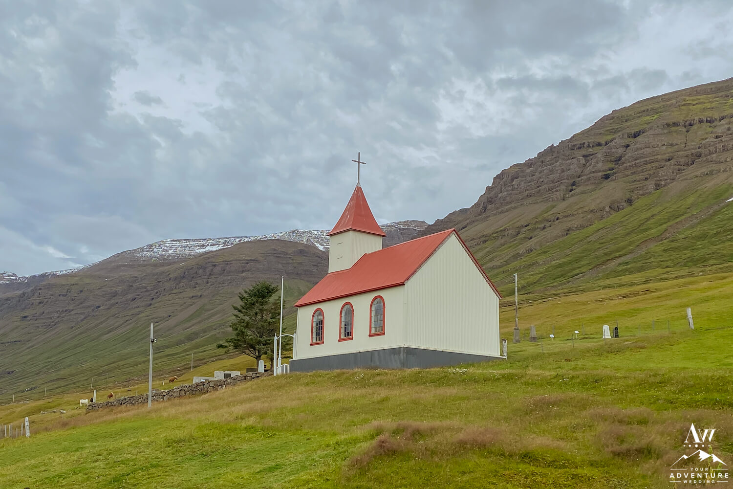Iceland Travel Tip: Be aware there are no hotels within the village, but there is a small Guesthouse called Sólbrekka (it was closed when our Iceland Wedding Planner team visited). So your best bet is to day trip in the 1 hour drive from Egilsstaðir. See Google Maps. During the second week of September, our team encountered snow on the mountain pass and bits when we were in the village. Please make sure you check the road conditions to ensure the road is open before you venture there.