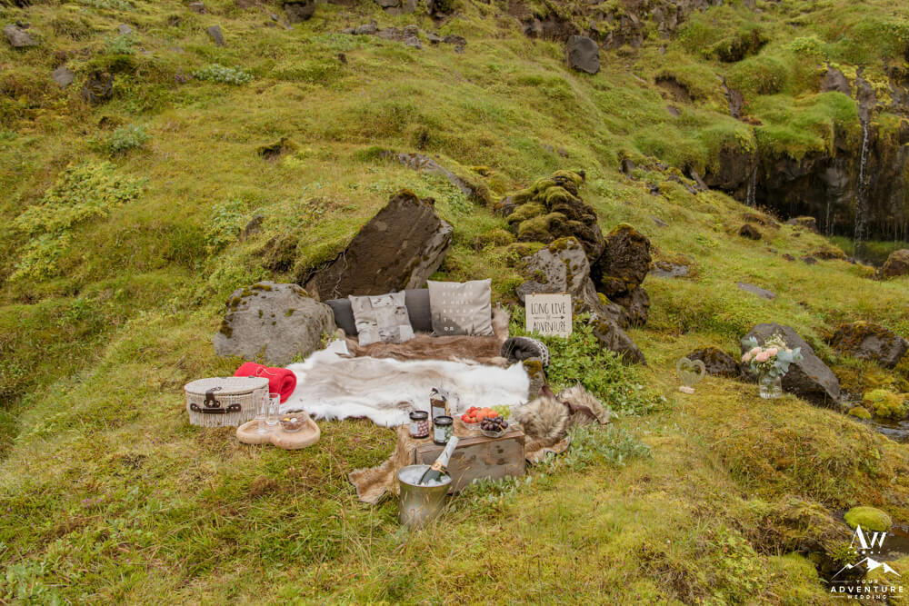 Although Travis knew what was waiting for them, Natalie did not. As soon as she got to the sketchy part leading up she caught a glimpse of their Iceland luxury picnic and happy tears filled her eyes! Seriously, what could top having a waterfall proposal picnic?!