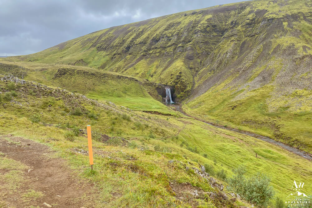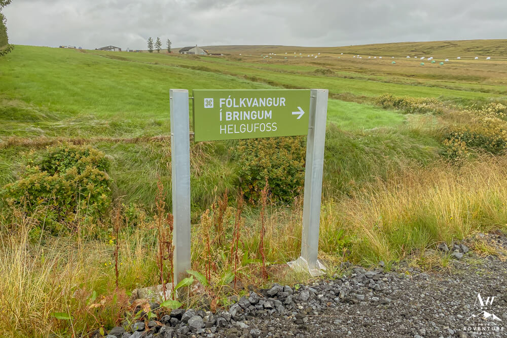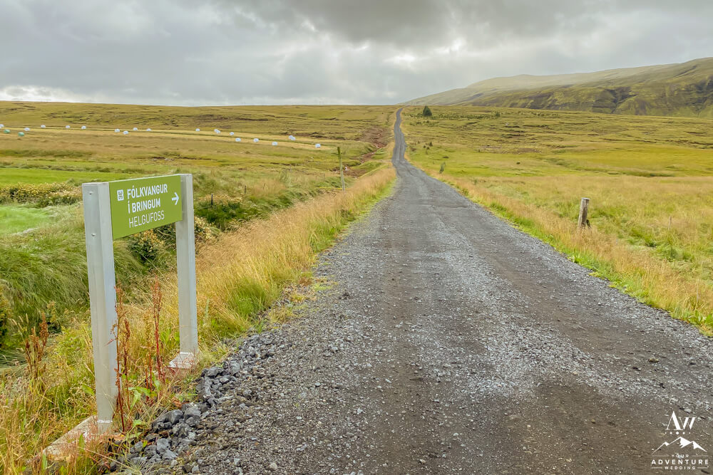 Finding your way to Helgufoss is not difficult. Especially if you have your own rental car. For instance, you will jump on to Route 1 heading North towards Þingvellir National Park. Next, you will turn onto Route #36 which is named Þingvallavegur. Then at 4.2 miles (6.9 km) you’ll take a right turn at the sign below.