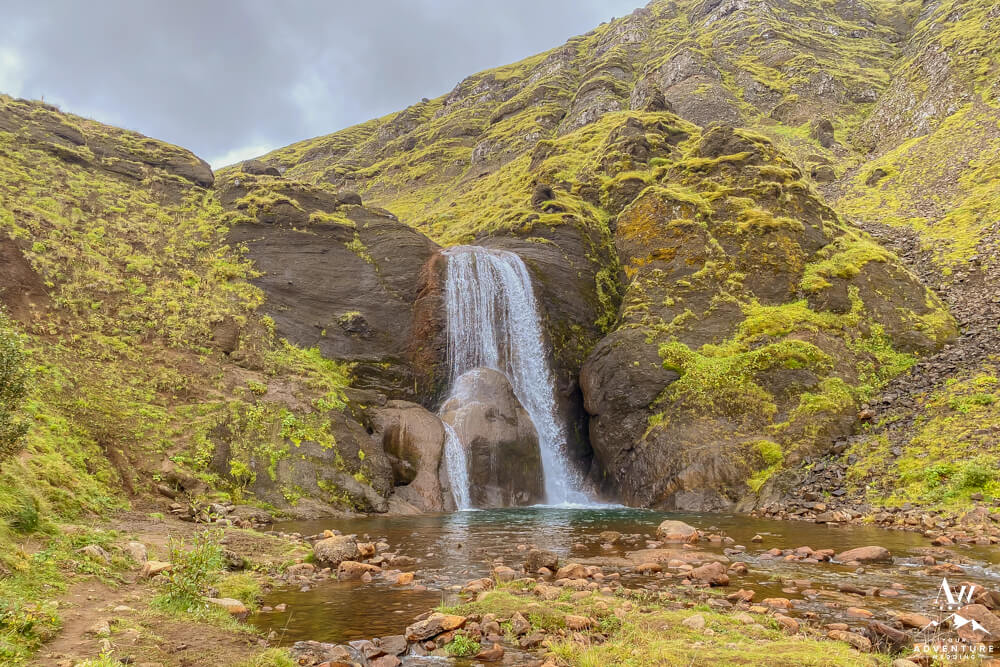 Tröllafoss is ideal if you love to hike and seek a less touristy waterfall to discover! Driving to Tröllafoss leads you barely 40 minutes away from Reykjavik. Note: The 4×4 road is now closed by the landowners so please be respectful and just hike it! Likely a 30-60 minute hike depending on your pace and if snow on the ground.