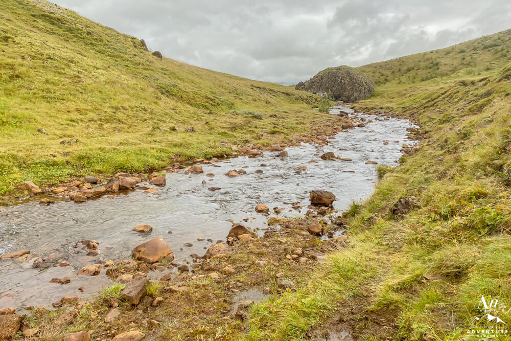 Elliðaárdalur is a tiny river waterfall that in summer is a swimming hole and party area for locals. Within a 15 minute drive from the heart of downtown Reykjavik. Google Map Link.