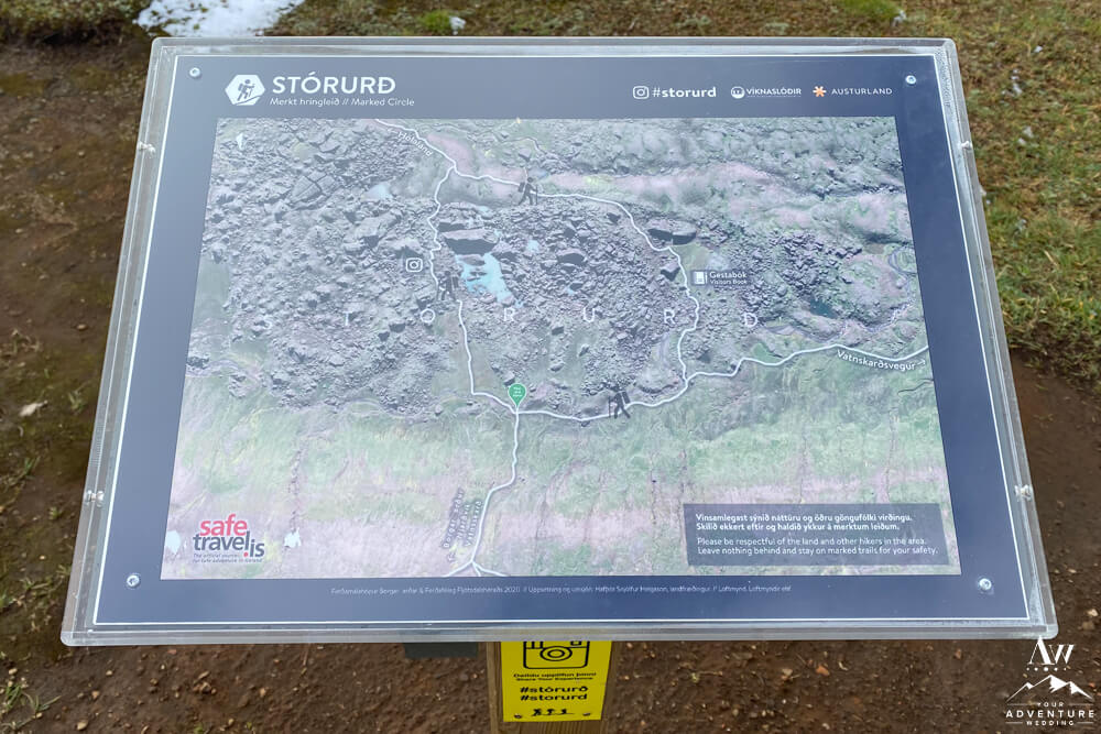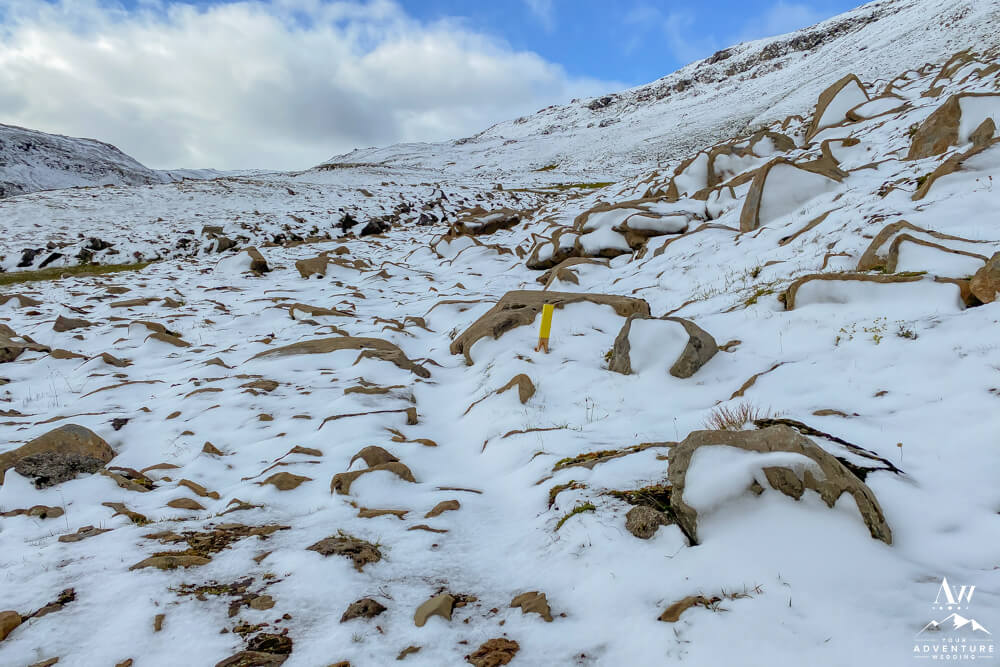 Woohoo! Time to experience Stórurð (Storurd) from our eyes step by step… First, our Iceland Wedding Planner team hiked to it during the first weekend of September. Second, we hiked in the Njarðvík Route (2.8 miles) in and hiked out the Vatnsskarðsvegur Route (4.4 miles). Third, we hiked the road in-between back to our truck (which added an additional hour).