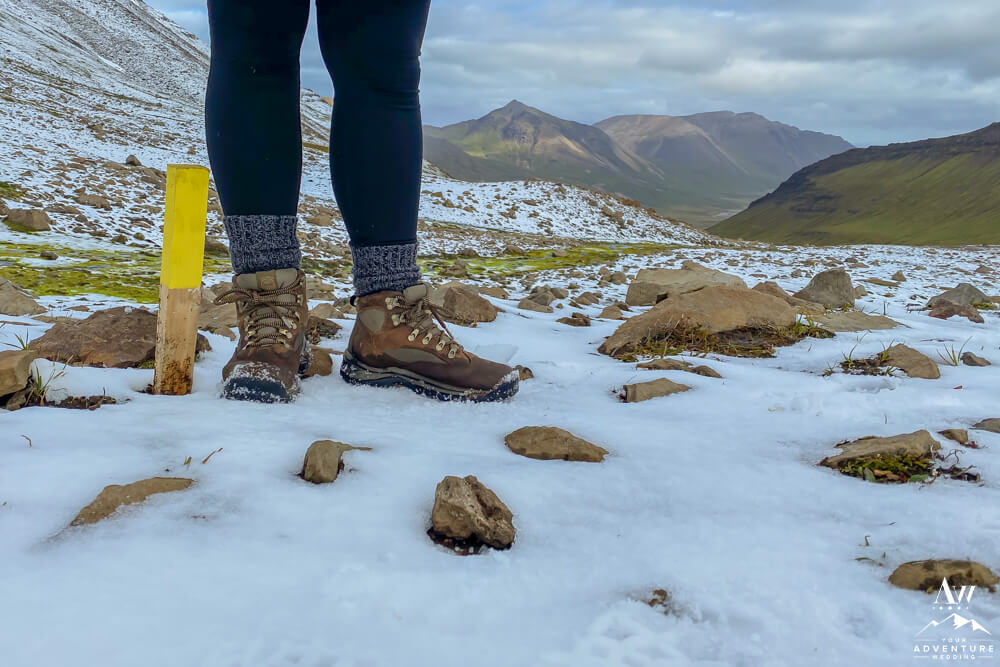 Depends on when you go in August =) If you’re coming early to mid you’re probably fine. Just depends when it starts snowing up there. The photos were taken the first weekend in September 2020 and you saw the snow levels in the post. The easiest way is in and out through Vatnsskardsvegur (the flat way out we featured on our hike) and for sure the best on your knees. Good luck!