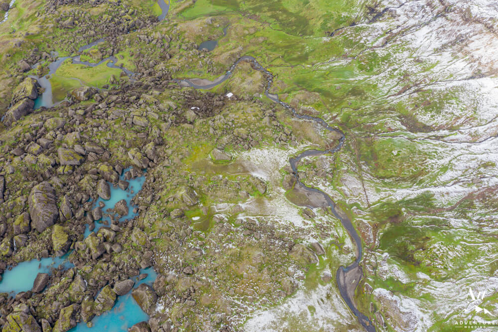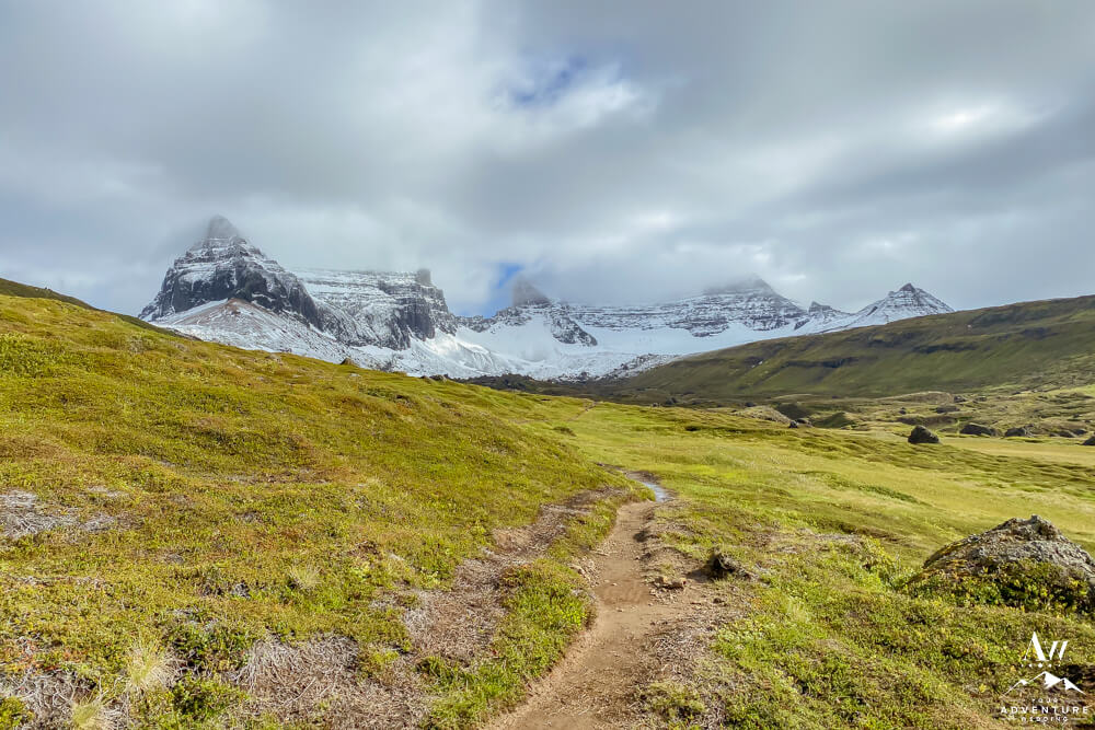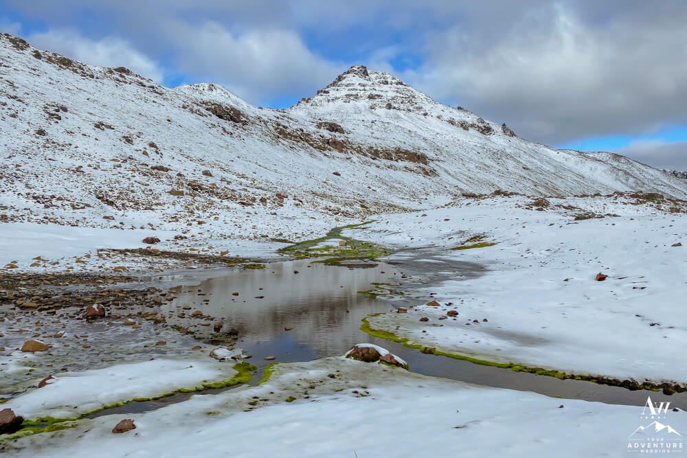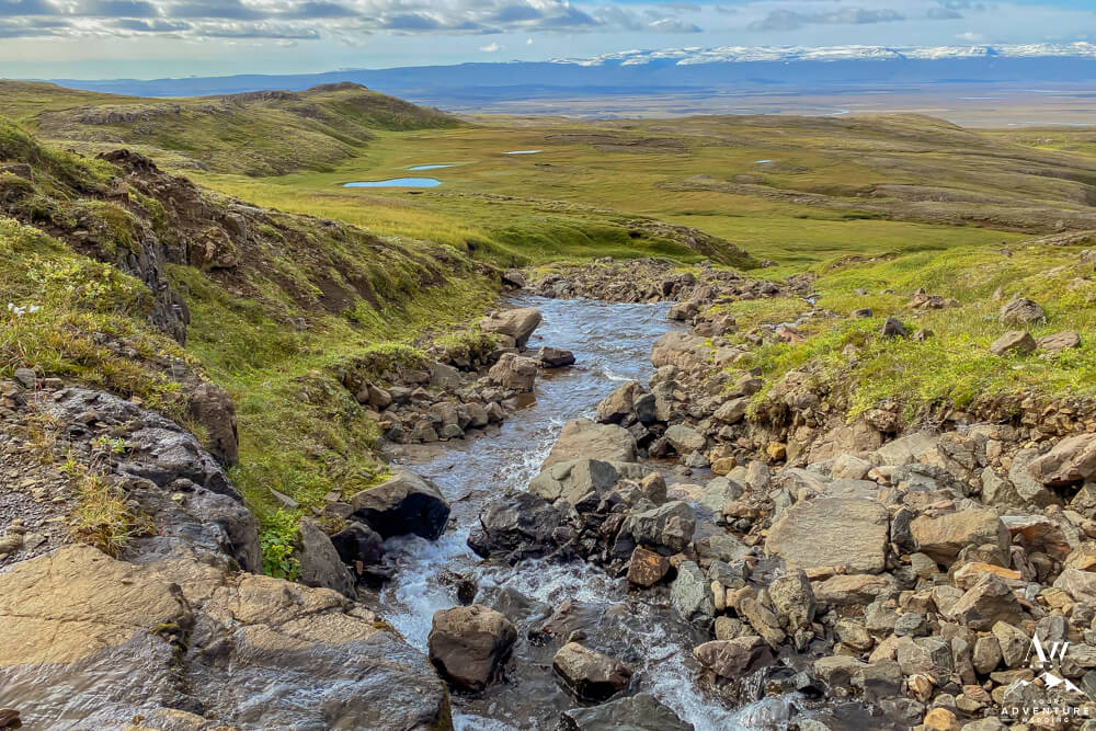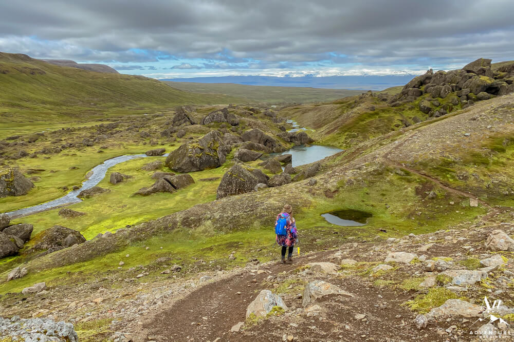 Although be aware at times this route can be more challenging with river crossings, elevation, and terrain type (very muddy / swampy). We would only suggest going this route between mid July to August. Also know, outside of this time frame, make sure you bring crampons, hiking poles, and a hiking GPS because snow and ice create even more challenges in the last stretch and decline down to Stórurð. << Note: This is our featured way hiking in. >>