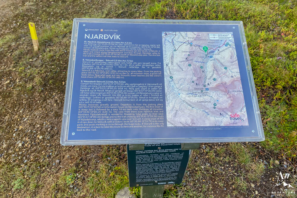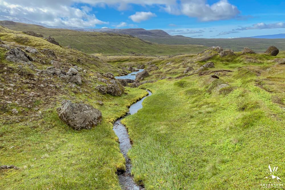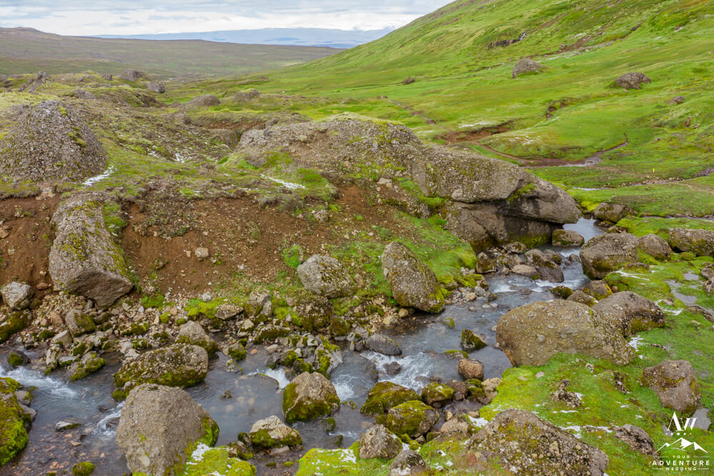 Personally, this is in our opinion the most exciting route into Stórurð. For example, going in this route you will witness the majesty of the Mjóidalur Valley straight on the entire time. Honestly, it is one of the most picturesque hikes possible in Iceland. Furthermore, Njarðvík is also the shortest hiking route to Stórurð as an added bonus.