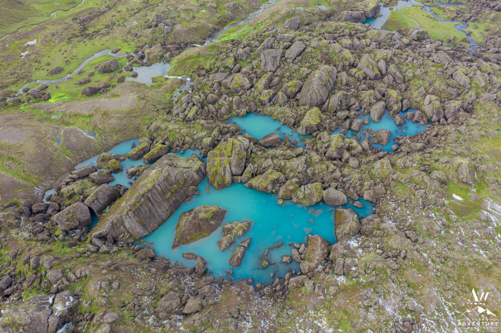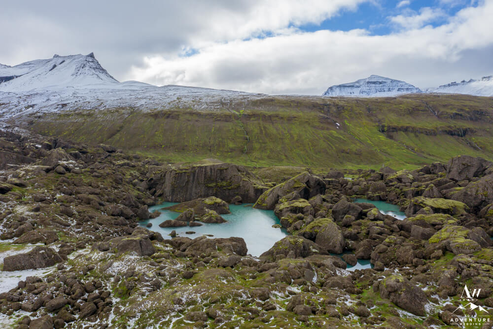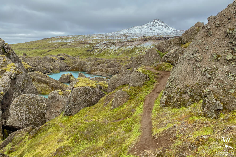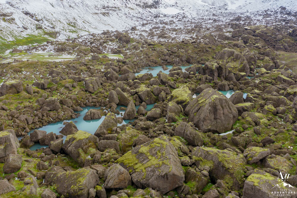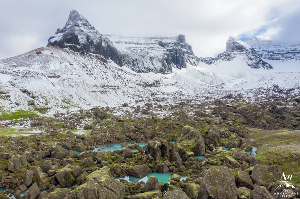 The word Stórurð (Storurd) directly translates from Icelandic to English as “large rubble.” Likewise, as we alluded to above this magical area was crafted by an Ice Age landslide. How freaking cool is that? Nature and the weather in Iceland always creates the most amazing features! The colors and textures are so nuts! To illustrate, the deep turquoise pools surrounded by giant boulders and steep mountains just sets a very otherworldly scene.
