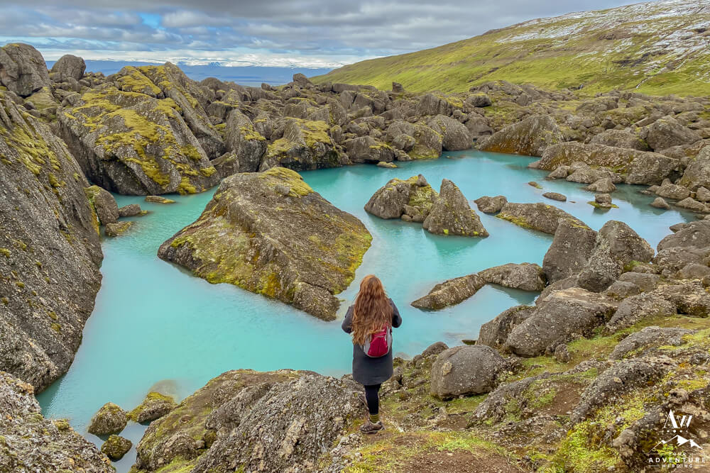 Upon arriving to Stórurð, you’ll feel like a kid in a candy store! There is a main map you can check out once down from the mountain to see if you want to hike the inner loop or just go right to the blue water boulder spots. We hiked clockwise from the left side and it took us about 1 hour with a 15 minute lunch stop. If you do the full circle hike, make sure you take a minute and sign the guestbook! Special Note: Please be mindful of your things here, especially if you picnic. Take all of your trash with you and leave absolutely no trace.