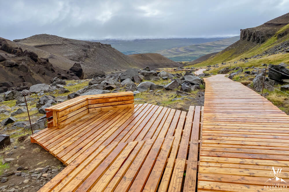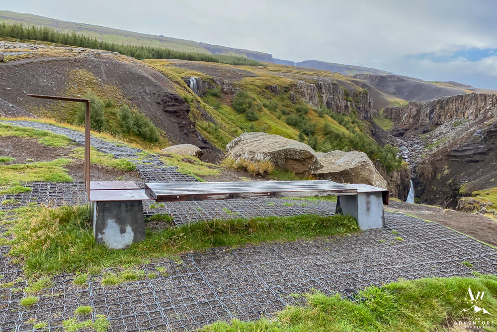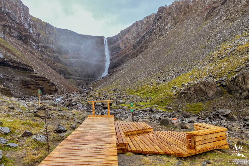 Bravo! High five!! So close you can taste it! Continue to follow the boardwalk path (be respectful don’t venture off of it for preservation purposes) back to the crowning gem, Hengifoss Waterfall! Another sitting area awaits you if you need rest or a break. Otherwise this is the end of the hike. There are signs clearly posted asking you NOT to jump off the path, please respect them. In the meantime, lots of luck as you embark on your hike to Hengifoss!!