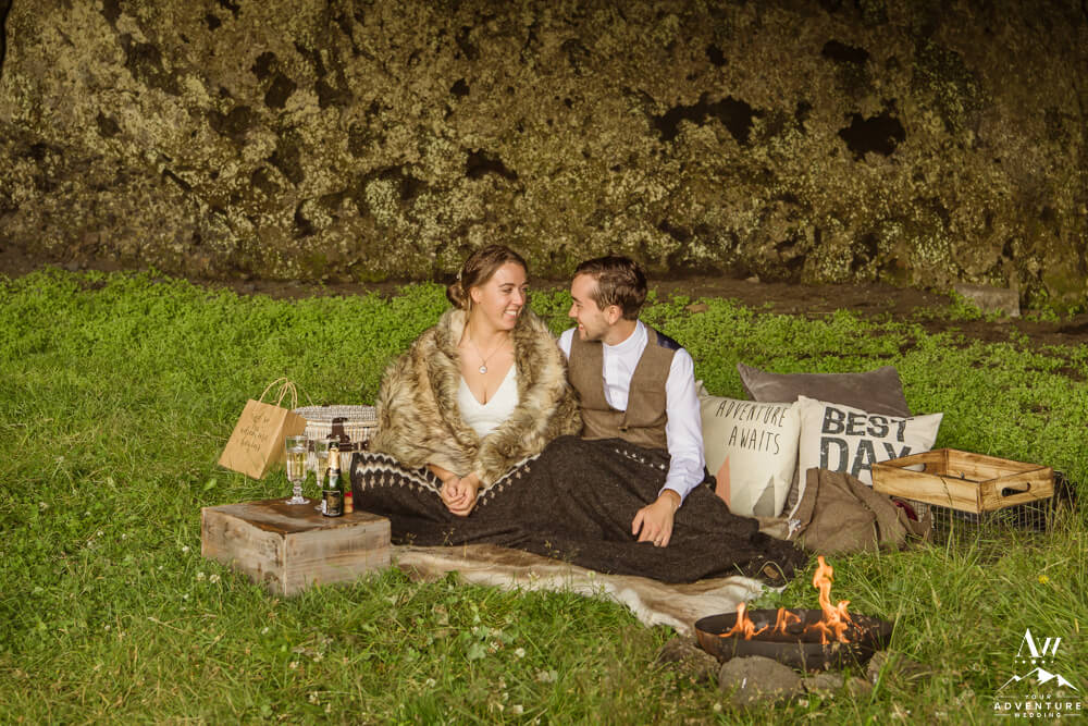 Regardless if you are eloping or not, you can still have luxury elements to treat yourself with! To illustrate, Laura and Mathias had lamb ribs for their first formal date together so it was important to them to make that happen during their romantic Iceland elopement. We were more than happy to craft a little luxury picnic for them to delight in! What a perfect experience for their first lunch as husband and wife!!
