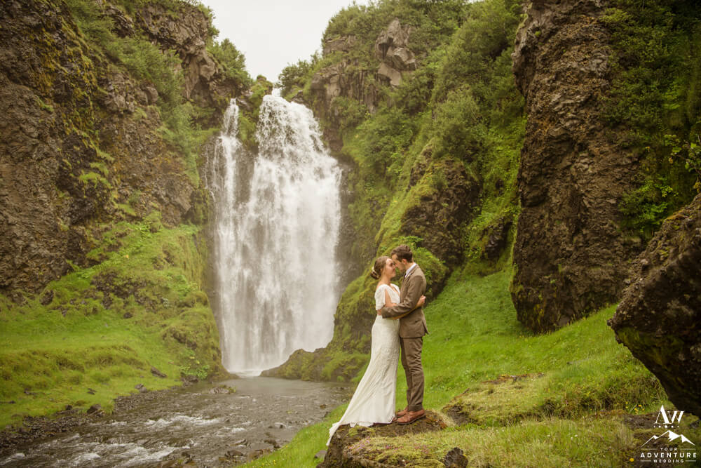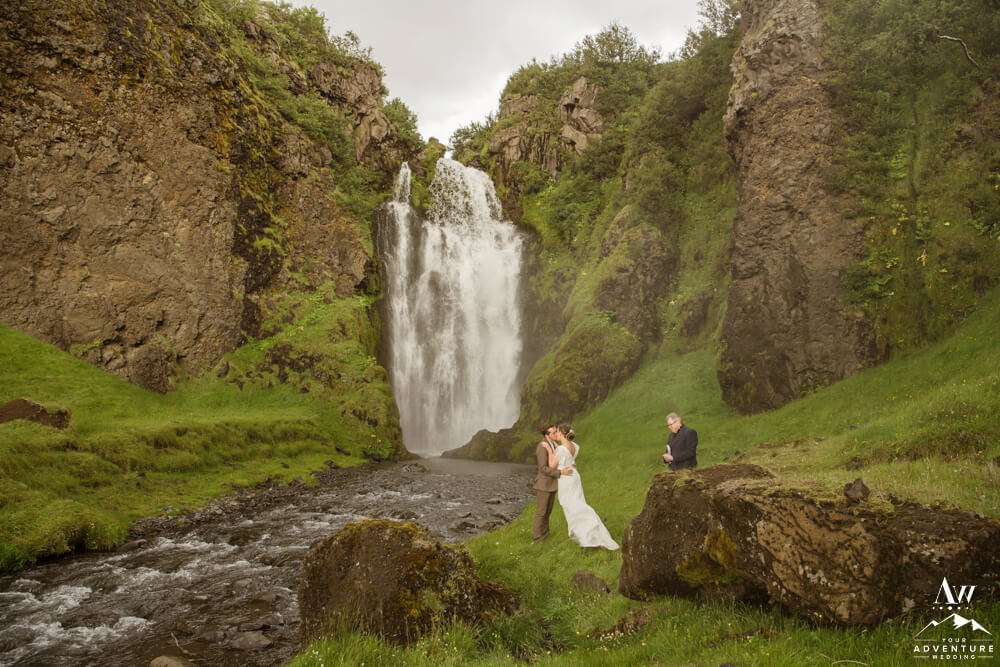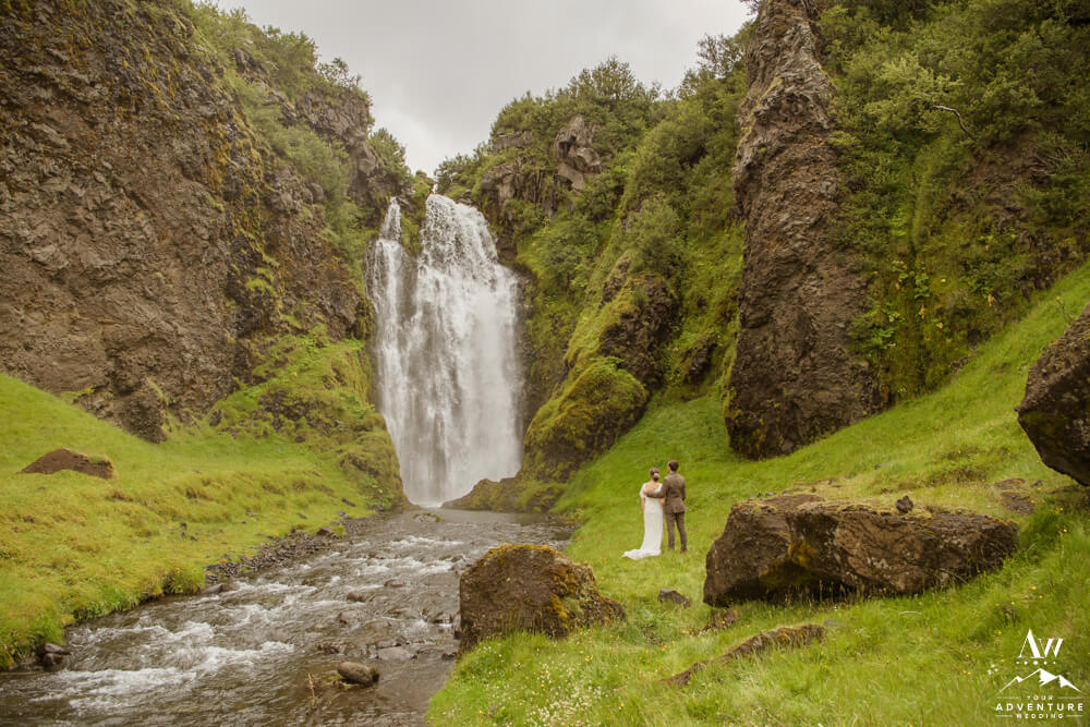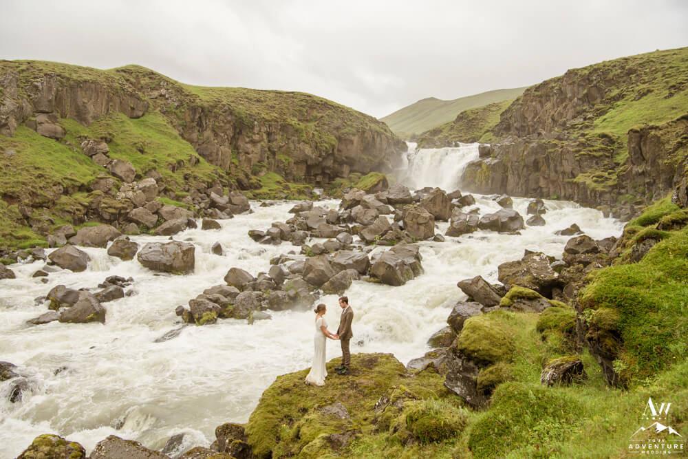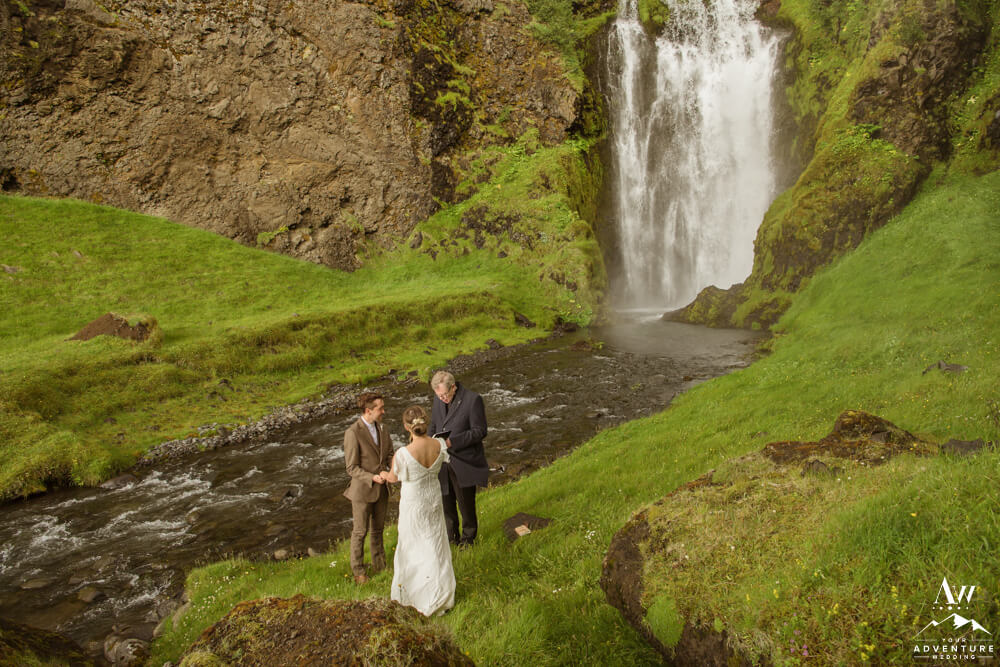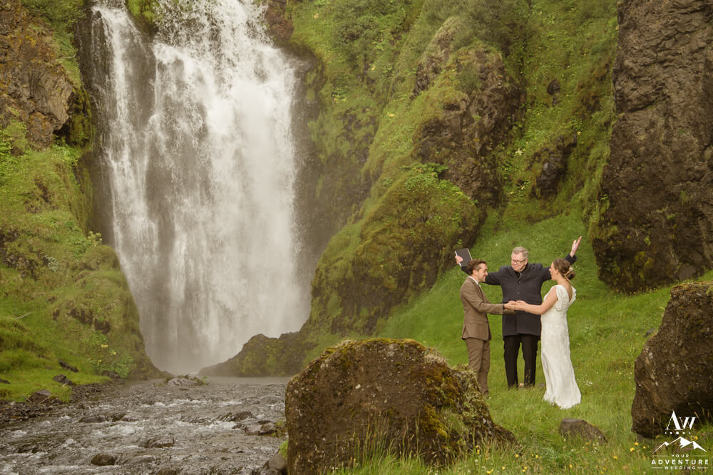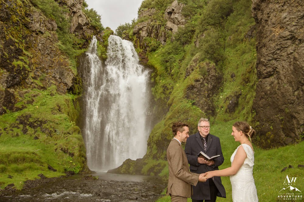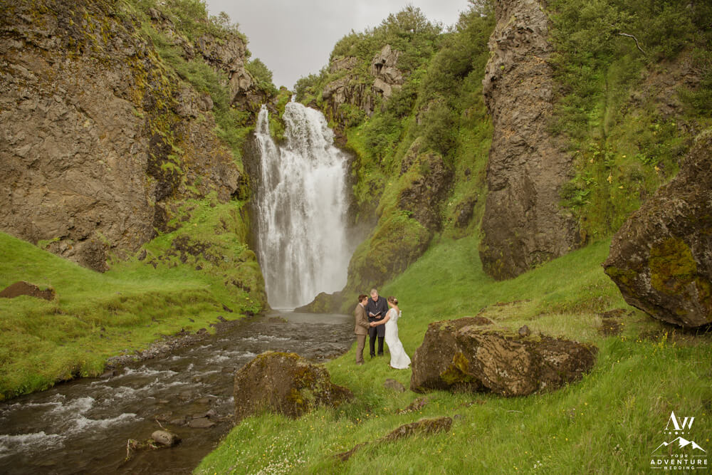 Overall, our Iceland Wedding Planner team always wants to make sure our couples also have enough time to feel, enjoy the day, not be rushed and are able to savor every single second! Hence, these two beginning the day by hiking to a private canyon where there was a stunning lush waterfall. It was there that they professed their unconditional love to each other with the sweetest wedding ceremony! Plus, these two were the FIRST to ever marry here, how special!