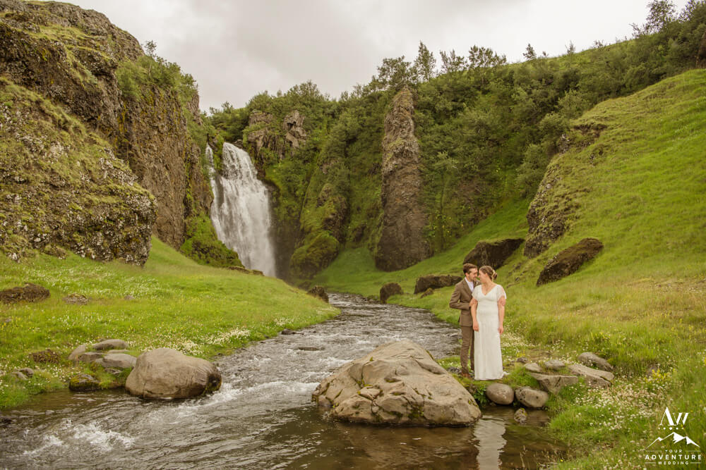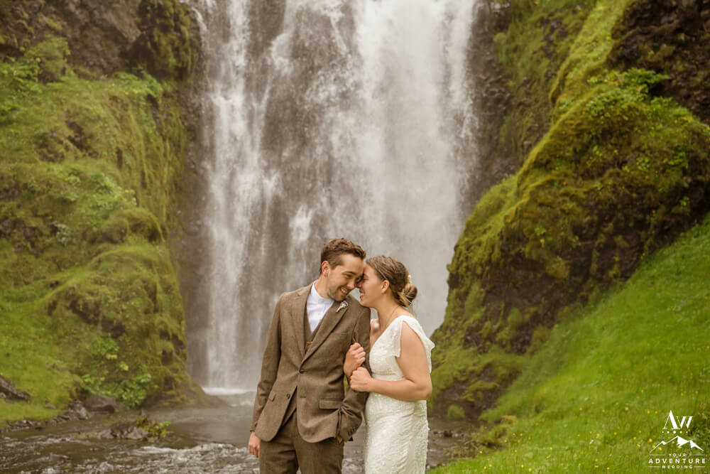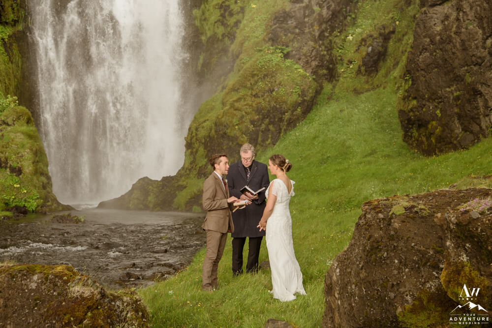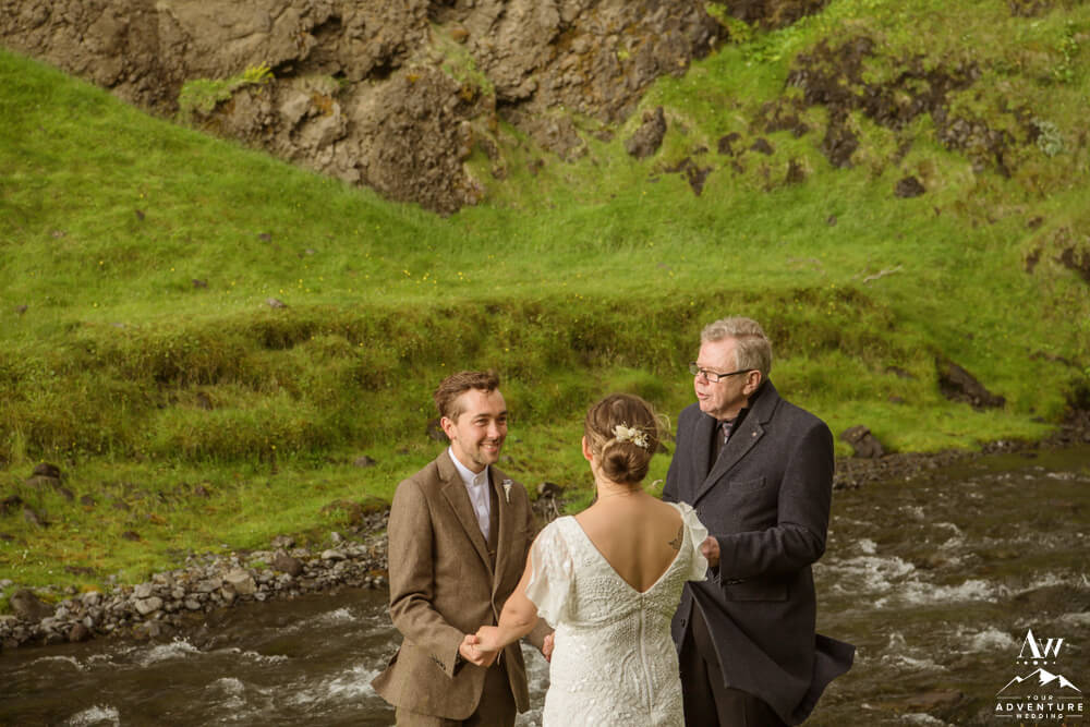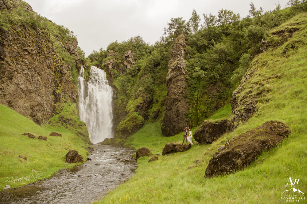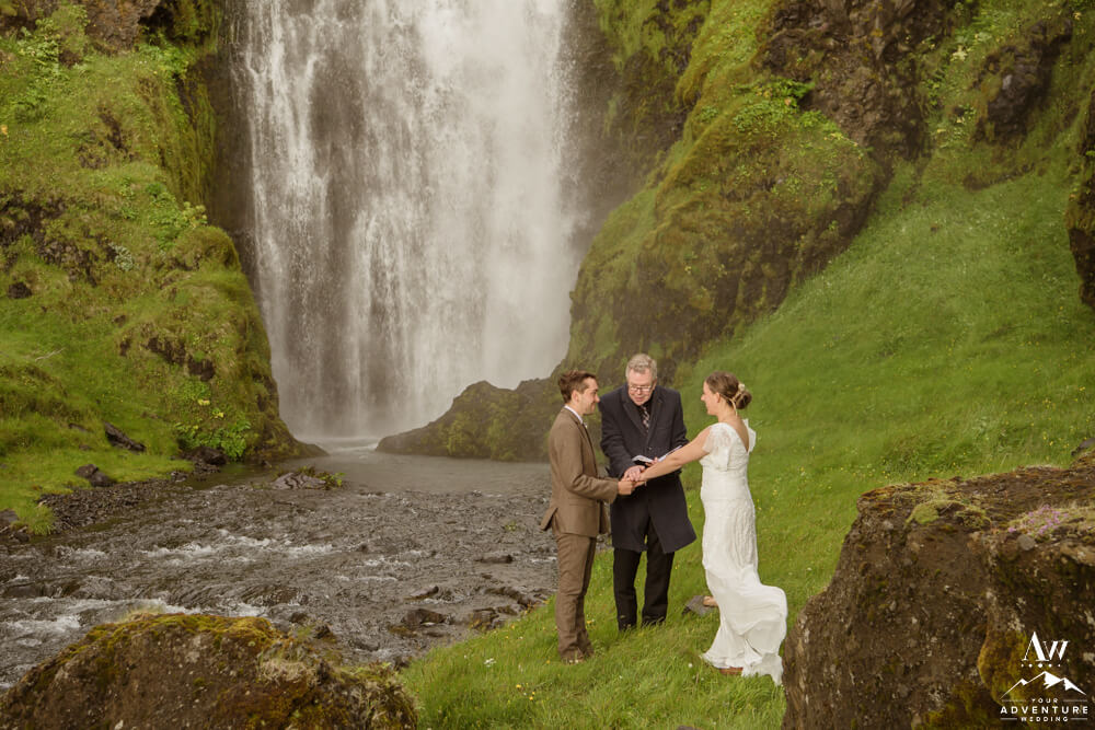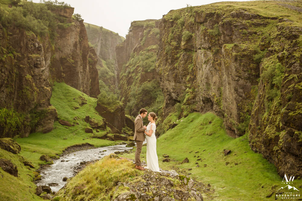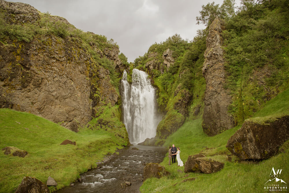 Overall, our Iceland Wedding Planner team always wants to make sure our couples also have enough time to feel, enjoy the day, not be rushed and are able to savor every single second! Hence, these two beginning the day by hiking to a private canyon where there was a stunning lush waterfall. It was there that they professed their unconditional love to each other with the sweetest wedding ceremony! Plus, these two were the FIRST to ever marry here, how special!