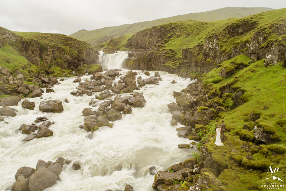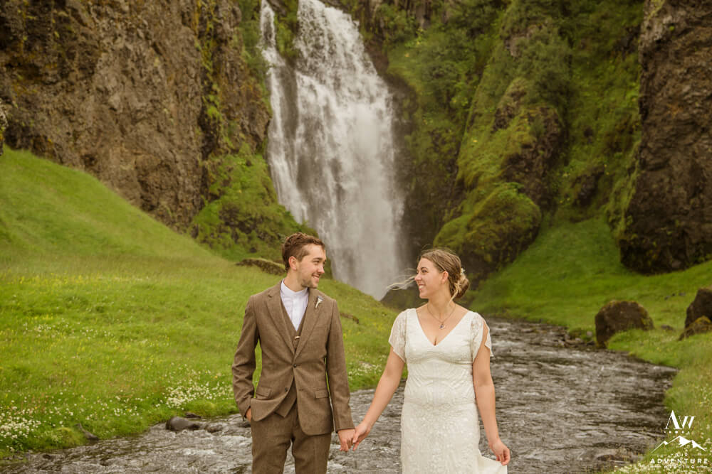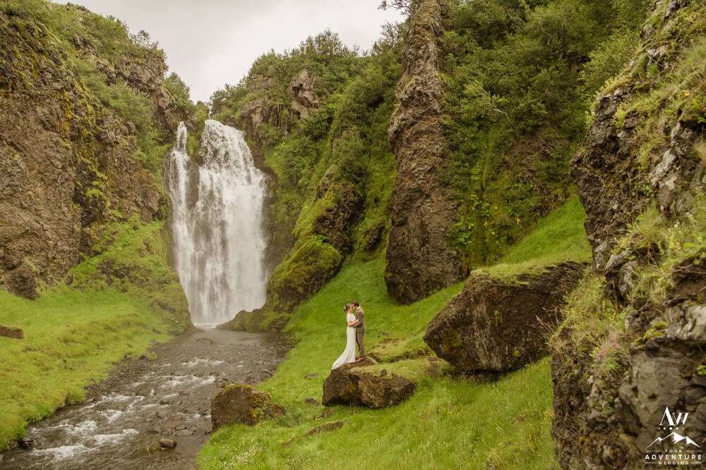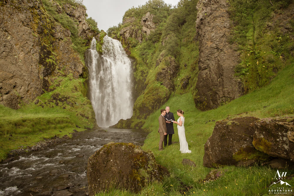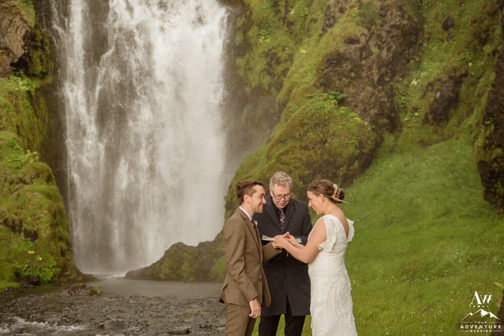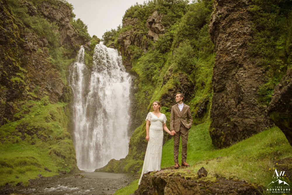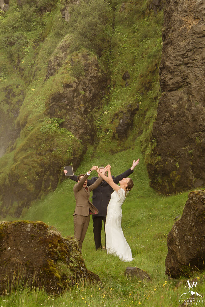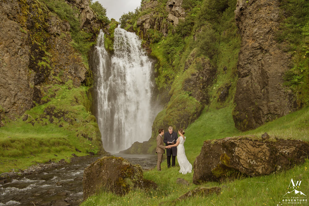Overall, our Iceland Wedding Planner team always wants to make sure our couples also have enough time to feel, enjoy the day, not be rushed and are able to savor every single second! Hence, these two beginning the day by hiking to a private canyon where there was a stunning lush waterfall. It was there that they professed their unconditional love to each other with the sweetest wedding ceremony! Plus, these two were the FIRST to ever marry here, how special!
