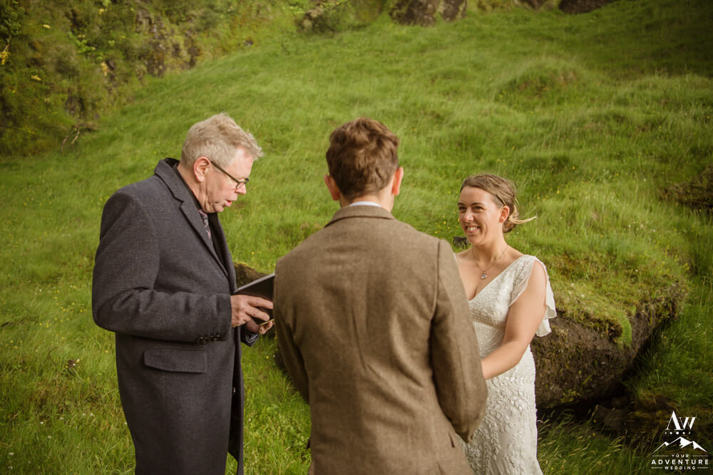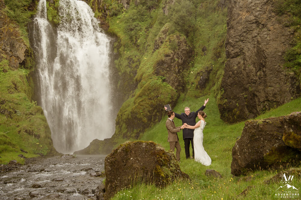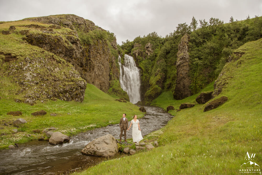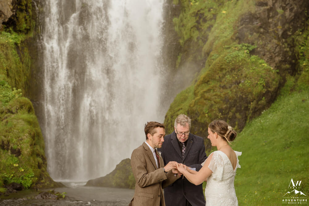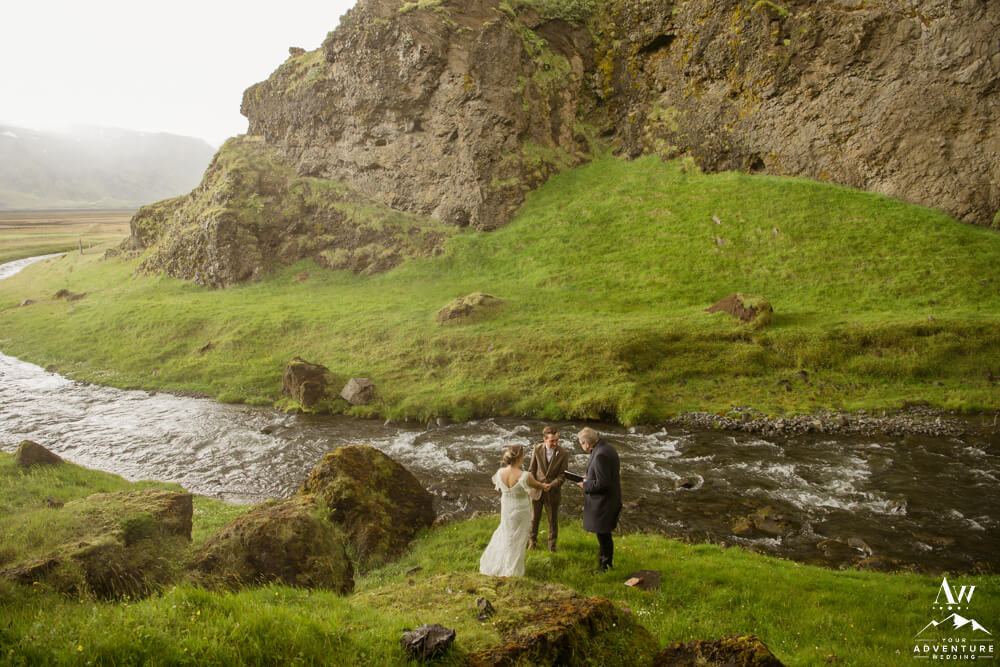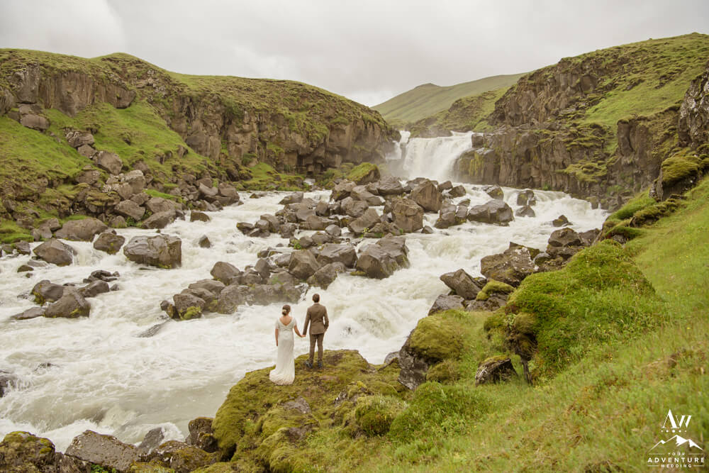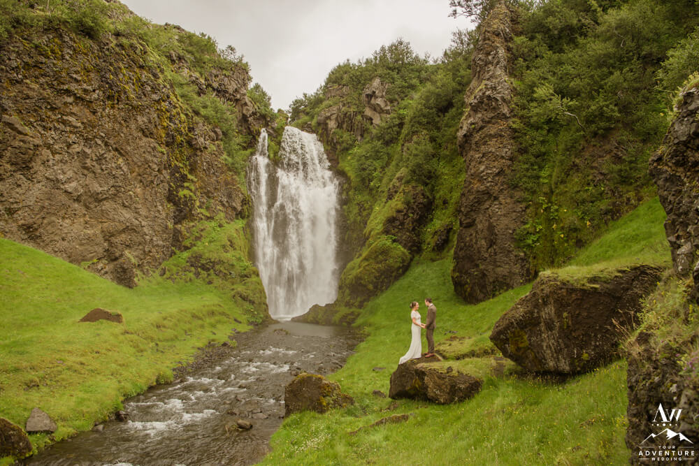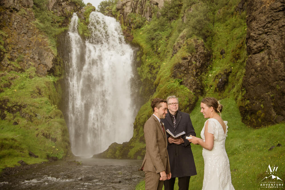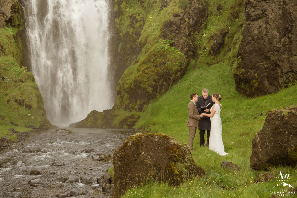 Overall, our Iceland Wedding Planner team always wants to make sure our couples also have enough time to feel, enjoy the day, not be rushed and are able to savor every single second! Hence, these two beginning the day by hiking to a private canyon where there was a stunning lush waterfall. It was there that they professed their unconditional love to each other with the sweetest wedding ceremony! Plus, these two were the FIRST to ever marry here, how special!