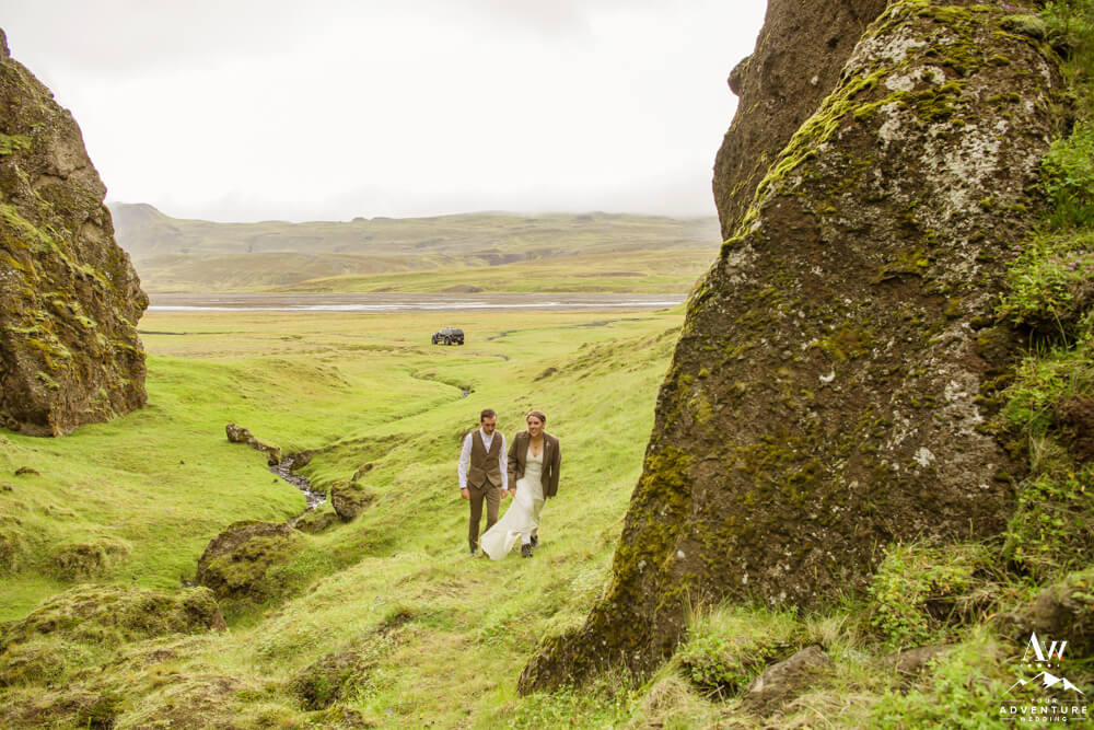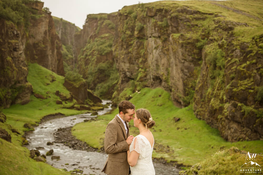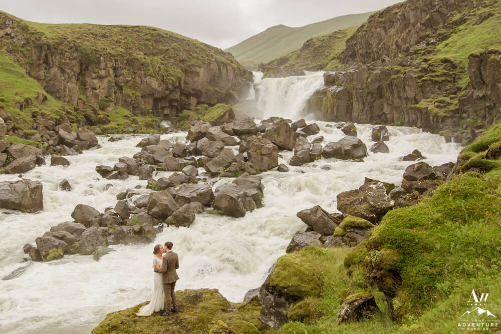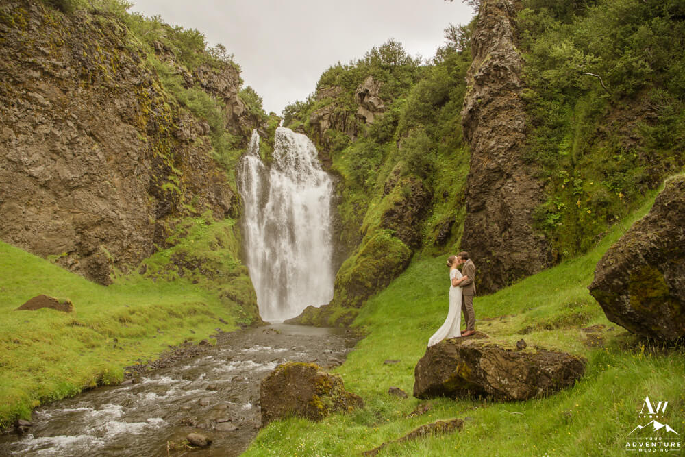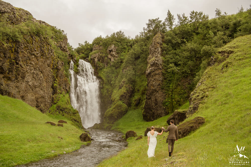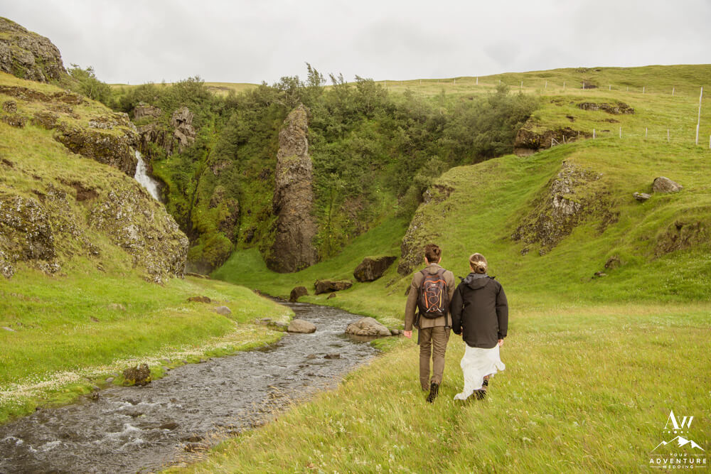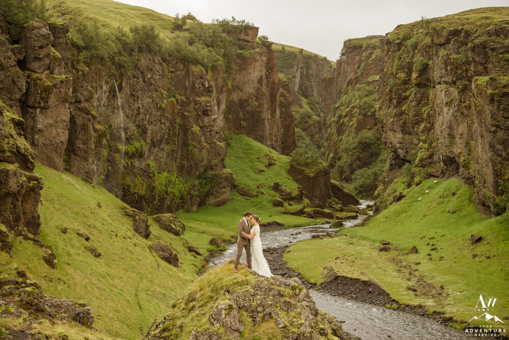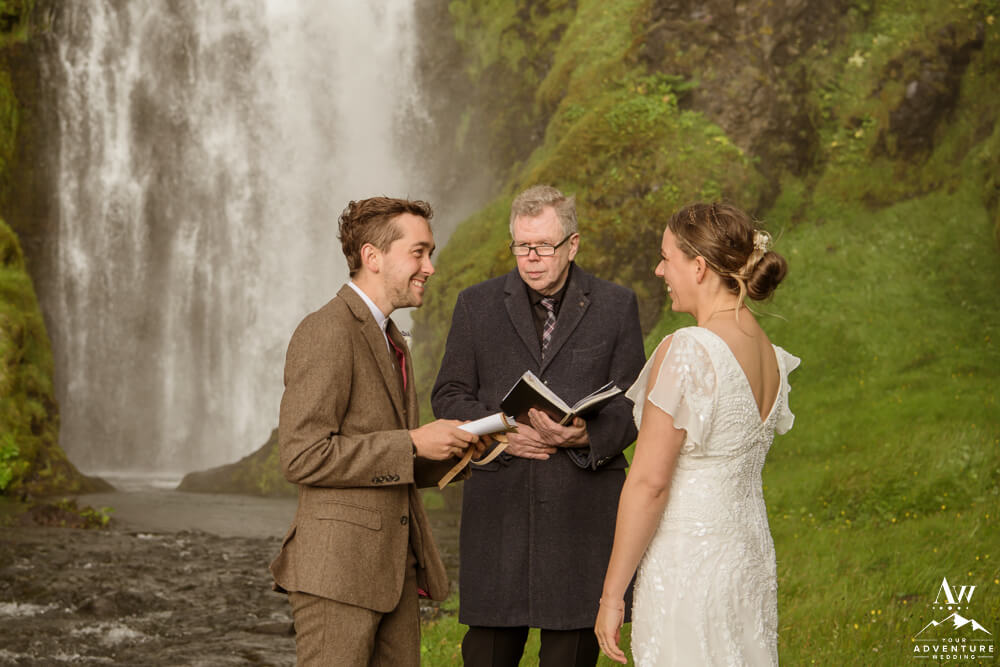 Overall, our Iceland Wedding Planner team always wants to make sure our couples also have enough time to feel, enjoy the day, not be rushed and are able to savor every single second! Hence, these two beginning the day by hiking to a private canyon where there was a stunning lush waterfall. It was there that they professed their unconditional love to each other with the sweetest wedding ceremony! Plus, these two were the FIRST to ever marry here, how special!
