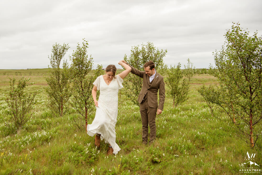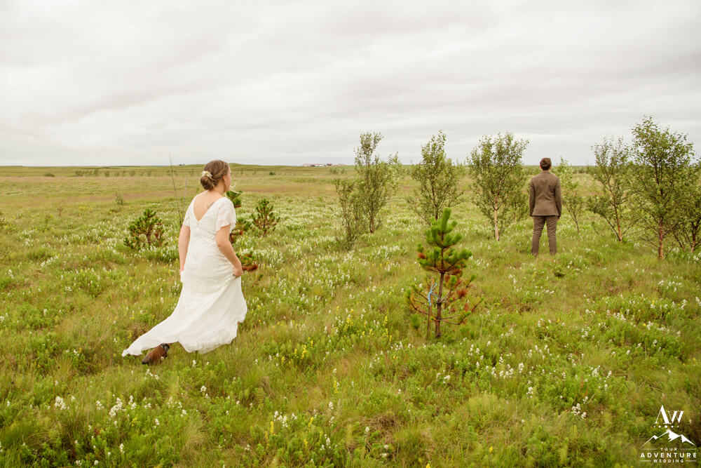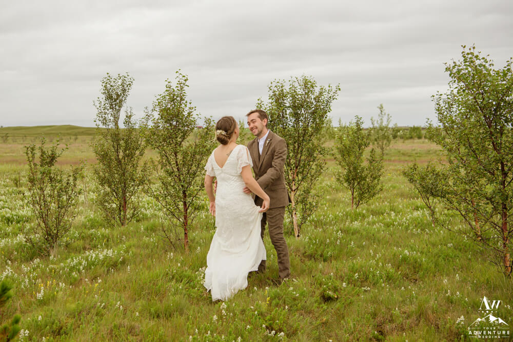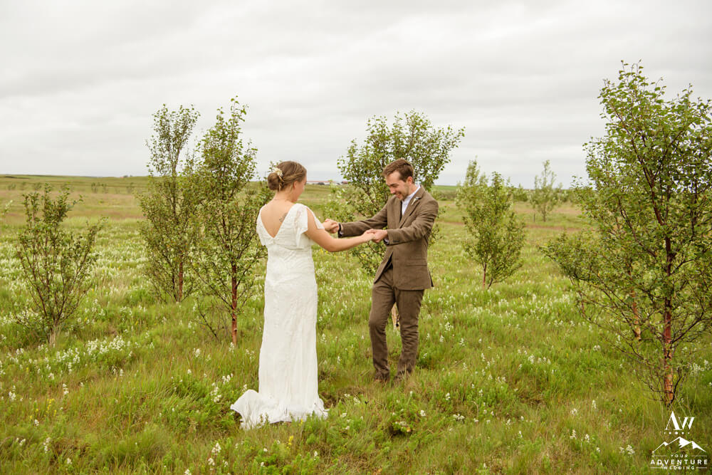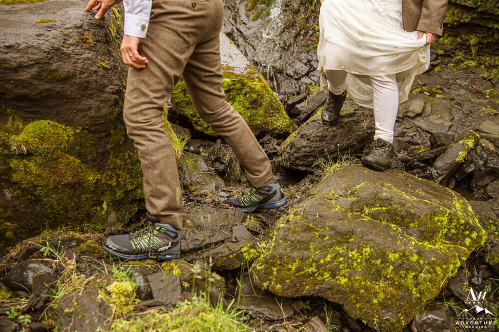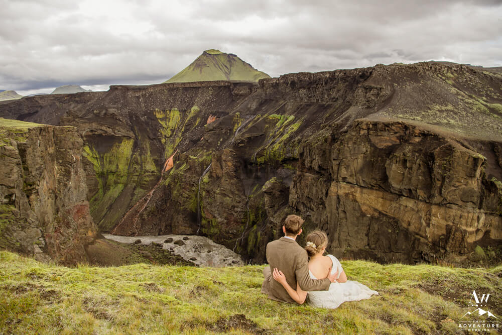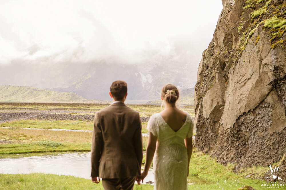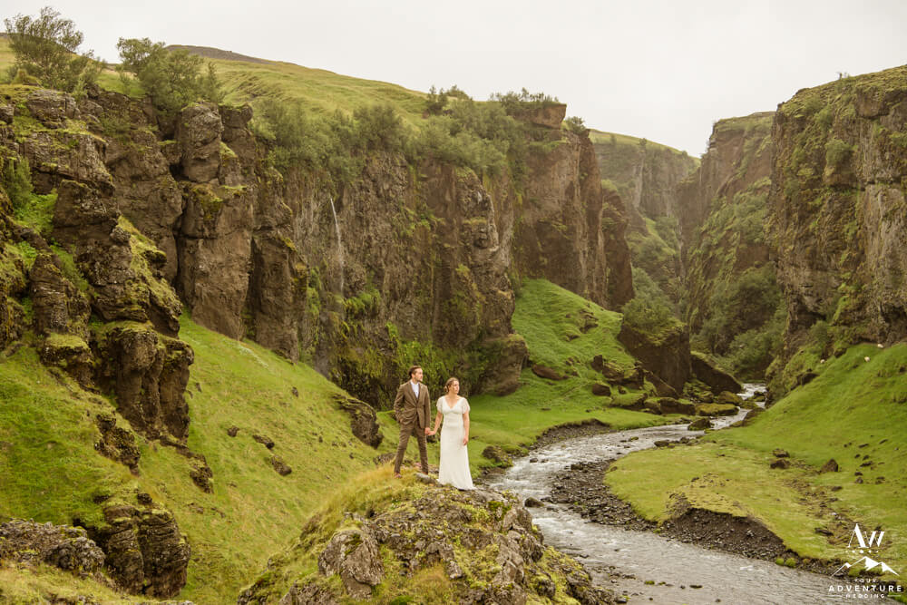 Overall, our Iceland Wedding Planner team always wants to make sure our couples also have enough time to feel, enjoy the day, not be rushed and are able to savor every single second! Hence, these two beginning the day by hiking to a private canyon where there was a stunning lush waterfall. It was there that they professed their unconditional love to each other with the sweetest wedding ceremony! Plus, these two were the FIRST to ever marry here, how special!