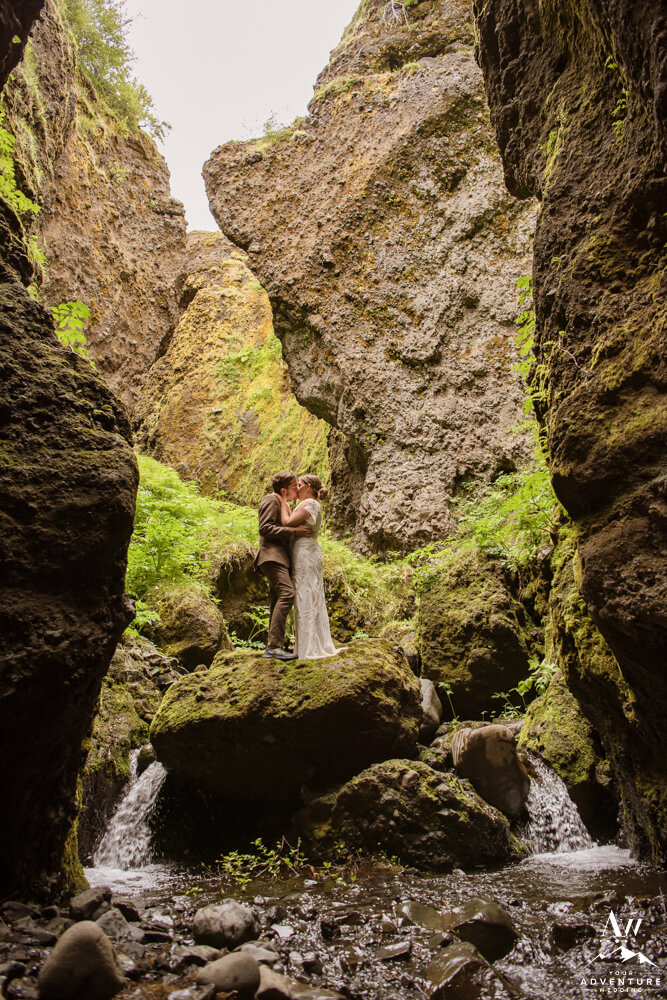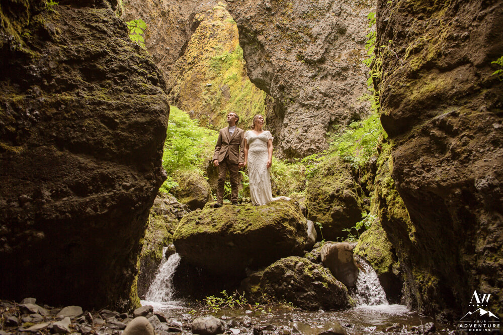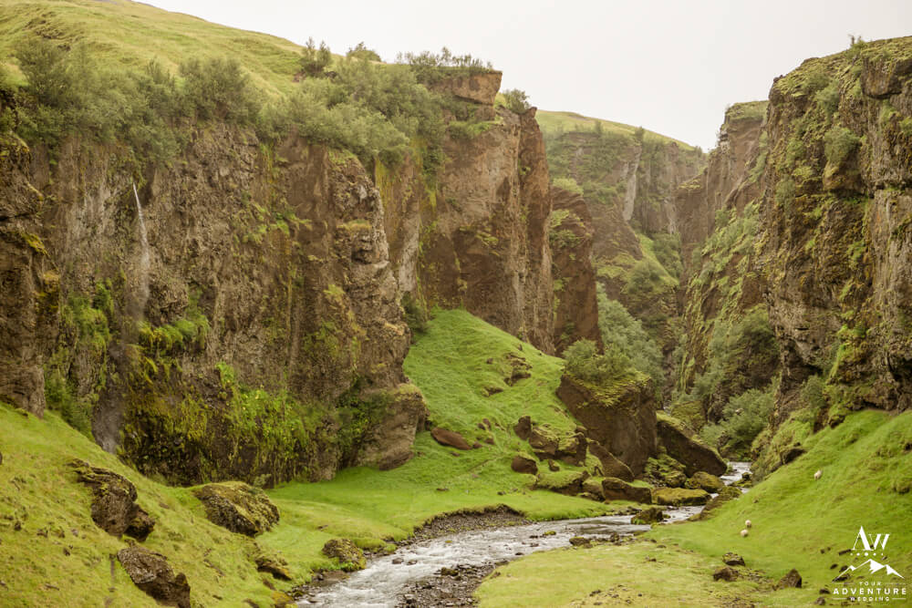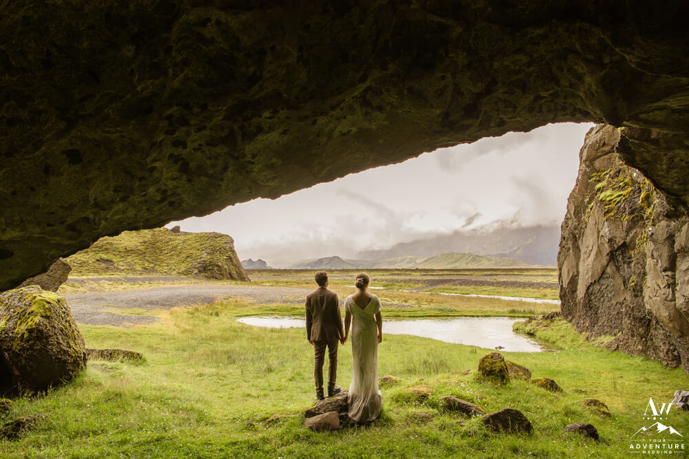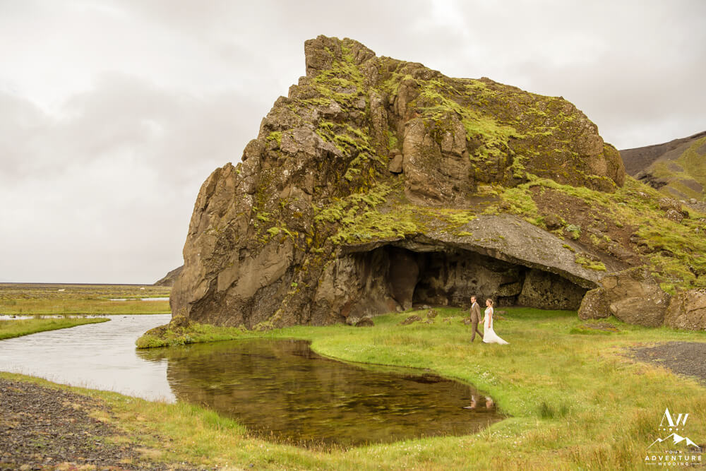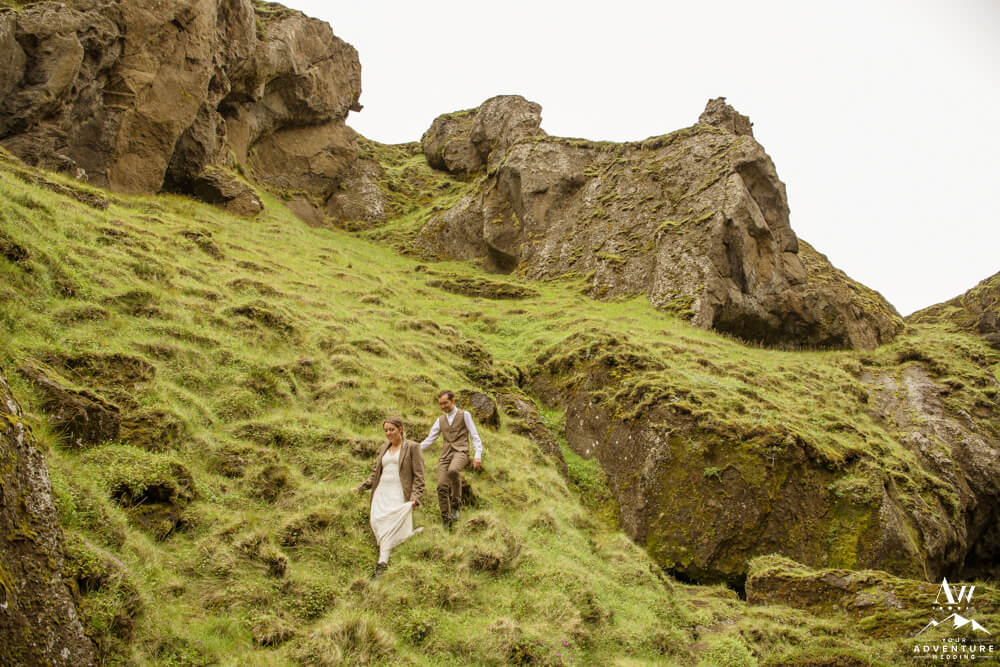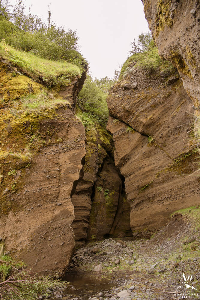 Countless areas around Iceland feel enchanted or alive. To illustrate, some locals would say those areas are inhabited by elves or the famed “hidden people.” More often then not, our team likes to refer to them as “Narnia” areas. You know, the kind of place that feels or looks like it should be a storybook or fantasy not real life. Laura and Mathias next location exploration during their romantic Iceland elopement was a sweet little green canyon which had a cave and a trickle waterfall within!
