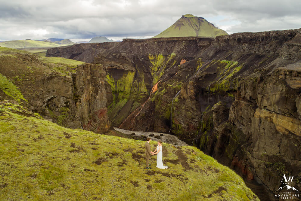 Thousands of canyons, can be found throughout Southern Iceland. However, the most vivid are found within the highlands. Happy to share that these two were the first to explore this location with us and it was FREAKING EPIC! The drone shots our Iceland elopement photographer took really put this place in perspective.