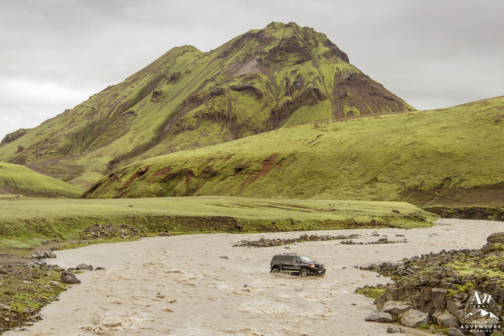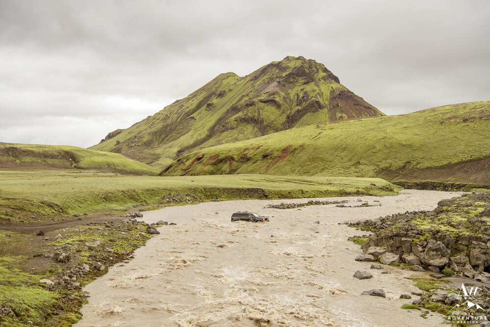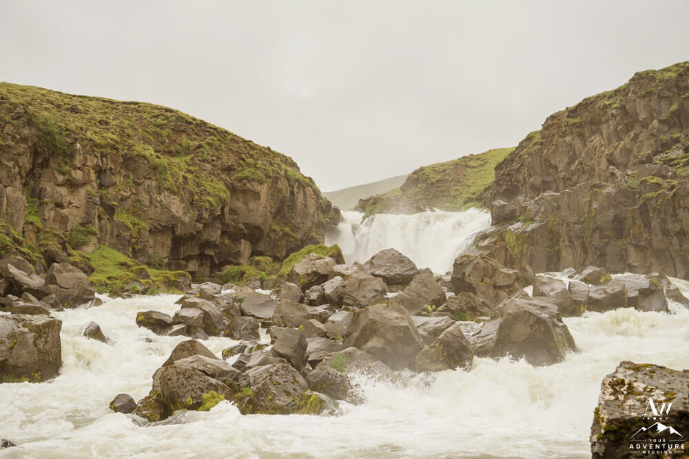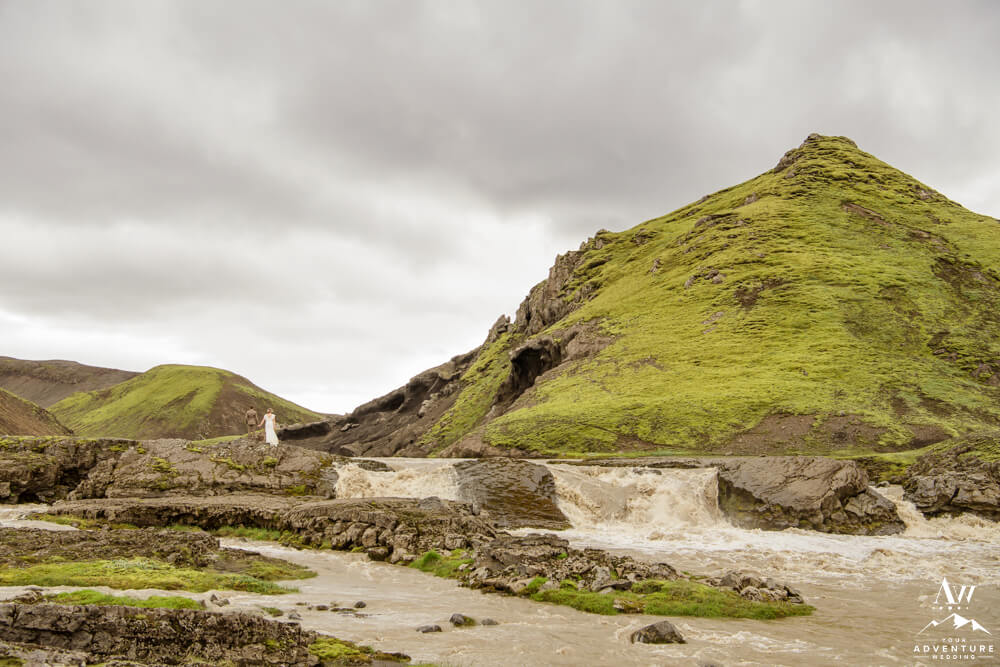 Oh la la Laura and Mathias’ 7th location experience during their romantic Iceland elopement was traveling even deeper into the highlands. In fact, they needed to cross one of the more challenging rivers on the way too. For instance, the river was running so deep that a Land Rover that was on 38” tires and had a snorkel had sunk itself in the river hours before and had to be pulled out. In heading into the Icelandic highlands, it’s really important you have a competent driver alongside of you to avoid mistakes like that. But these two had a freaking blast crossing and thoroughly enjoyed the waterfall exploration that followed!