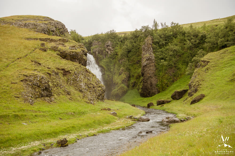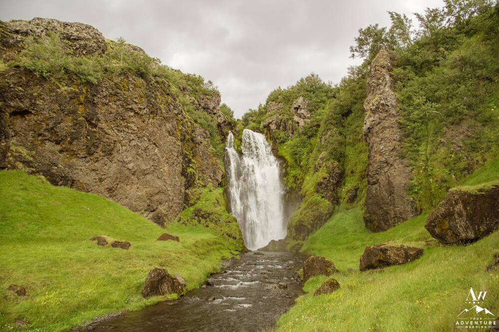 Waterfalls in Iceland come in all shapes, sizes, and types. For instance, a river waterfall is totally different because of the strength and power that feeds it. Not only the sight of it is powerful but the sounds are insane! Pretty sure these two were surprised at how massive the river waterfall was!