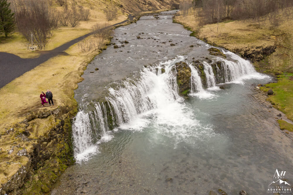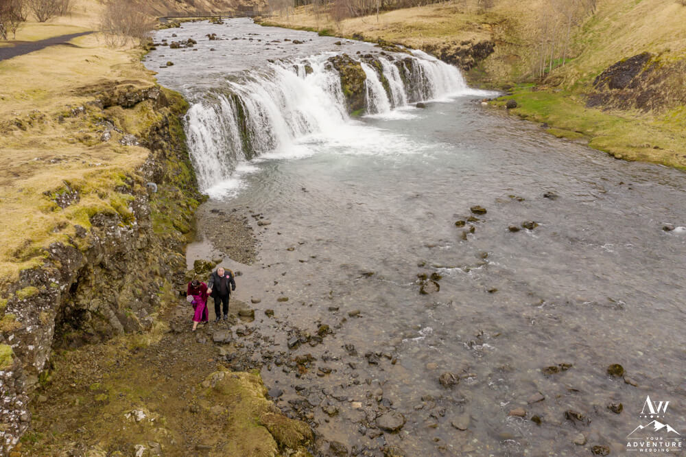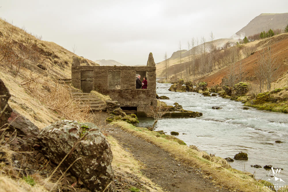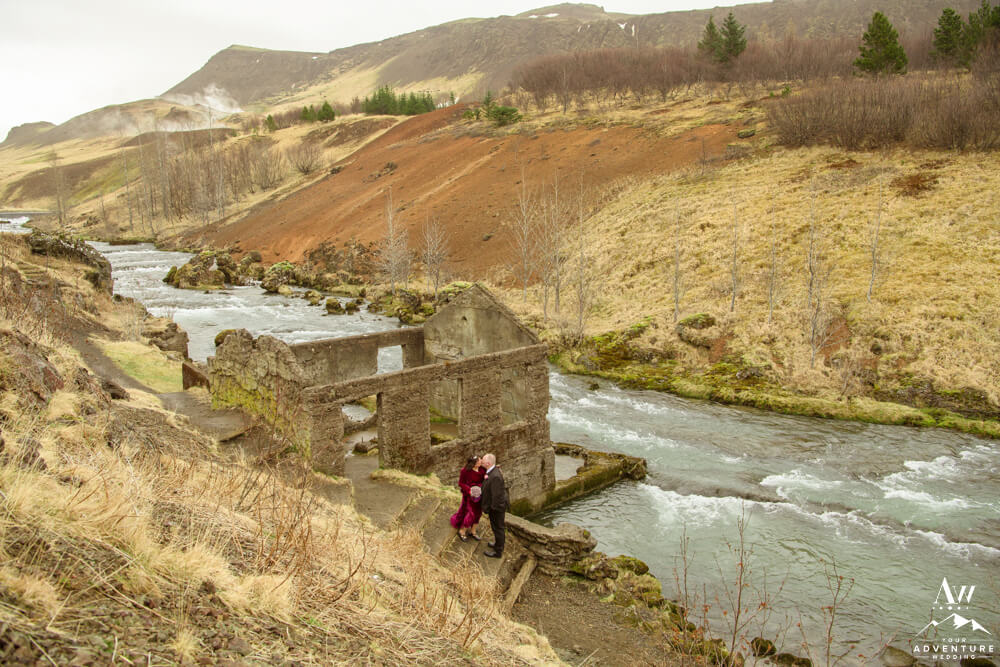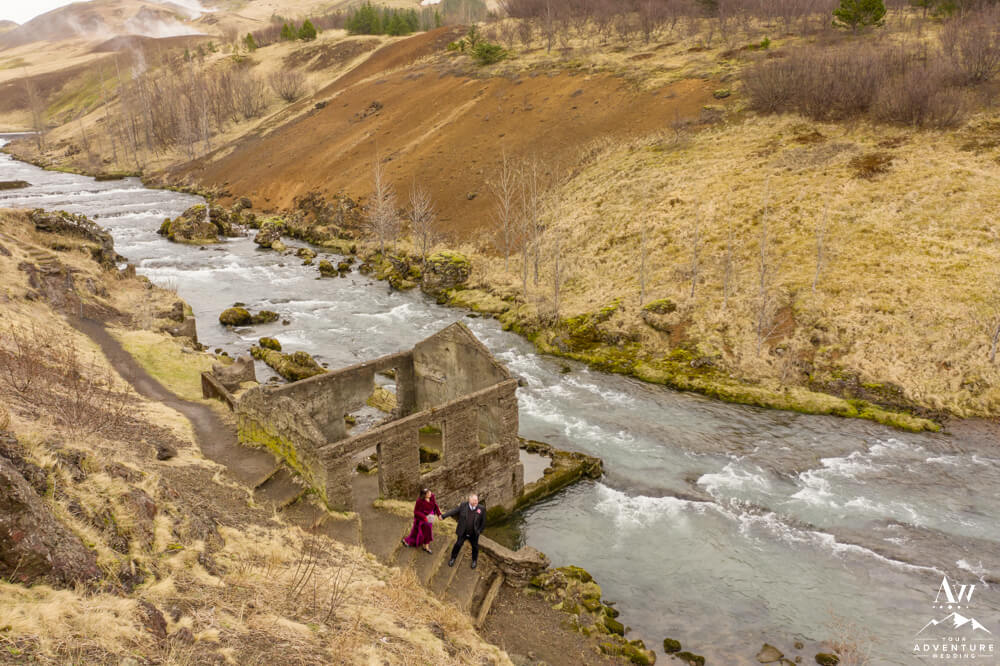 Getting married at a historical place in Iceland is super memorable. Why? Because it feels like you are part of history! This specific area oozes Icelandic history… For example, geothermal heat is found throughout this entire valley. Next, the waterfall was a source of energy to power the wool shop that sat above it from 1902-1914.