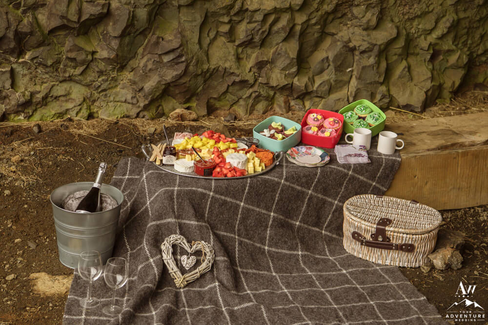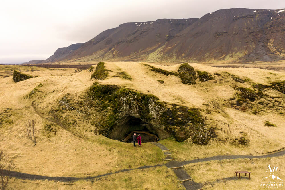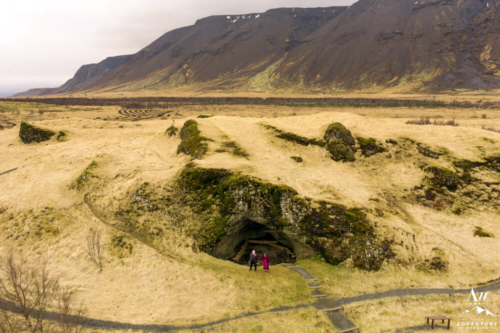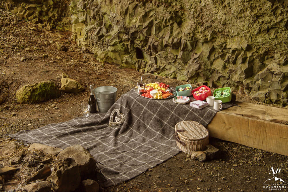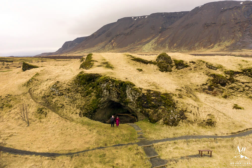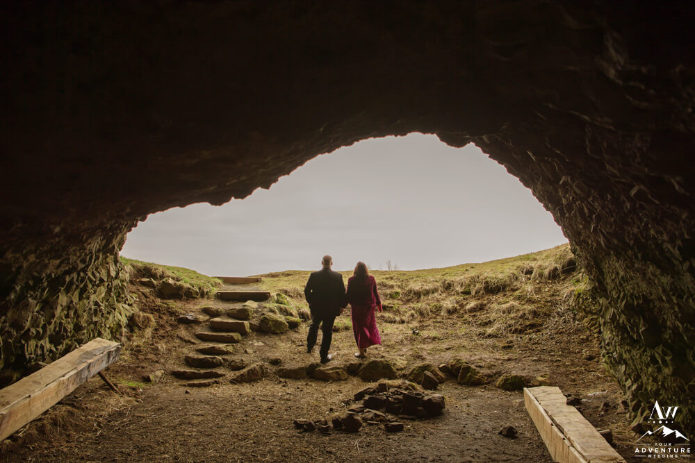Being from the UK, it was important to Andy and Audrey to have high tea in celebration of their April elopement adventure. But it started to rain quite a bit so our Iceland Wedding Planner team suggested they enjoy it at a nearby natural cave. History runs deep alongside of this cave too being made of basalt!