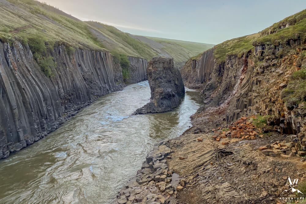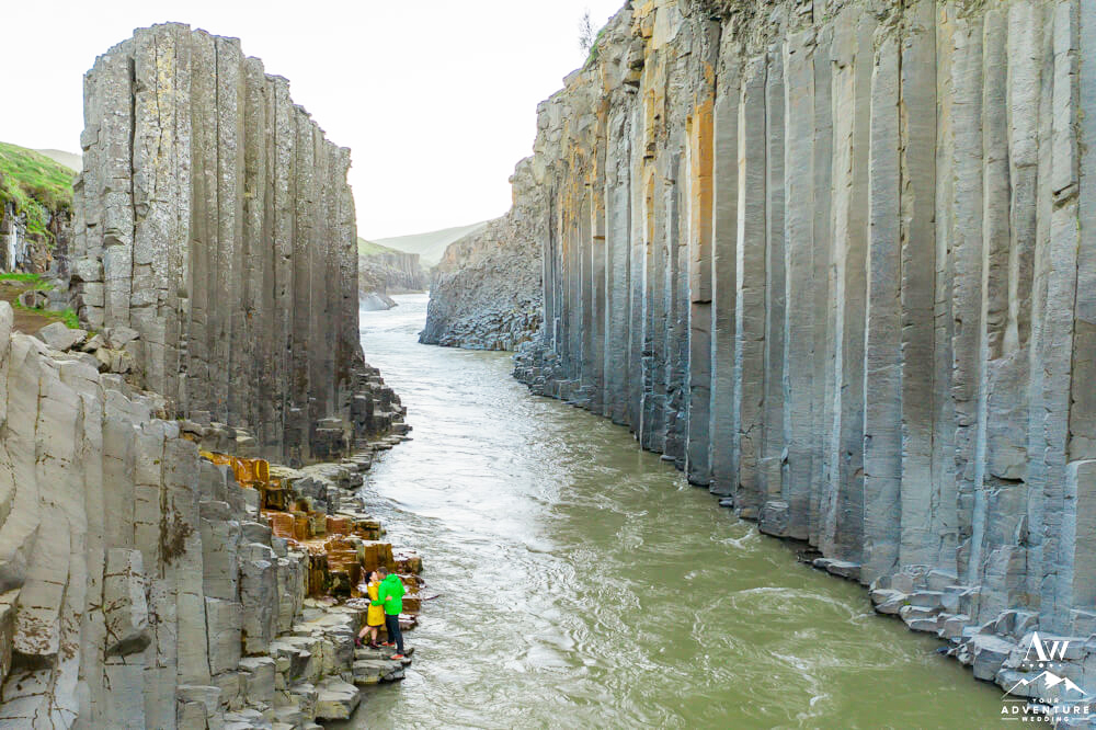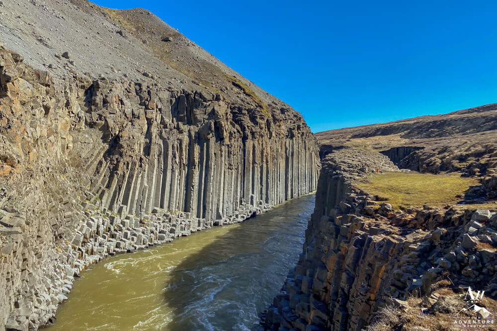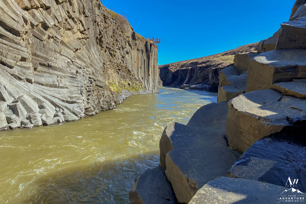 Wait a second, how was an out of this world place like this created? To illustrate, initially a volcano sends down lava into this valley and contracts as it cools. Furthermore, then the power of a river named Jökla carves out and creates the smooth hexagonal sides and both vertical and horizontal structures.