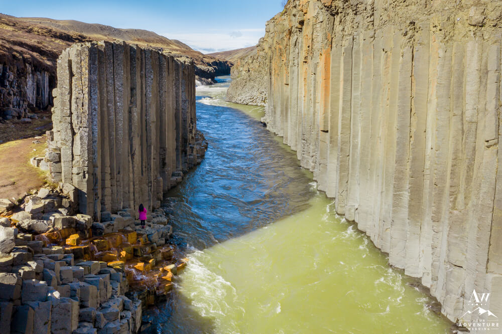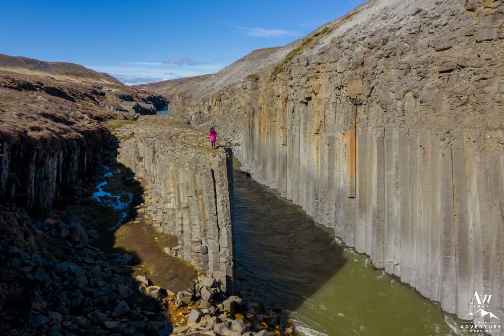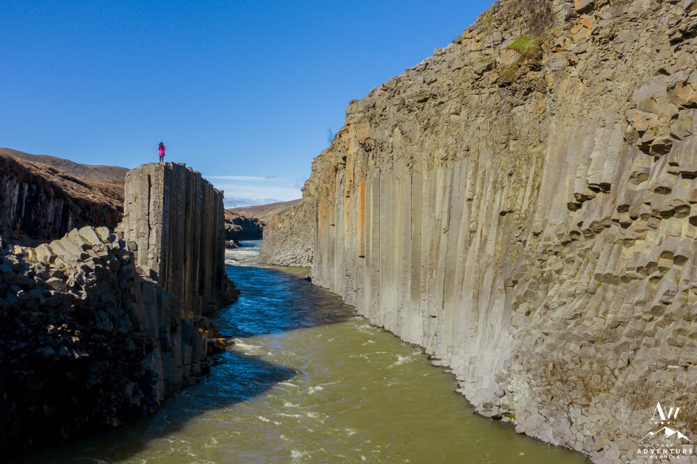 - Standing on top of the Stuðlagil Basalt Stacks (eastside)