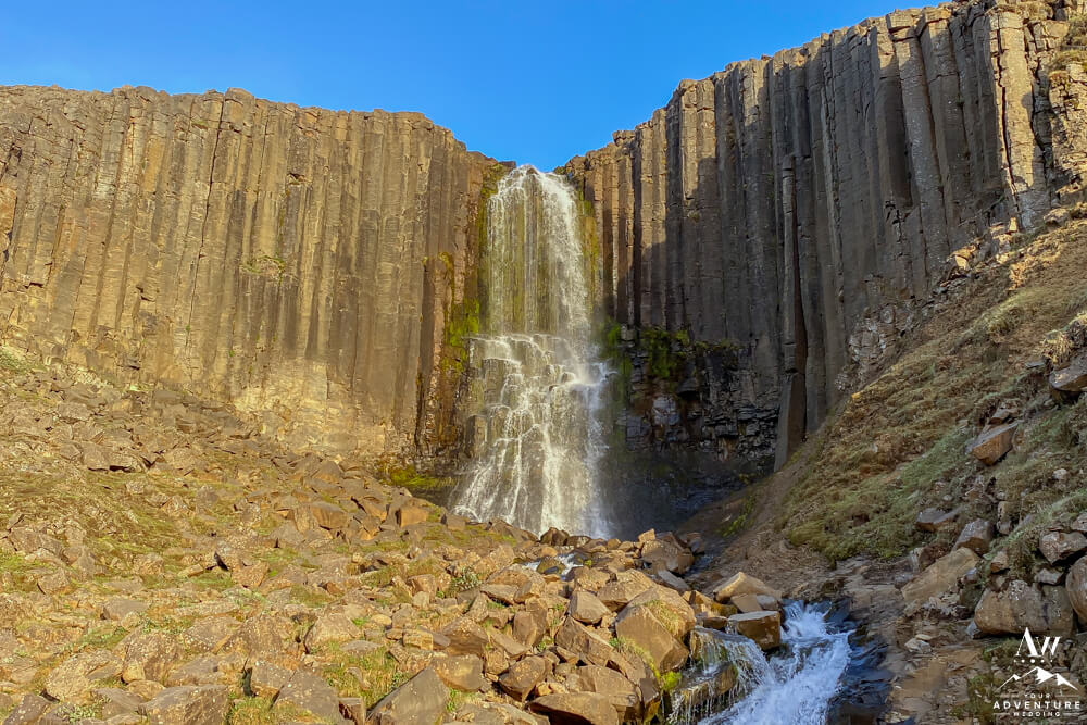 Once you reach the basalt column waterfall, Stuðlafoss you’re half way!