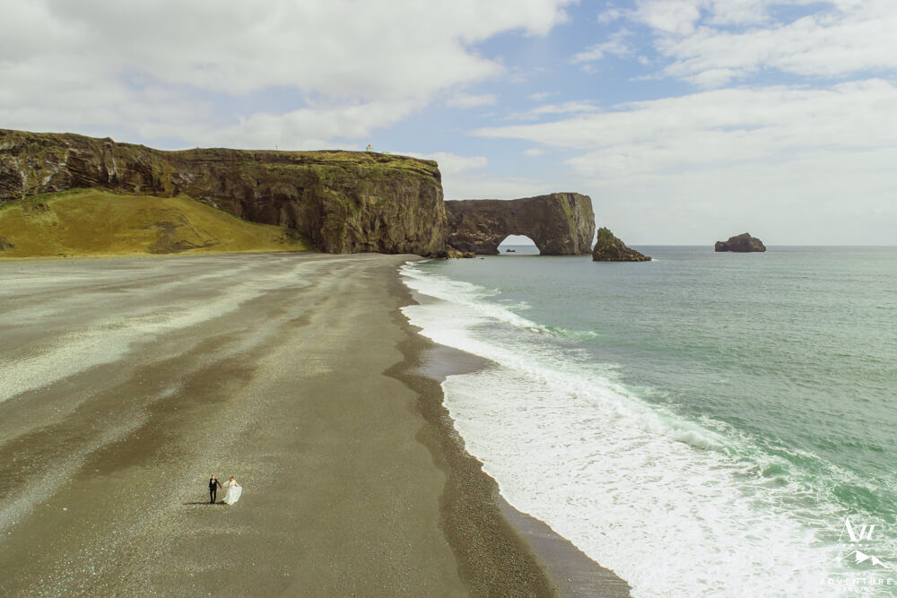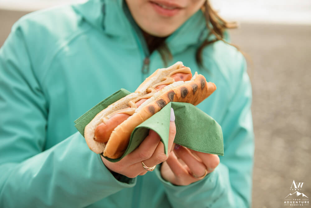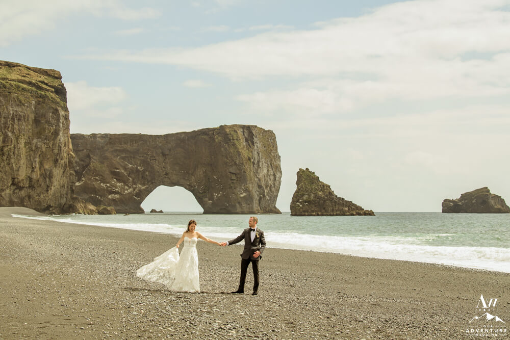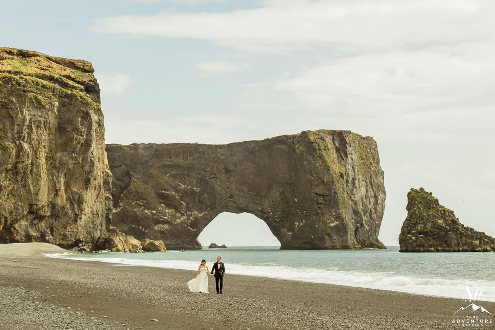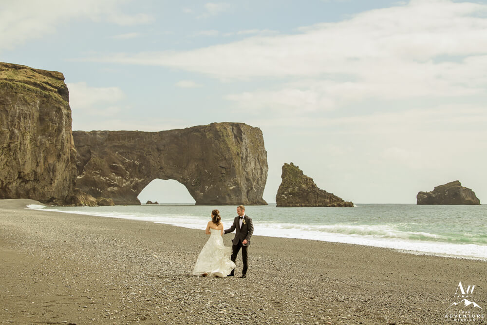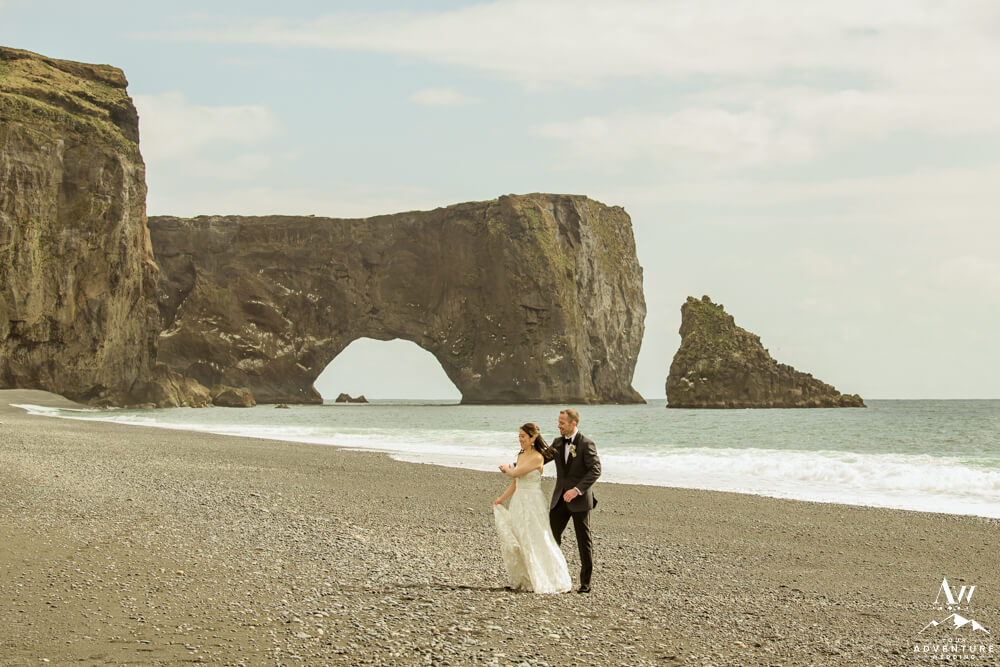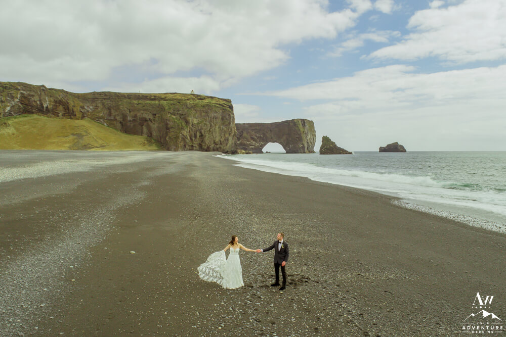 These two decided to surprise their guests with a traditional Icelandic hot dog BBQ. That way, they could experience a cultural tradition and get something warm in their hands! Yum!! Meanwhile, what better place to have a BBQ than the private side of Dyrhólaey Sea Arch Beach! Next, following their lunch experience these two were able to discover the rocky beach together hand in hand…