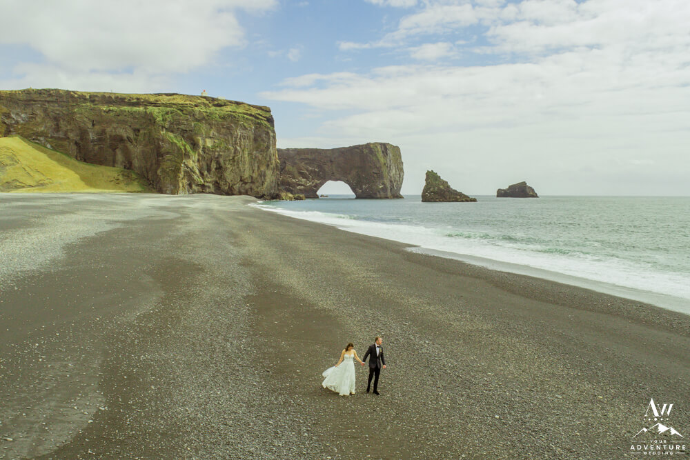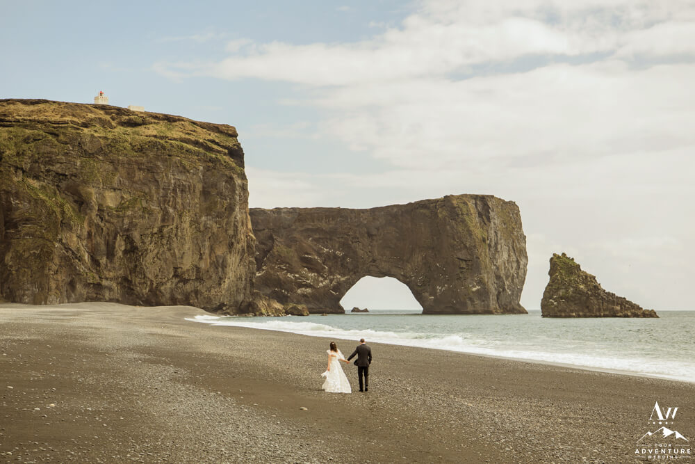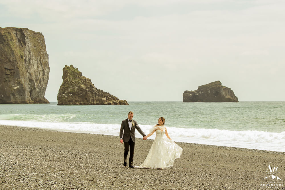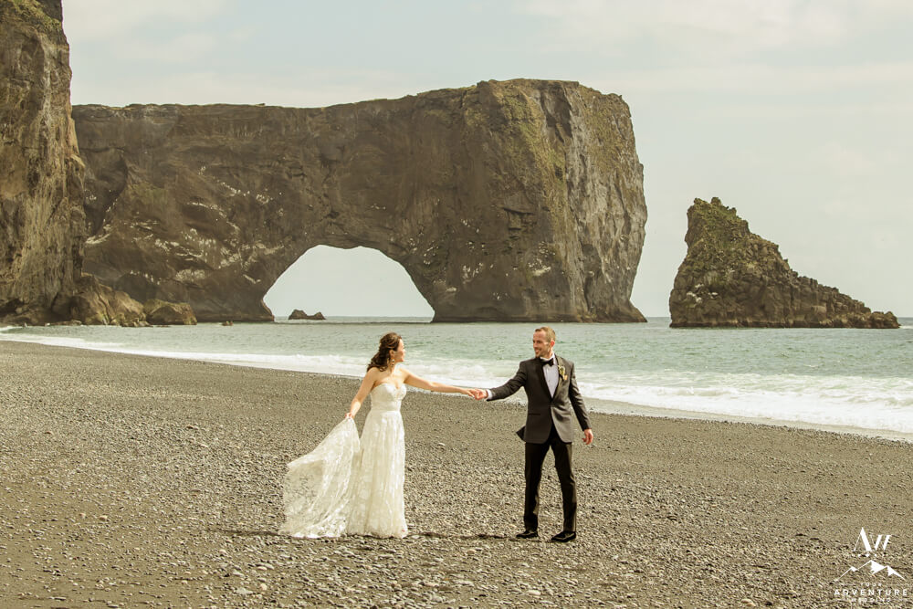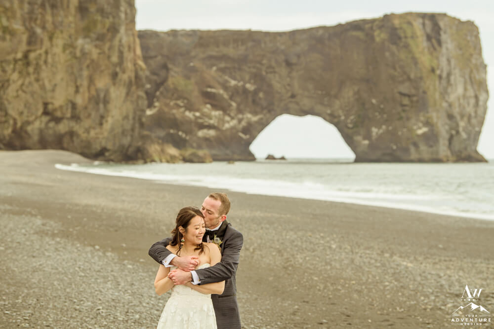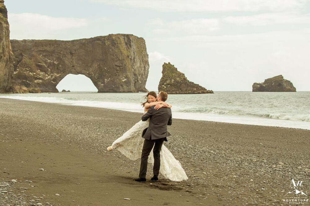 These two decided to surprise their guests with a traditional Icelandic hot dog BBQ. That way, they could experience a cultural tradition and get something warm in their hands! Yum!! Meanwhile, what better place to have a BBQ than the private side of Dyrhólaey Sea Arch Beach! Next, following their lunch experience these two were able to discover the rocky beach together hand in hand…