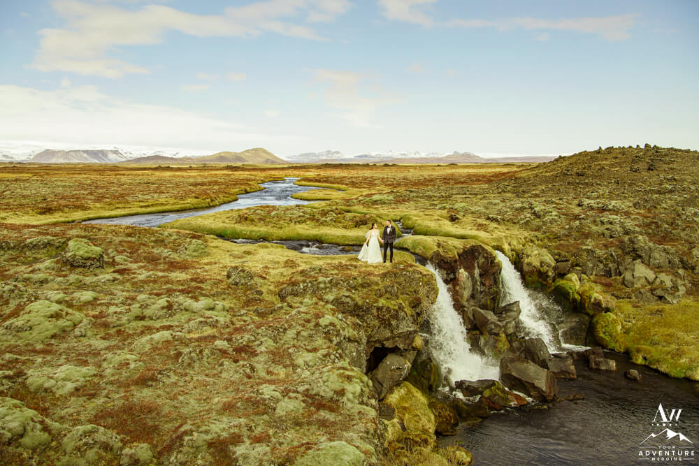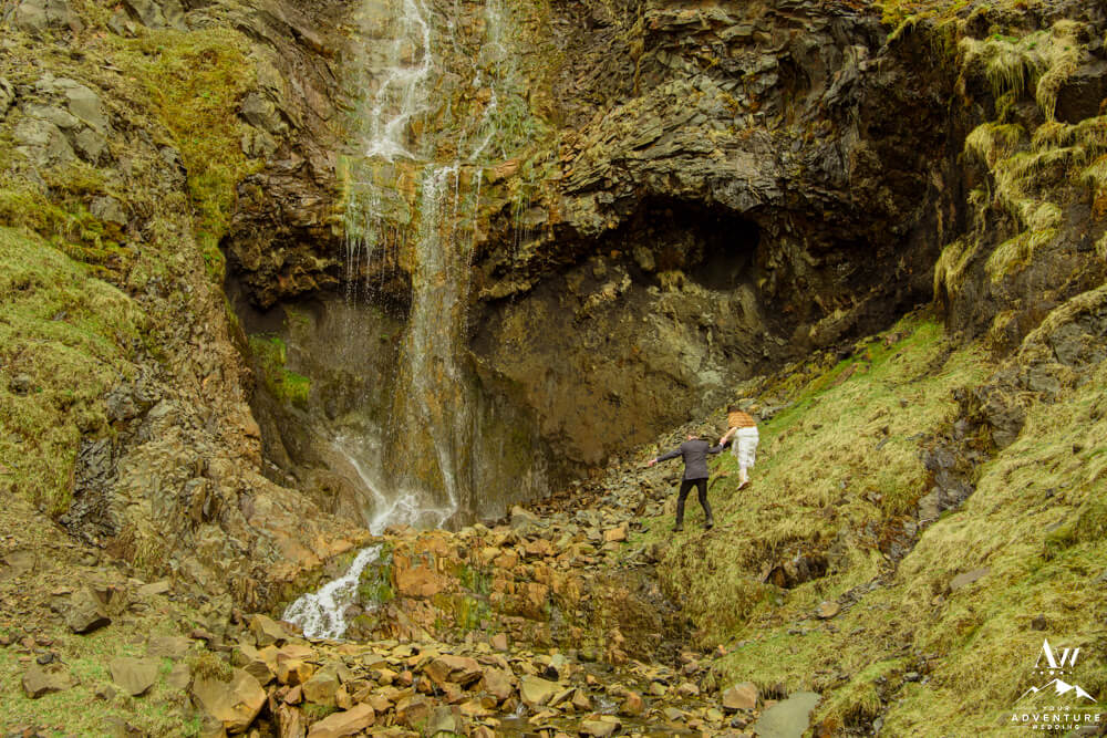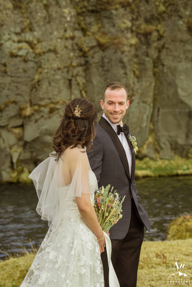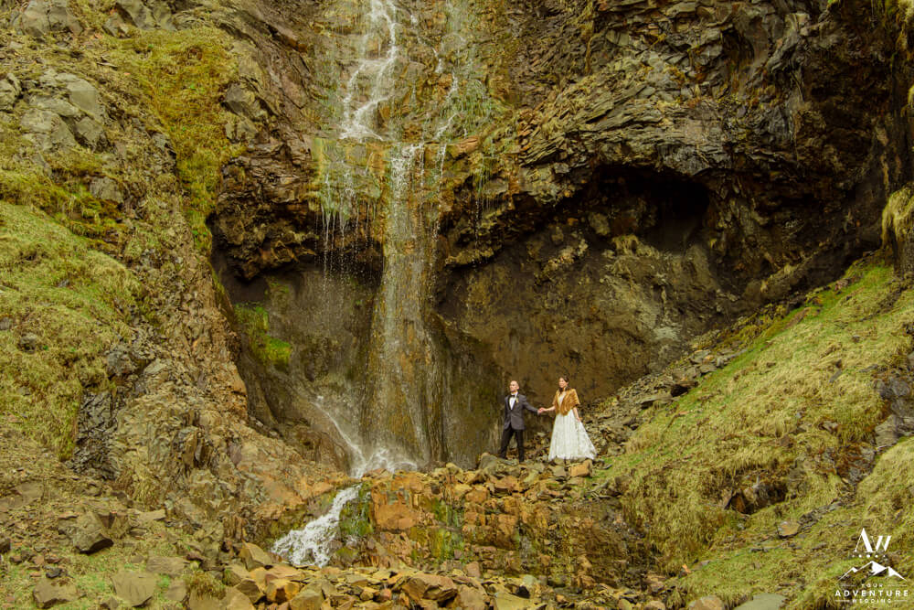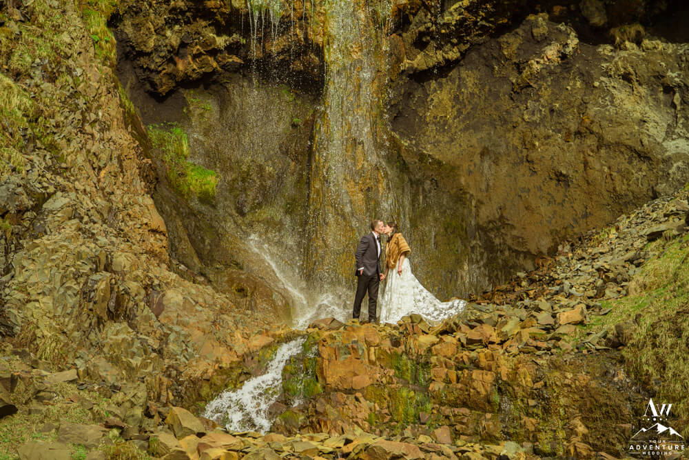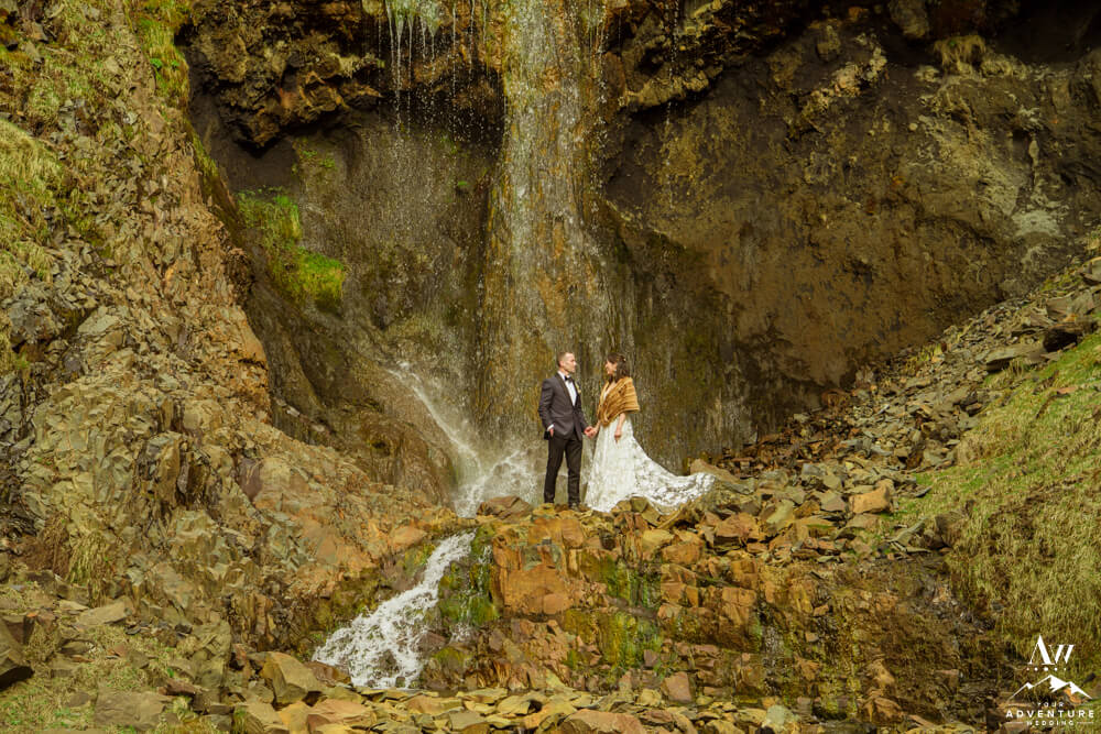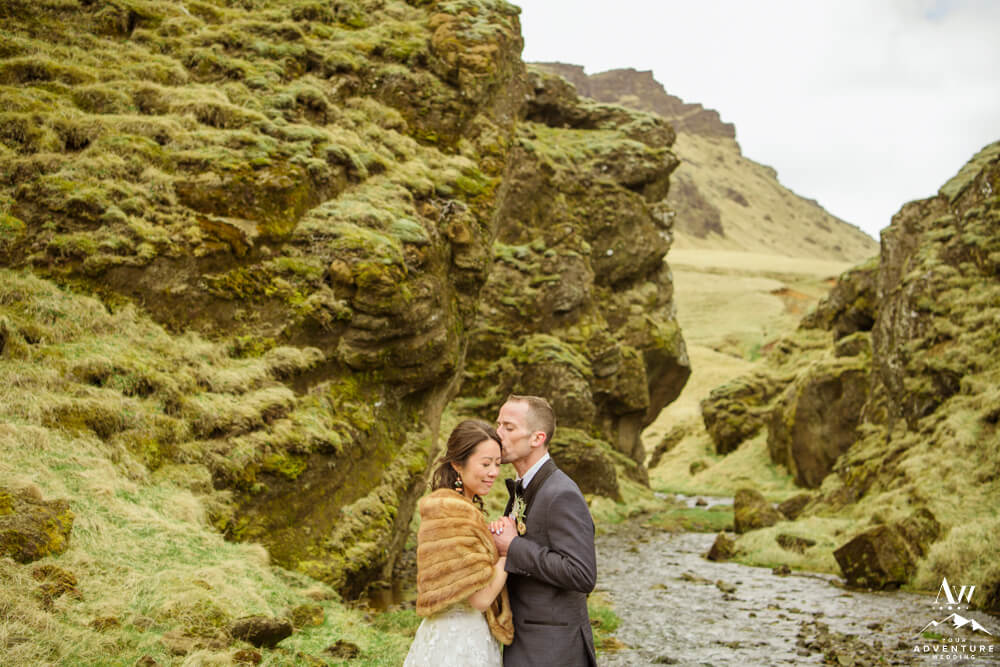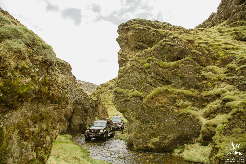 Our 5th experience during Kathy and Jake’s Iceland May wedding was heading into an extremely narrow canyon area. You could hear Kathy and Jake giggles as they crossed the river and marveled over the canyon walls!