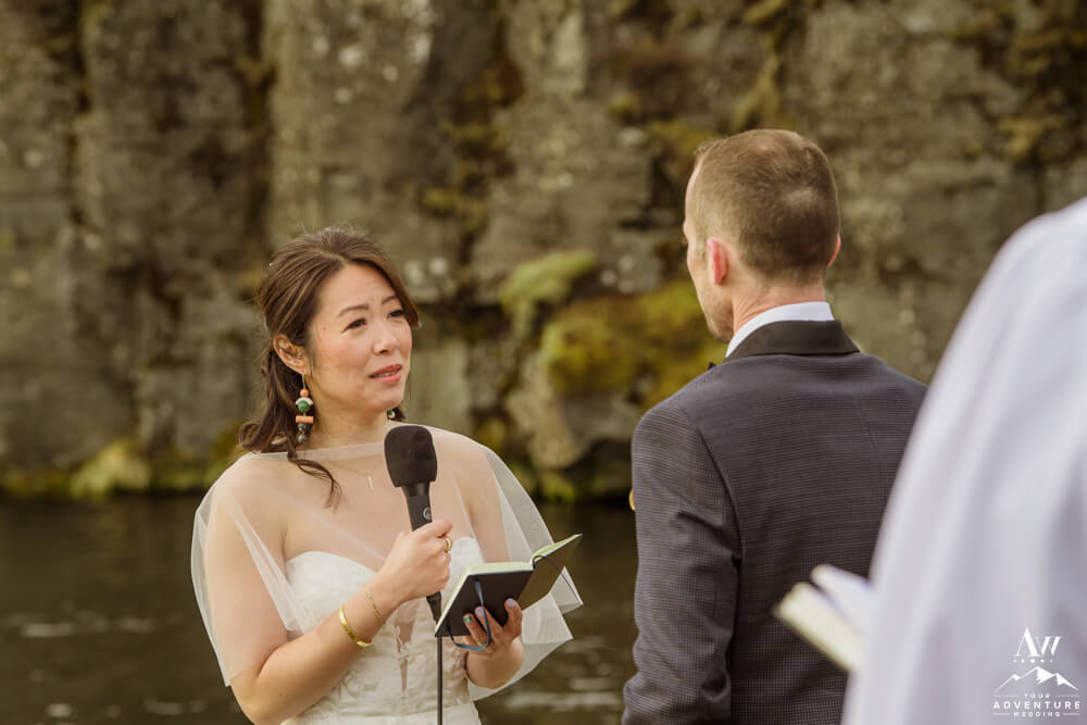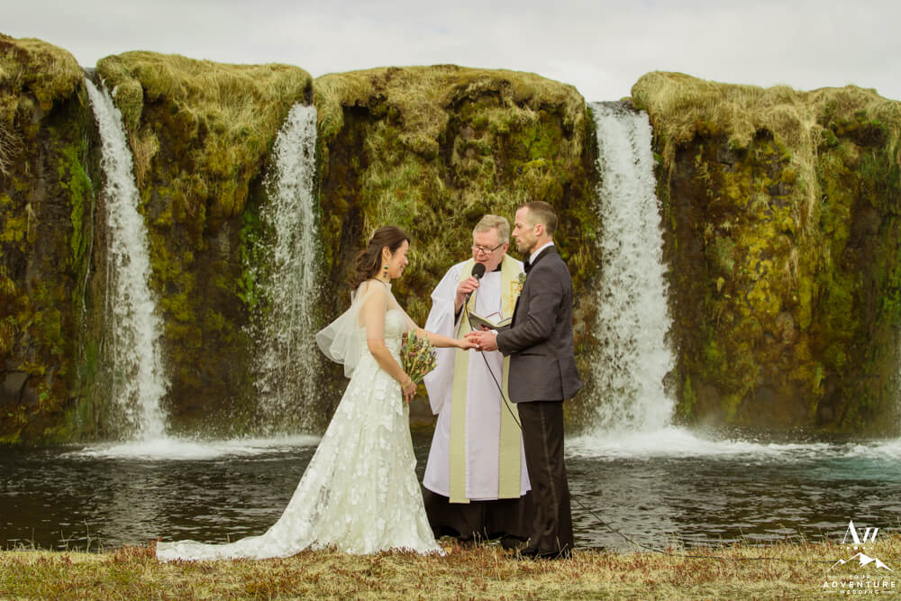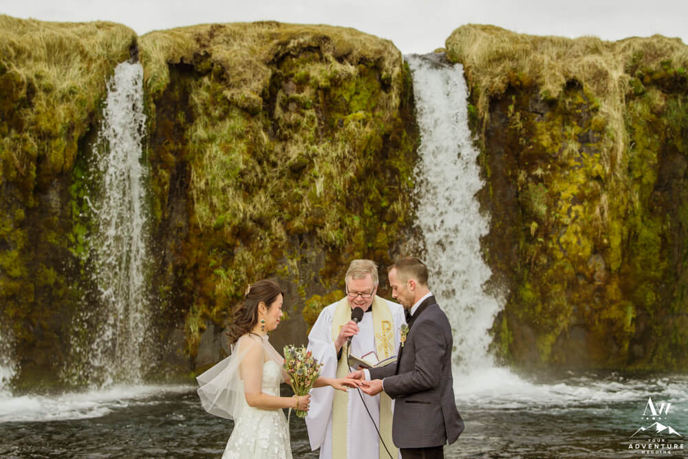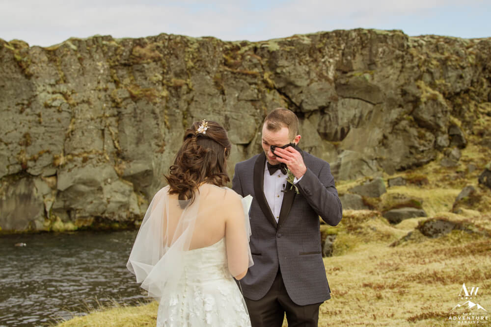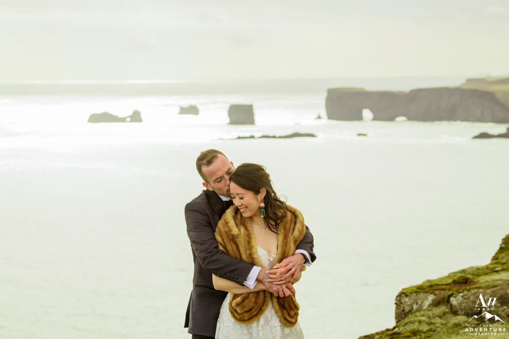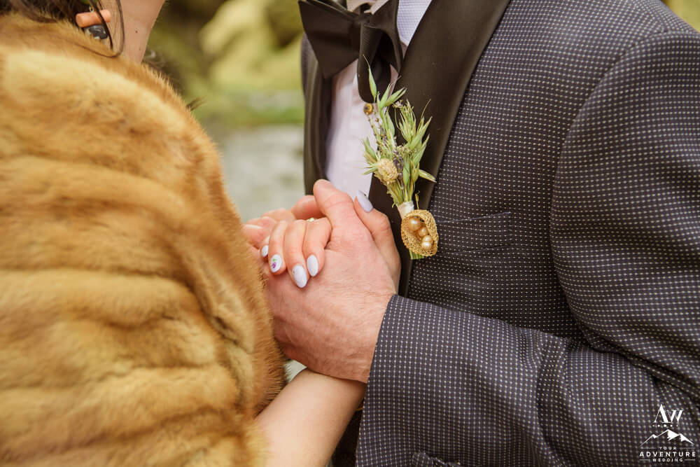 Thirdly, sometimes adding in creature comforts like blankets can be a nice touch. Furthermore, these two held a spiritual ceremony which also included personal vows. Exchanging Cartier wedding rings and a kiss kicked off their newlywedded bliss! Their group was so happy for them and in disbelief how stunning their Iceland wedding location was!