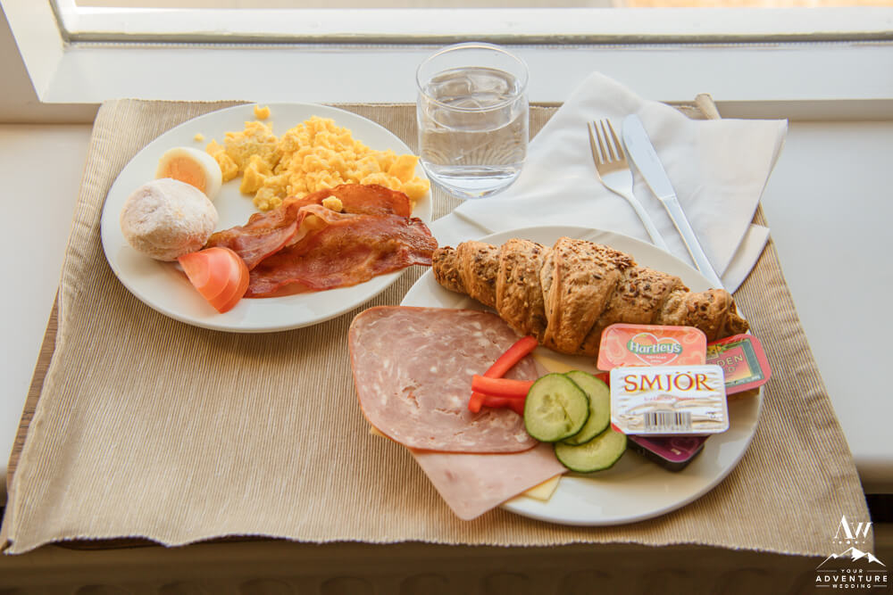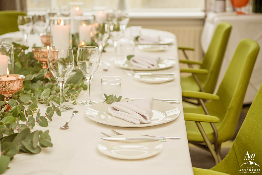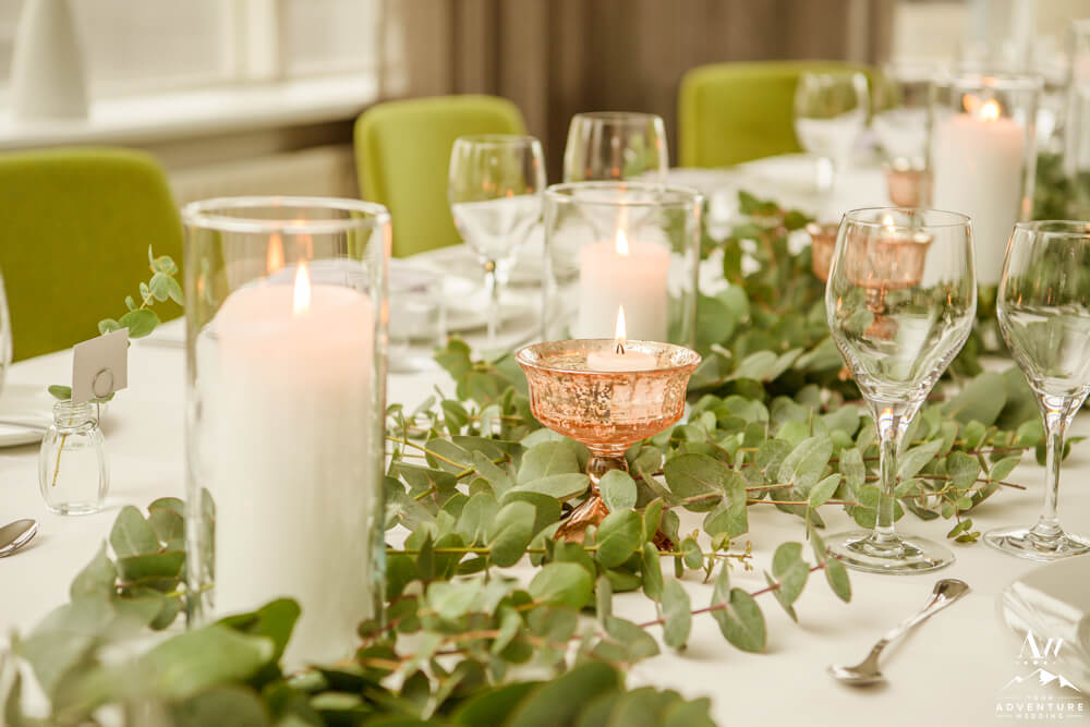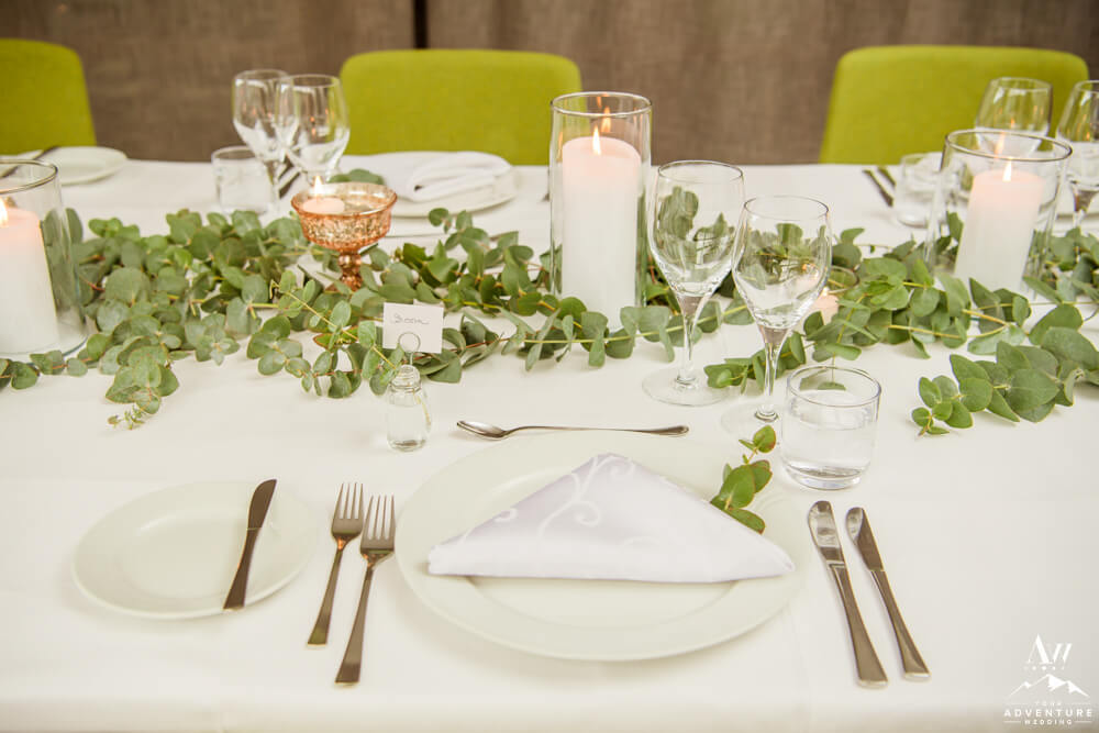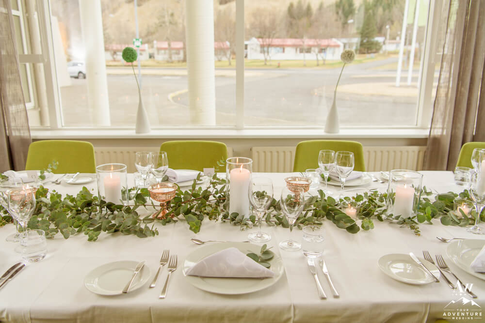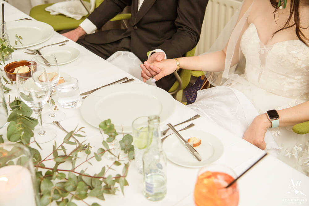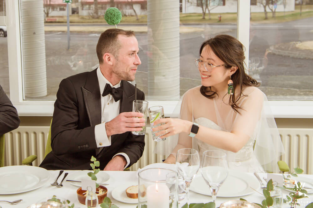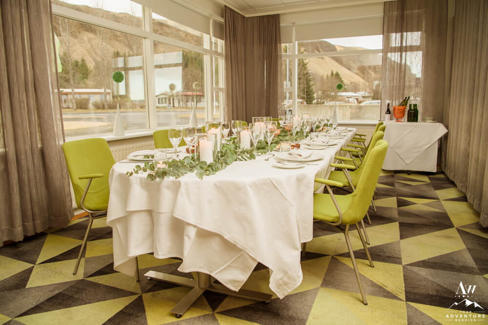 Having a private dining space for your reception can be very important to some people. For instance, being able to have your own group together means you can toast, play music, and bring in your own décor, etc. In fact, this is exactly what Jake and Kathy desired. And their natural décor was just enough to provide elegance to the room too! Lastly, their American style wedding cake was a beautiful crowning gem to end their Iceland May wedding with!